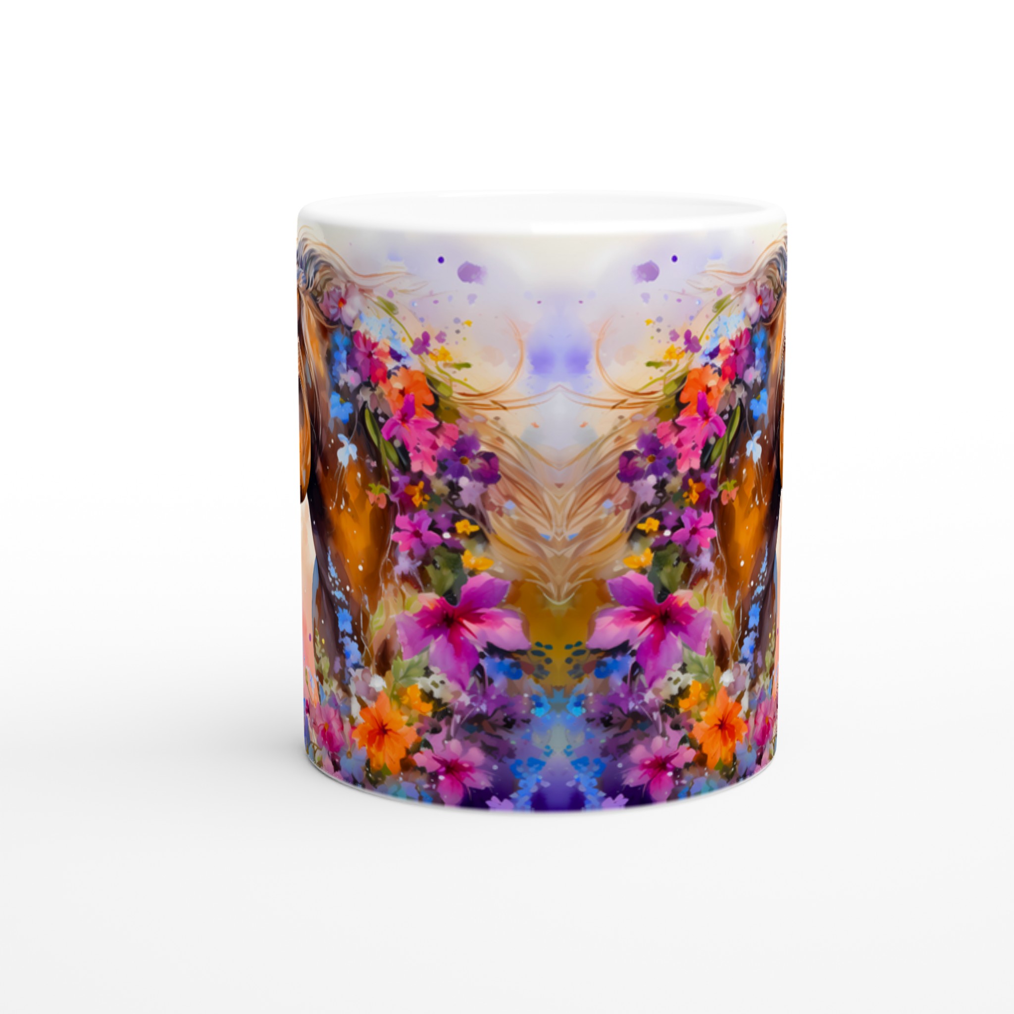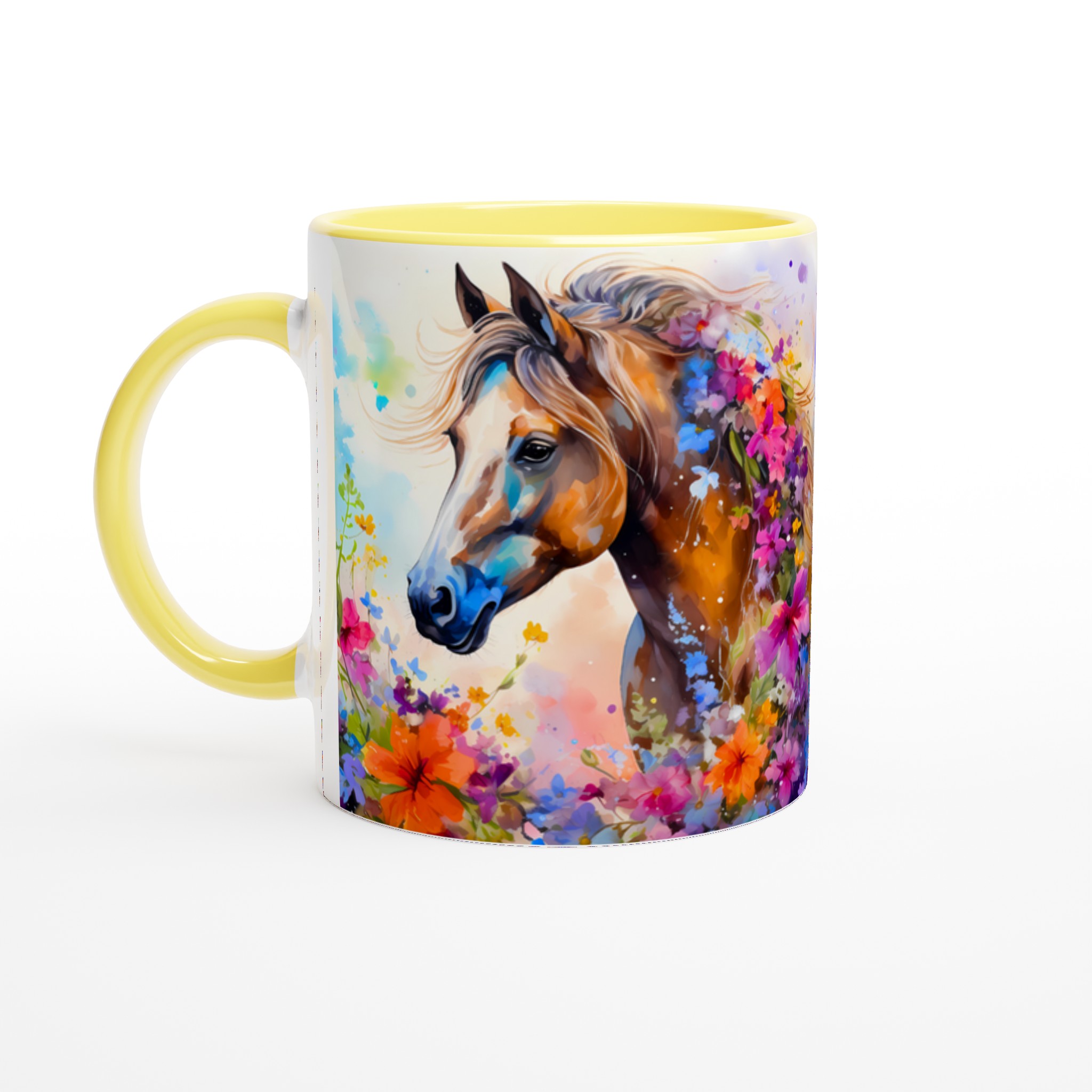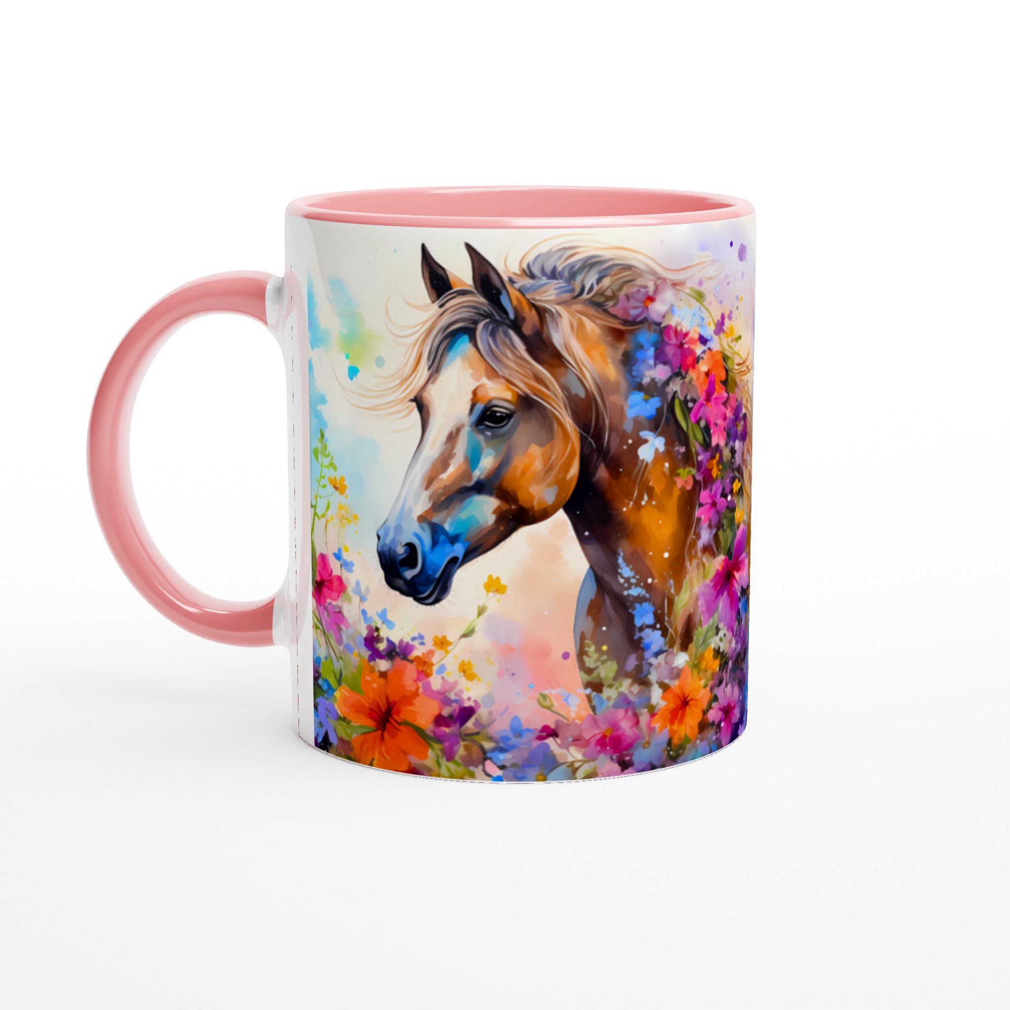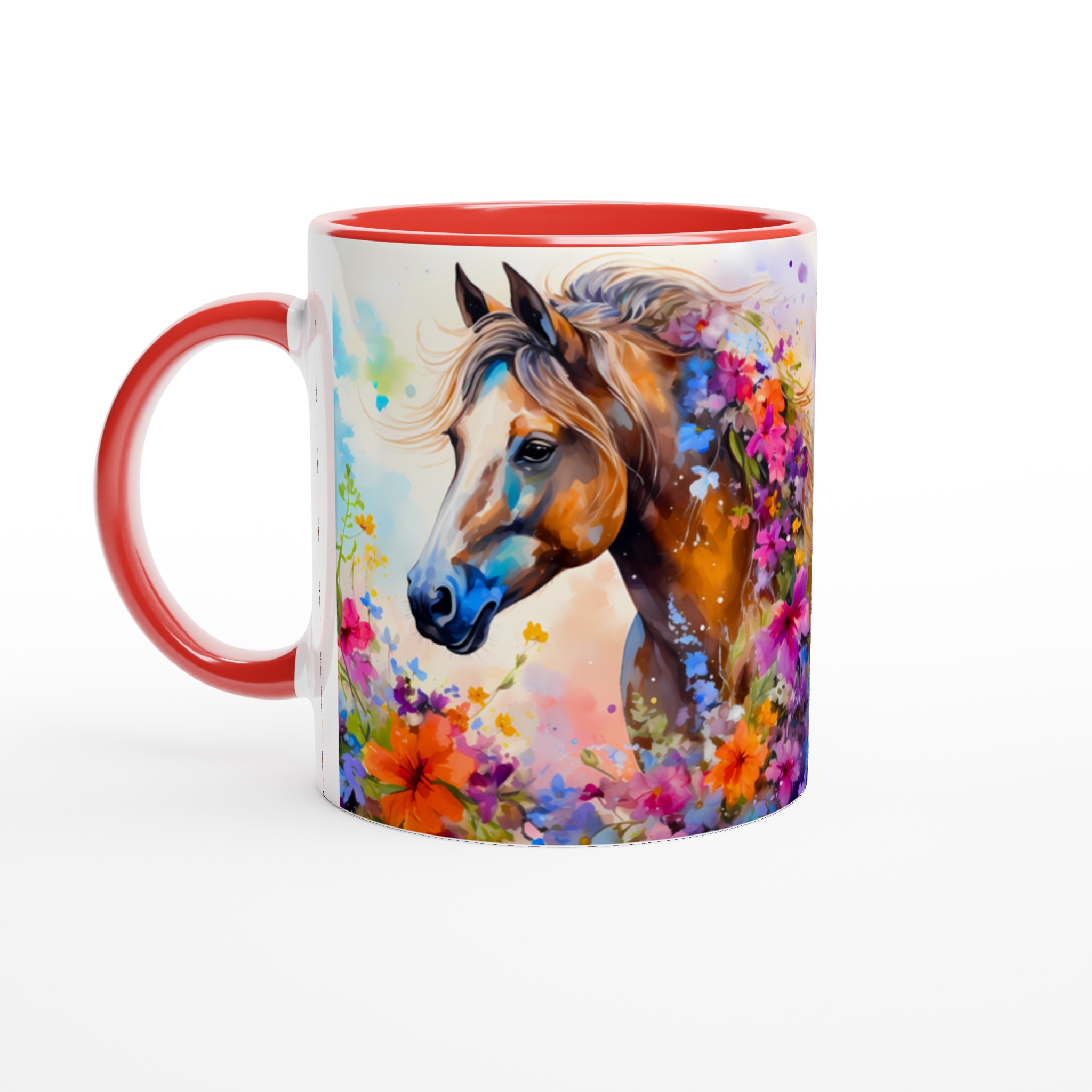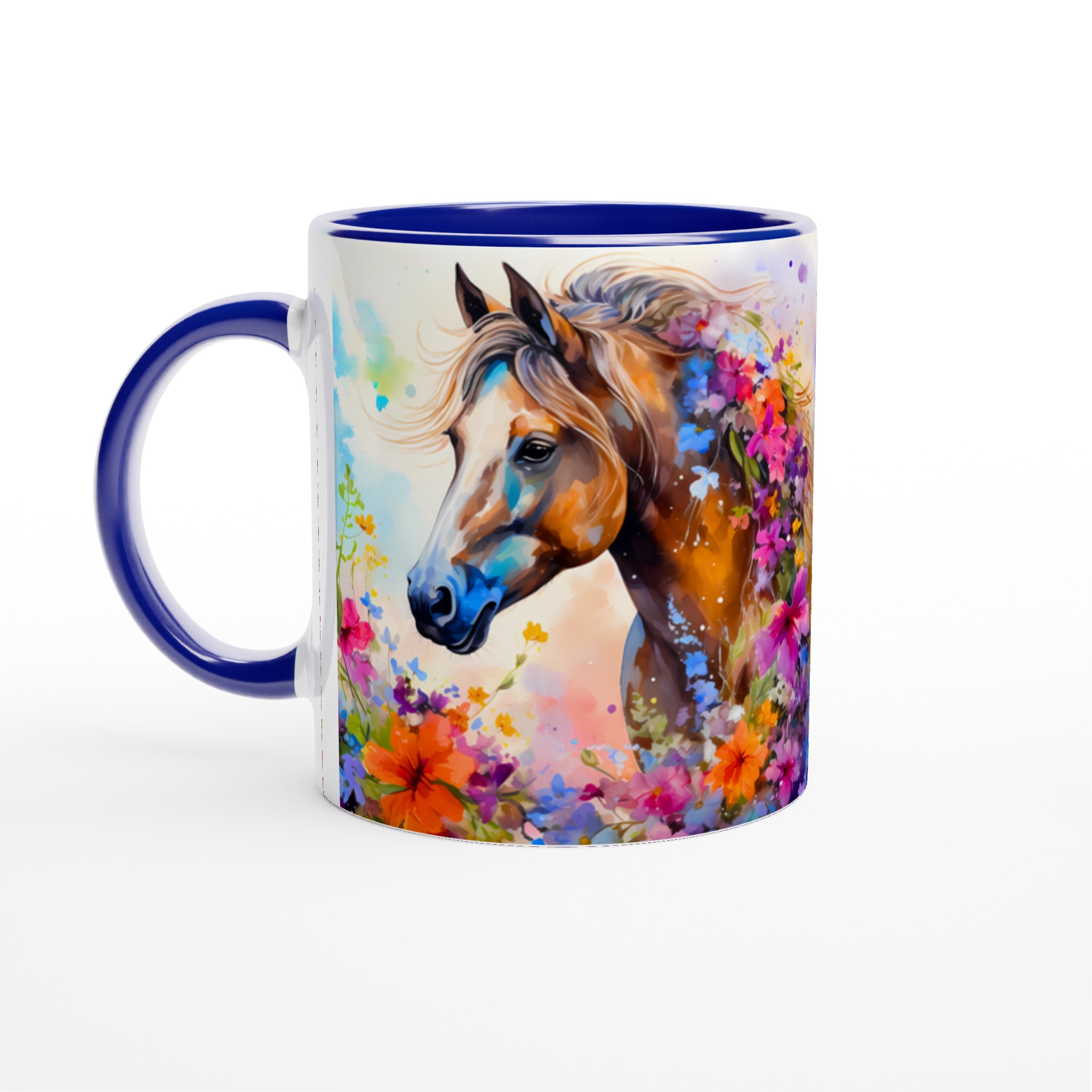 Lyft din fikastund med denna magiska keramiska mugg, som fångar den livfulla skönheten hos en häst omgiven av ett exploderande blomsterhav i akvarellstil. Varje klunk blir en upplevelse, inspirerad av de drömska färgerna och det konstnärliga uttrycket. Denna mugg är mer än bara en kopp – det är ett litet konstverk som förgyller din vardag, perfekt för dig som älskar djur, natur och konst.
