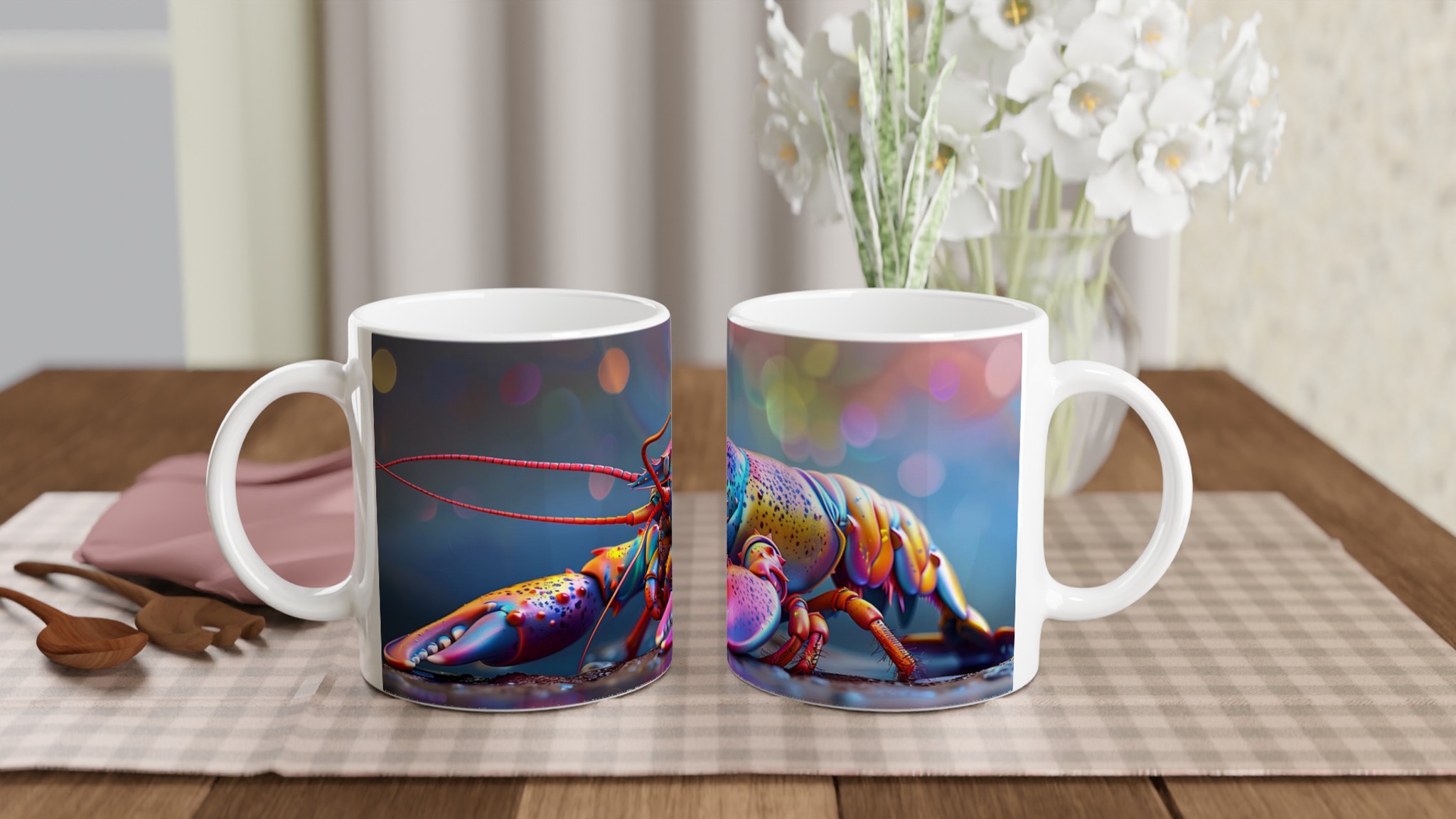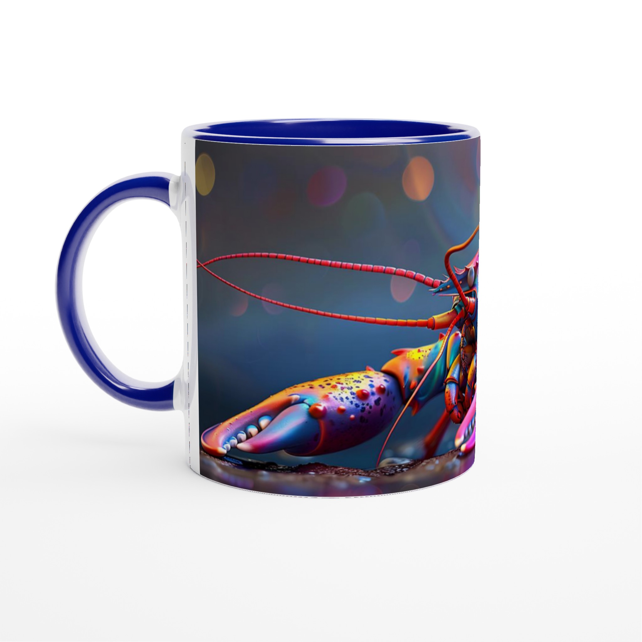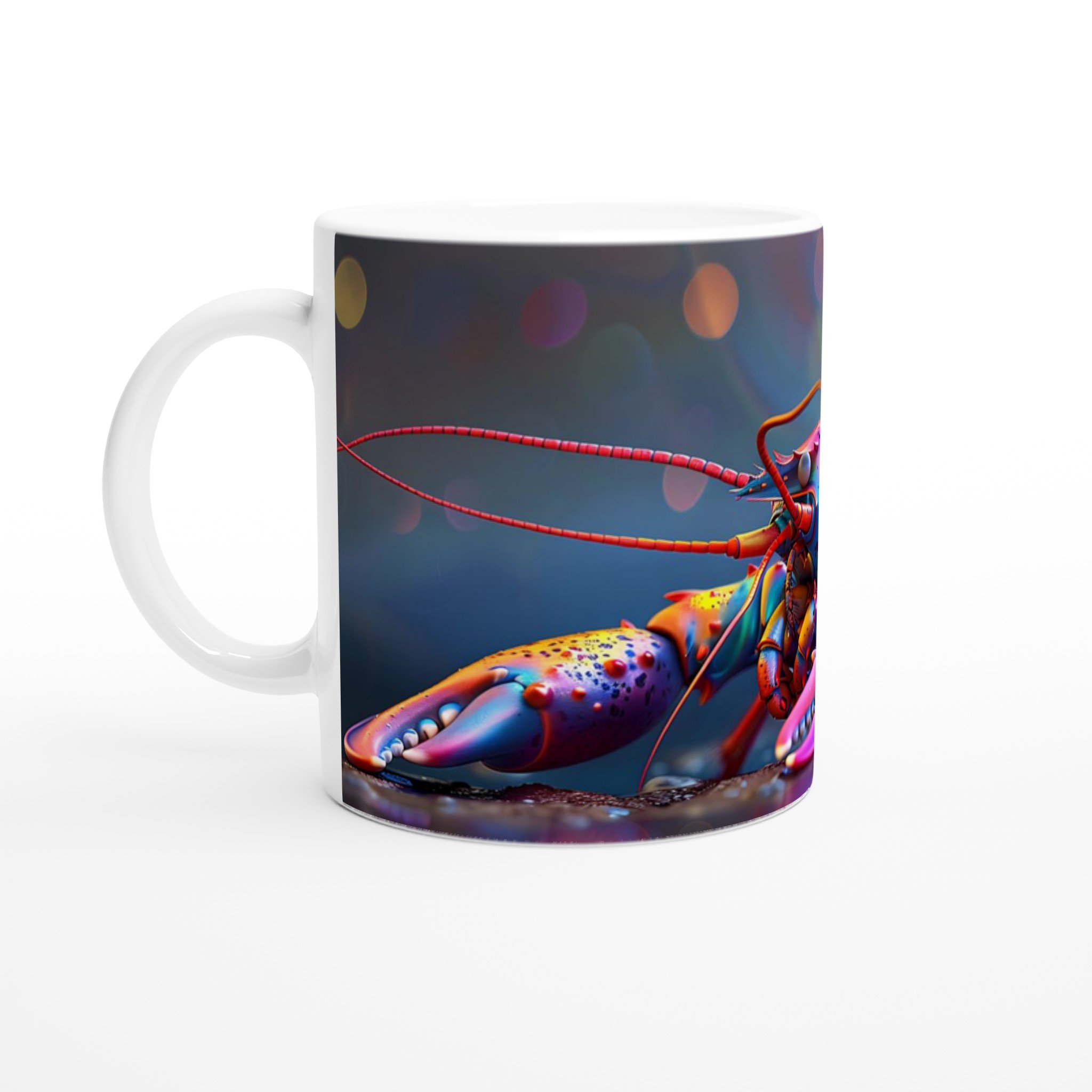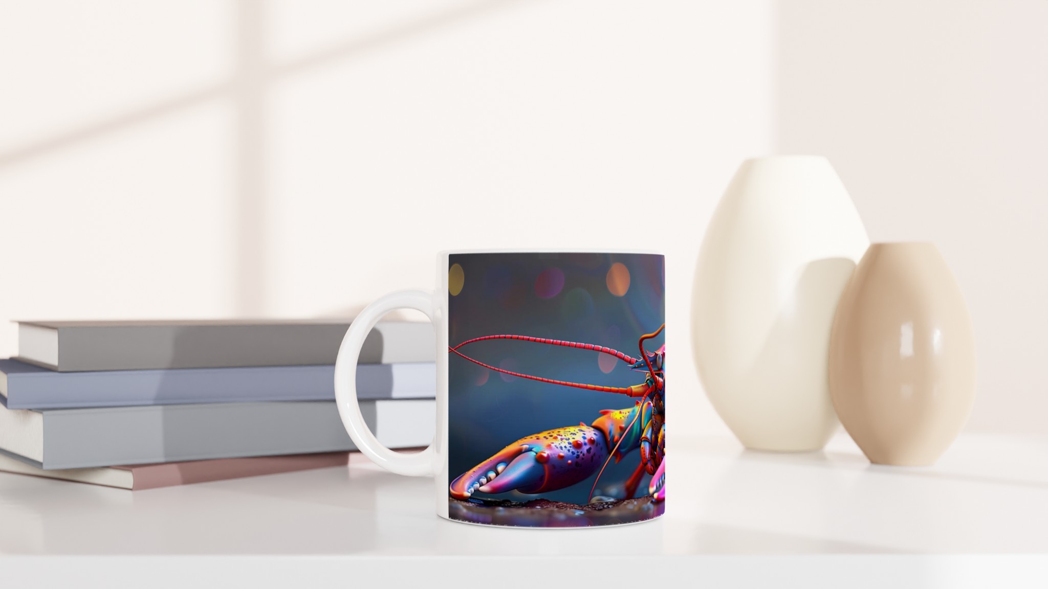 Väck dina sinnen med denna extraordinära keramiska mugg, prydd med en levande, färgstark hummer som fångar ögat med sin nästan neonlika palett av blått, rosa, gult och orange. Denna mugg är inte bara en vardagsfavorit utan ett konstverk som lyfter varje fikastund till en fest av färger och glädje. Perfekt för morgonkaffet, kvällens varma choklad eller när du bara vill njuta av en kopp te – den blanka ytan framhäver hummerns klara och levande färger, som håller sig fina även efter många turer i mikron och diskmaskinen.