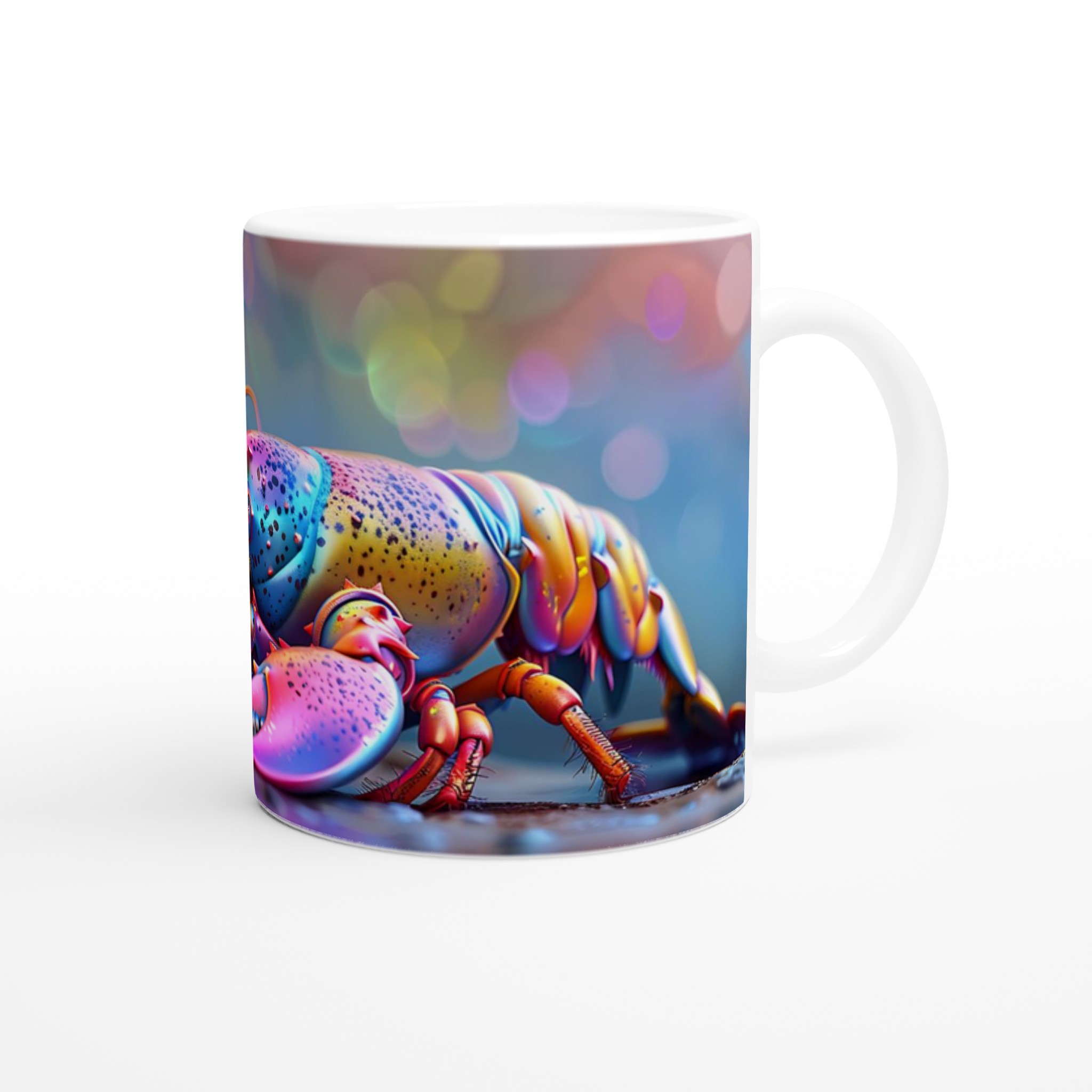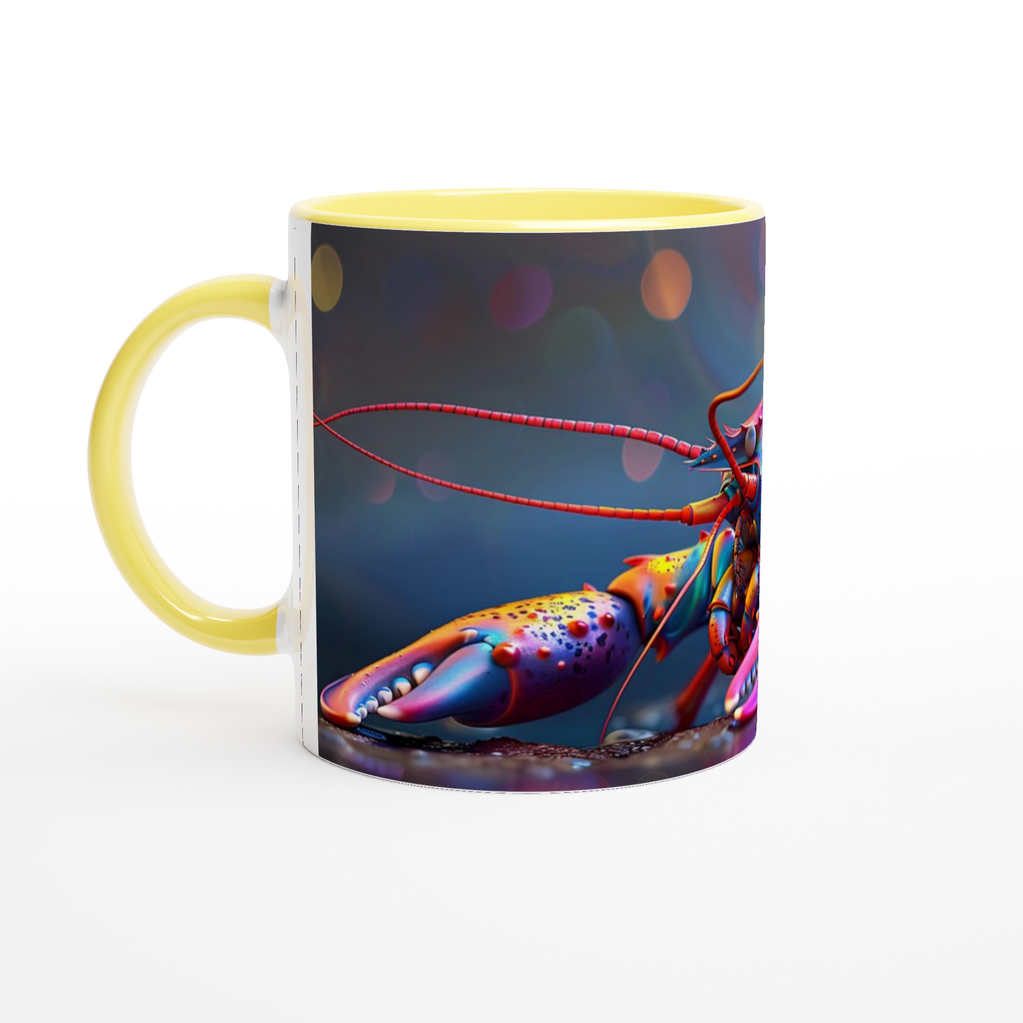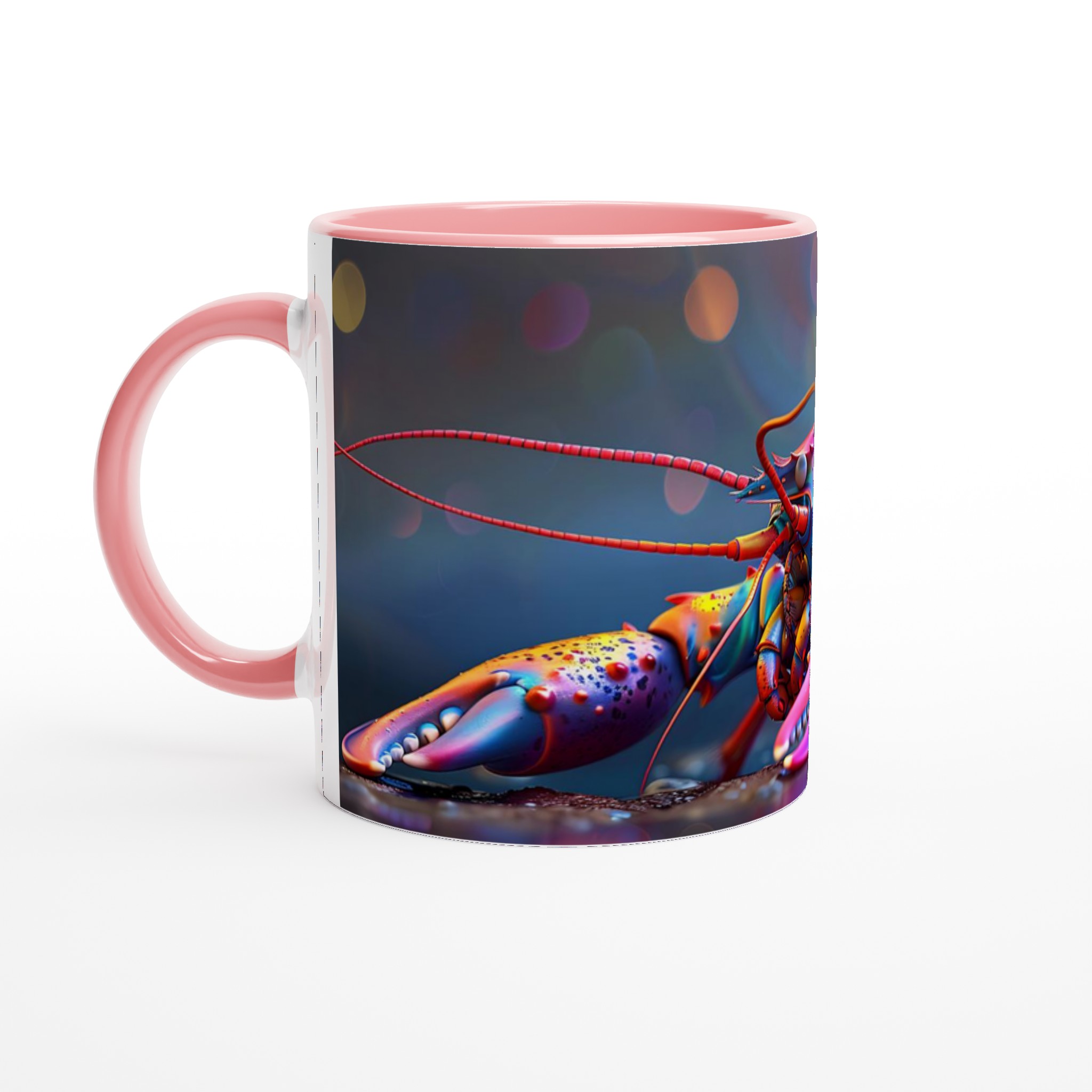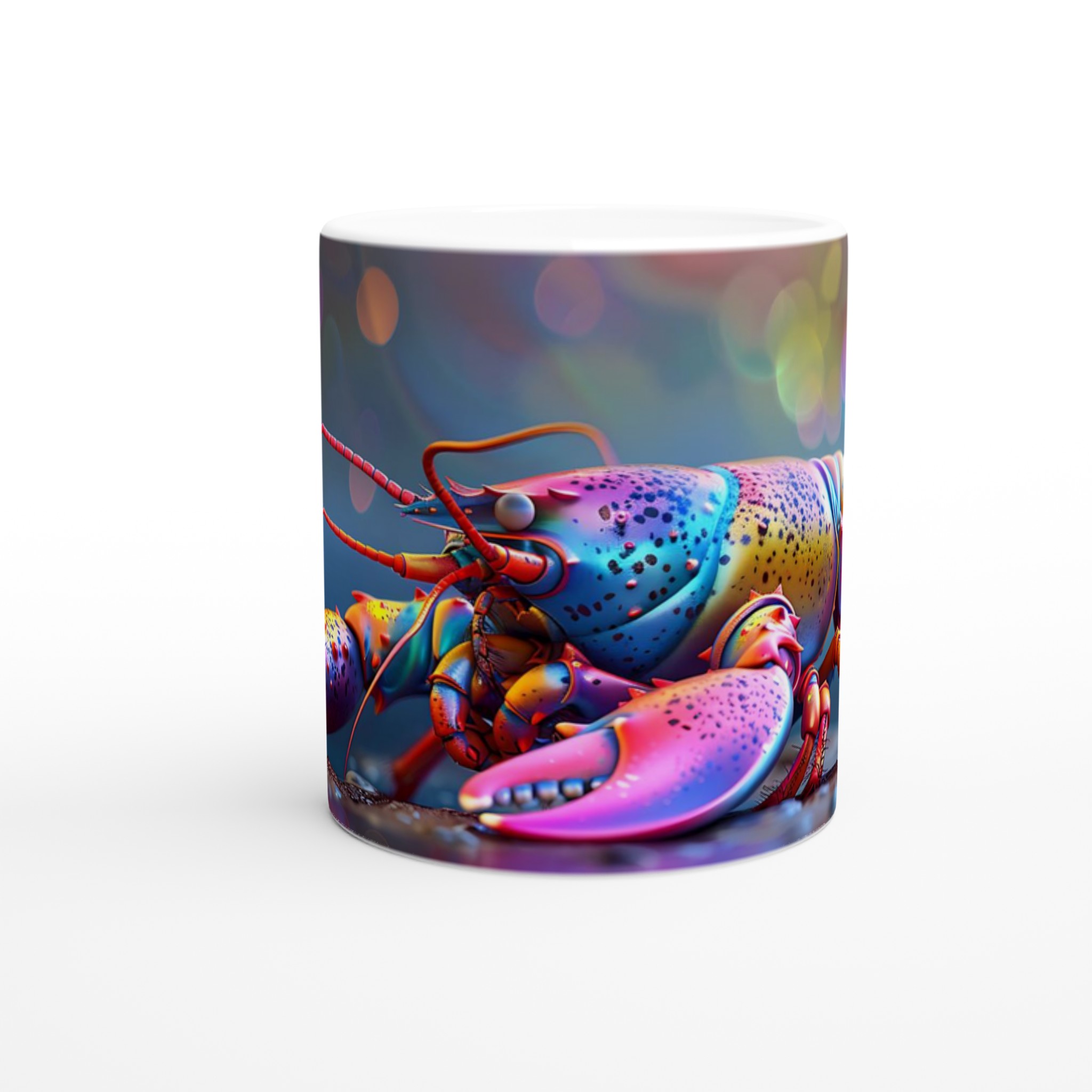 Väck dina sinnen med denna extraordinära keramiska mugg, prydd med en levande, färgstark hummer som fångar ögat med sin nästan neonlika palett av blått, rosa, gult och orange. Denna mugg är inte bara en vardagsfavorit utan ett konstverk som lyfter varje fikastund till en fest av färger och glädje. Perfekt för morgonkaffet, kvällens varma choklad eller när du bara vill njuta av en kopp te – den blanka ytan framhäver hummerns klara och levande färger, som håller sig fina även efter många turer i mikron och diskmaskinen.