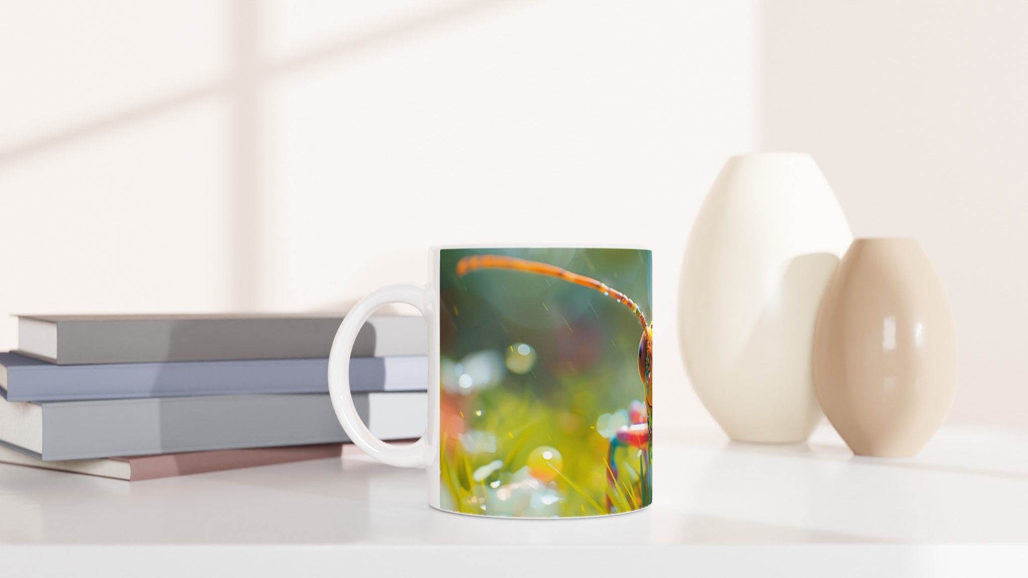 Låt dig förtrollas av denna unika keramiska mugg, prydd med en levande och färgsprakande insekt i en fantastisk makrobild. Det är mer än bara en mugg; det är ett konstverk som lyser upp din dag och förvandlar varje dryckesstund till en liten flykt till naturens under. Den perfekta detaljen för att addera en lekfull, men ändå sofistikerad, touch till ditt kök eller kontor. Denna mugg blir snabbt en vardagsfavorit – idealisk för morgonkaffet, kvällens varma choklad eller när du bara vill njuta av en kopp te.