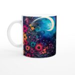 Låt din dryckesstund bli en explosion av färg med denna unika keramiska mugg, prydd med ett levande konstverk av kaniner omgivna av ett blomstrande kalejdoskop. Varje klunk blir en hyllning till glädje och kreativitet, perfekt för att liva upp morgonkaffet, kvällens varma choklad eller en avkopplande kopp te. Den blanka vita ytan låter de färgstarka trycken framhävas med en enastående klarhet och lyster, som består vackert även efter otaliga turer i mikron och diskmaskinen.