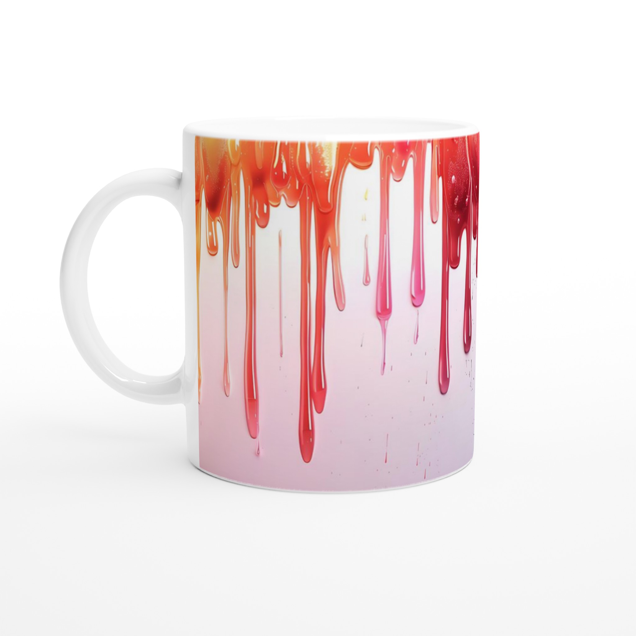 Inspirerad av den livfulla kaskaden av färger, erbjuder denna mugg den perfekta bakgrunden för dina mest kreativa uttryck. Den blanka vita ytan ger ett skarpt och levande tryck som verkligen sticker ut, oavsett om det är en personlig design, ett roligt citat eller en present till någon du tycker om.