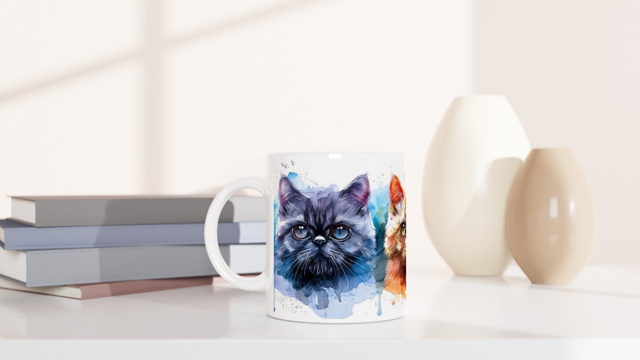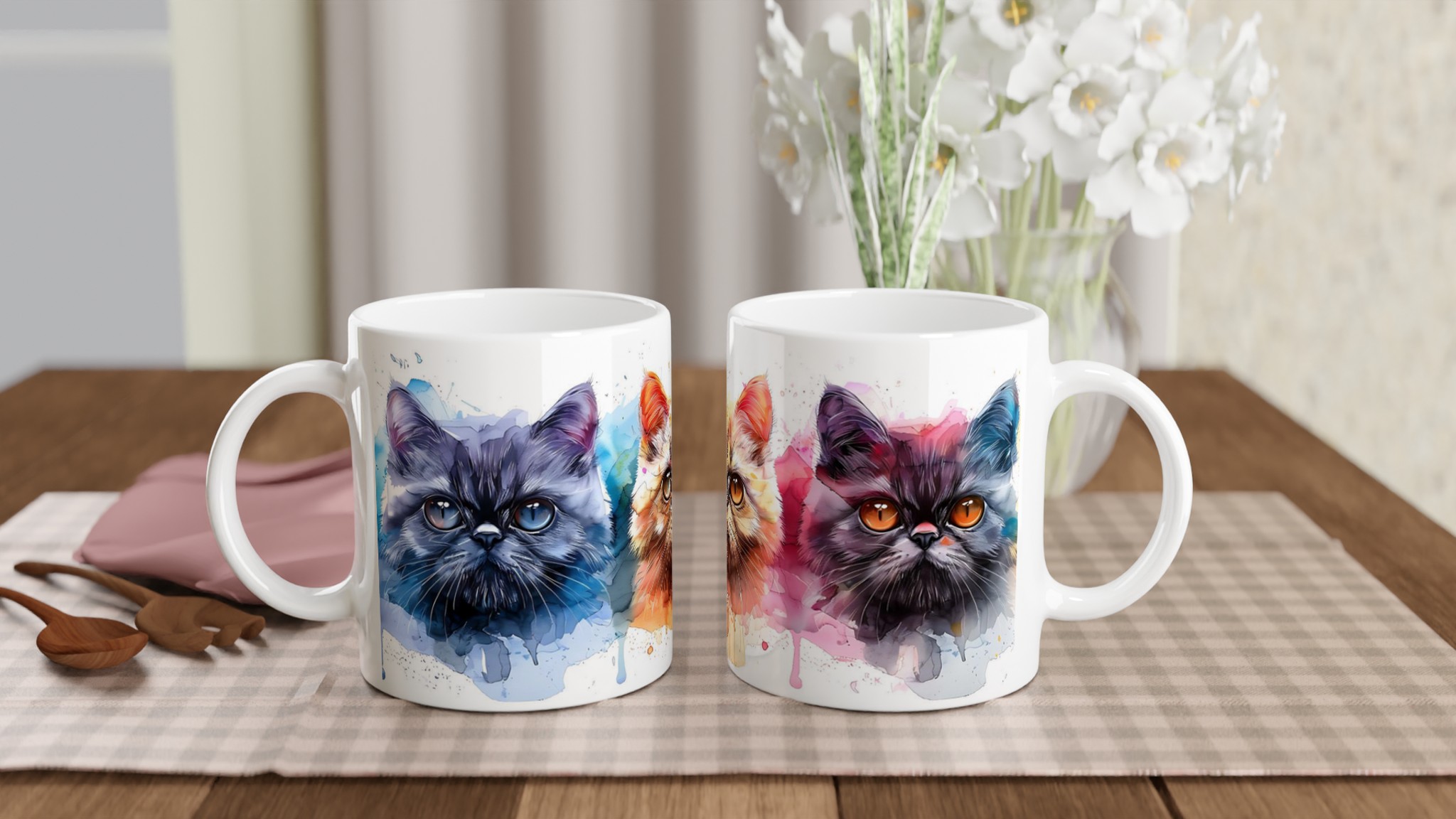 Den blanka vita ytan gör att trycken framhävs med klara och levande färger, som håller sig fina även efter många turer i mikron och diskmaskinen. Välj din favoritfärg och låt den lysa upp din dag! Muggen är inte bara praktisk – den är också en uppskattad present till familj, vänner eller kollegor. En enkel men personlig gåva som alltid kommer till användning och hyllar kattälskaren i ditt liv.