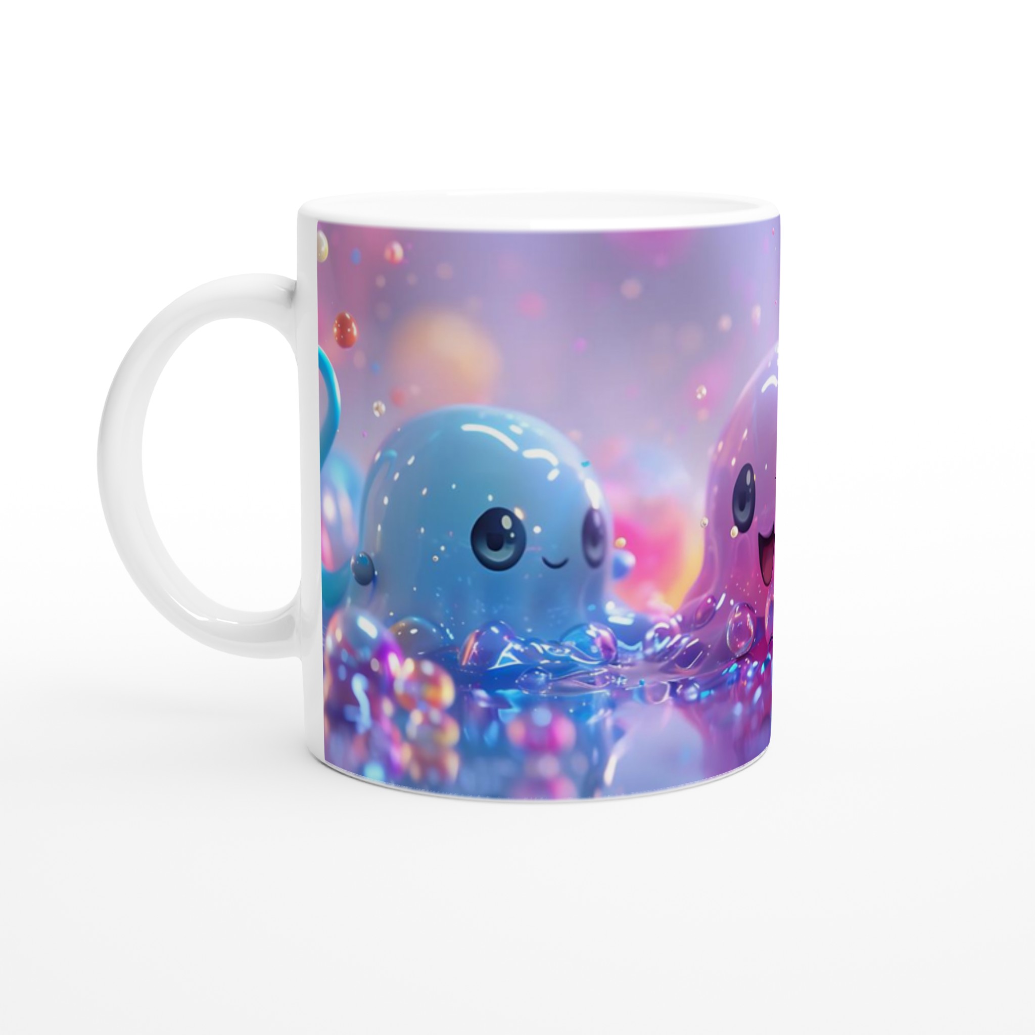 Inspirerad av den glada och lekfulla Kawaii-estetiken, kommer denna mugg att fylla dina dagar med färg och glädje. De söta, bubbliga karaktärerna i pastellfärger som syns på bilden förmedlar en känsla av lycka och lekfullhet, vilket gör denna mugg till den perfekta starten på dagen eller en mysig stund när som helst. Den blanka vita ytan ger ett skarpt och levande tryck som verkligen sticker ut, oavsett om det är en personlig design, ett roligt citat eller en present till någon du tycker om.