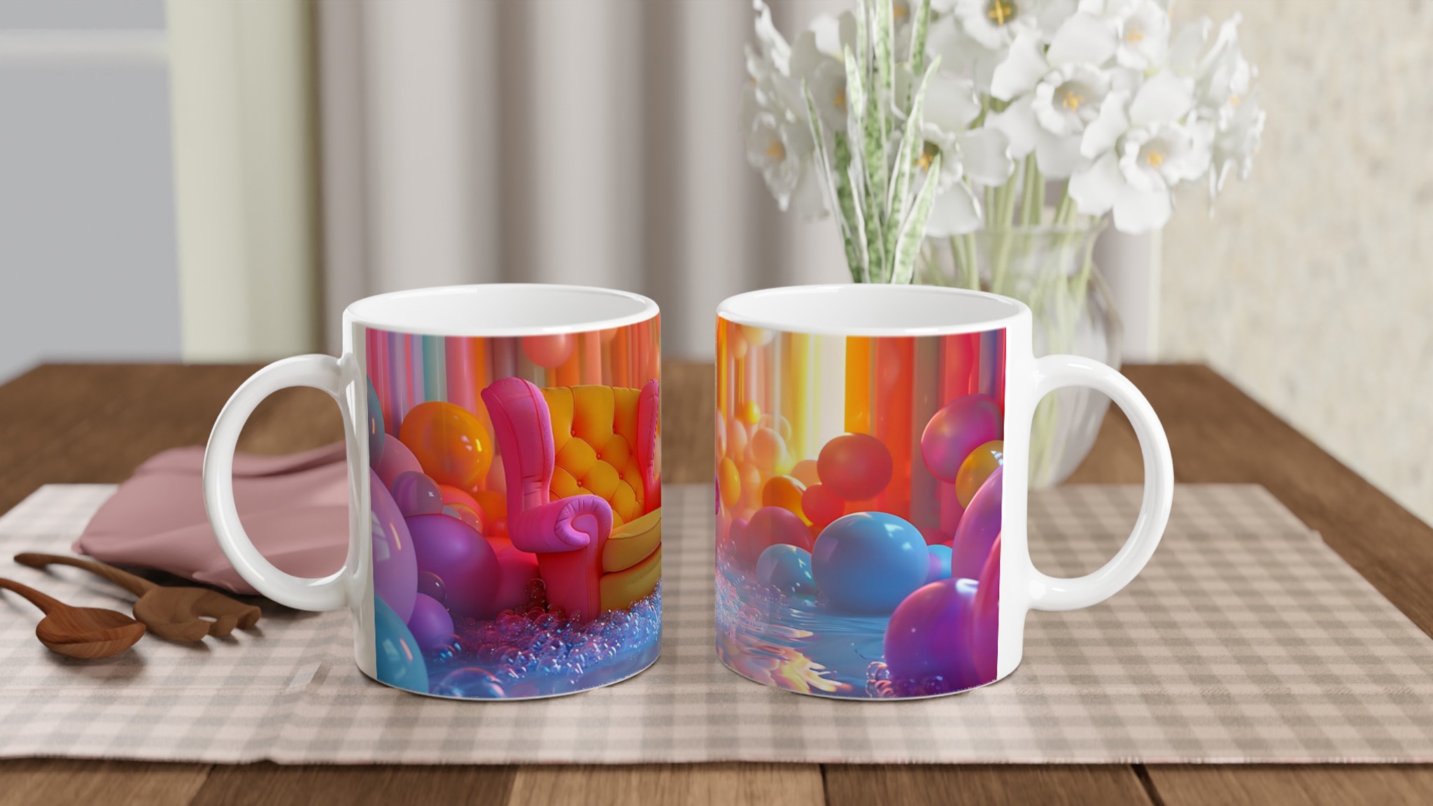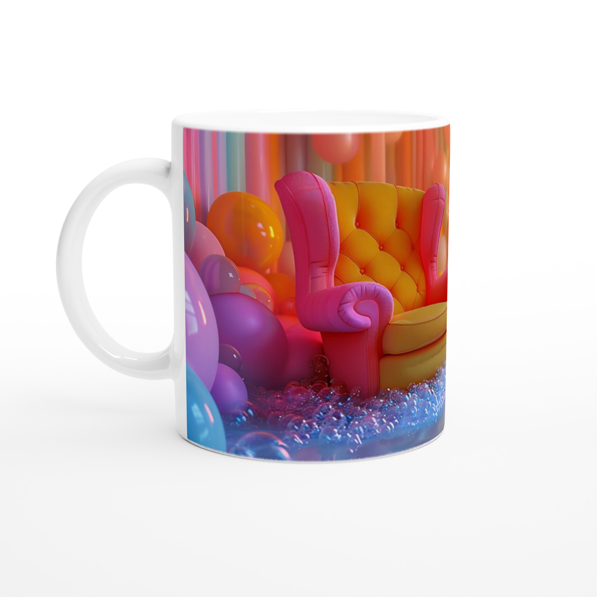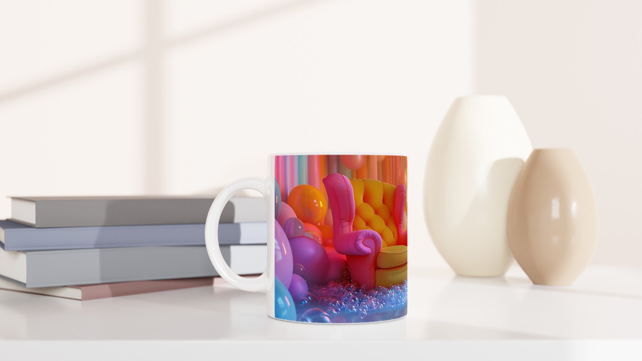 Denna mugg är mer än bara en kopp; den är en inbjudan till glädje och en utmärkt presentidé. Överraska familj, vänner eller kollegor med en enkel men personlig gåva som garanterat kommer till användning varje dag. Välj bland ett spektrum av sju uppiggande färger som fångar den lekfulla och drömska känslan från bilden – från klassiskt Ceramic White till livliga Ceramic Yellow, Pink, Green, Red, Black eller Blue.