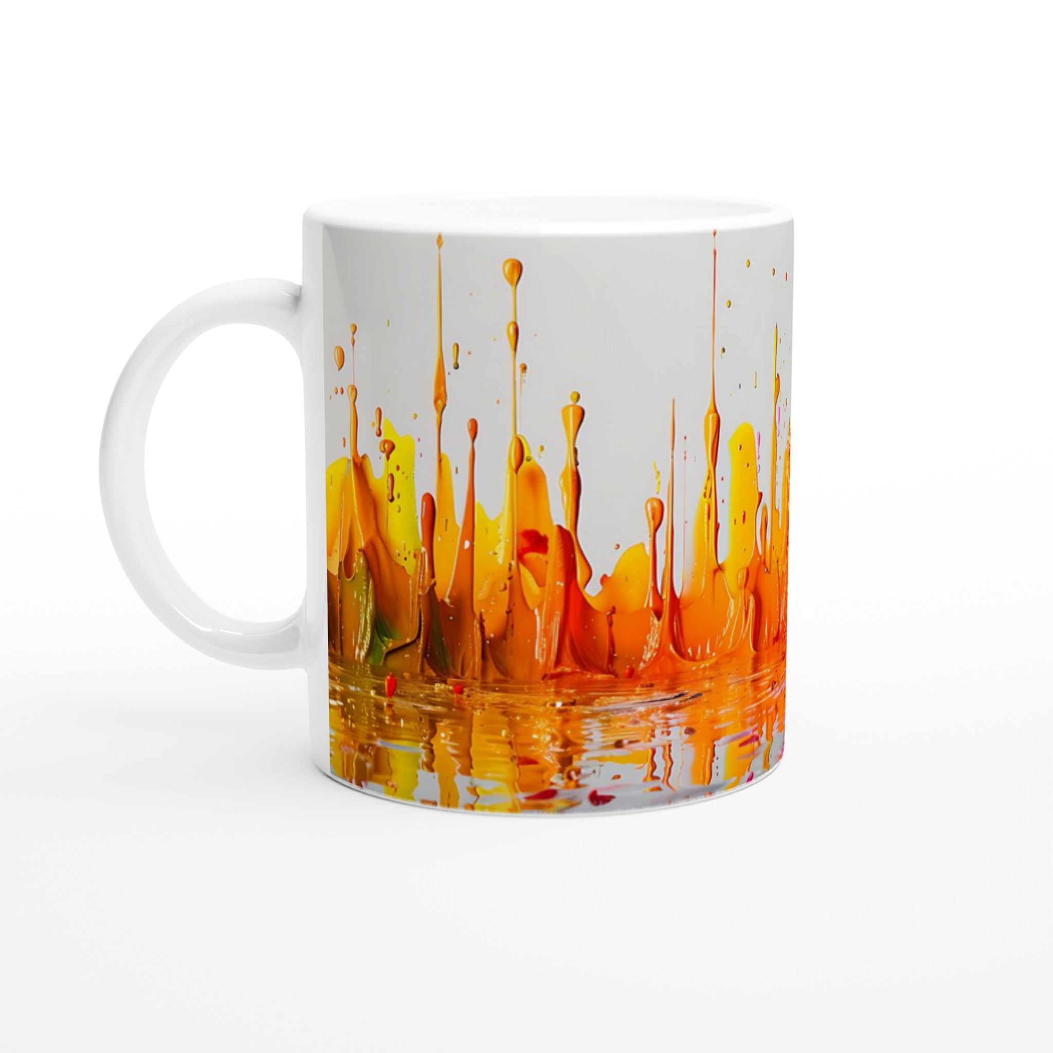 Inspirerad av den livliga explosionen av färg som ses i abstrakta konstverk, erbjuder denna mugg en palett av valmöjligheter för att uttrycka din unika stil. Den blanka vita ytan ger ett skarpt och levande tryck som verkligen sticker ut, oavsett om det är en personlig design, ett roligt citat eller en present till någon du tycker om.