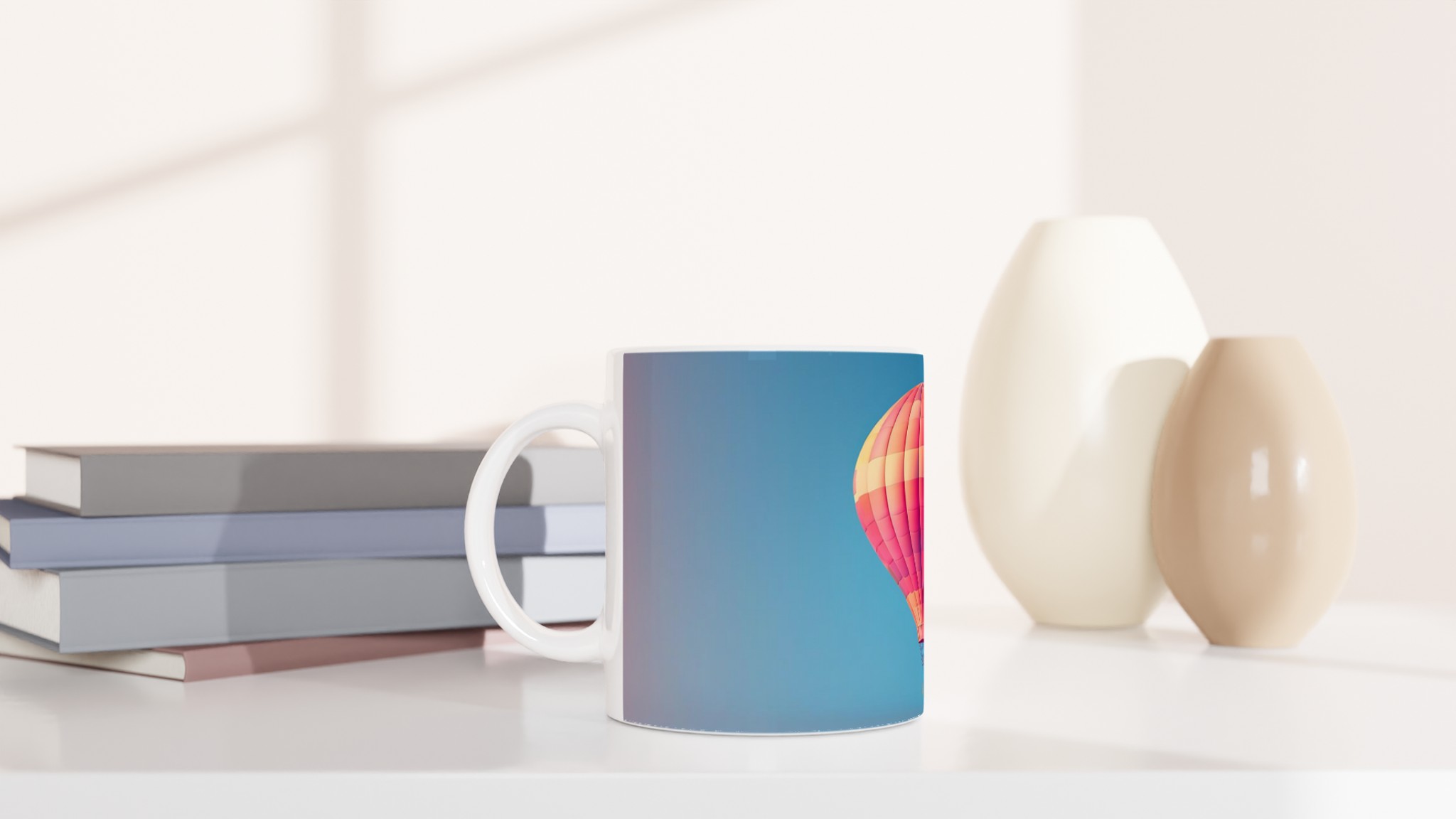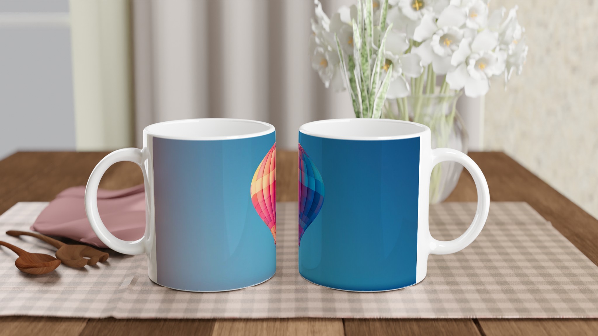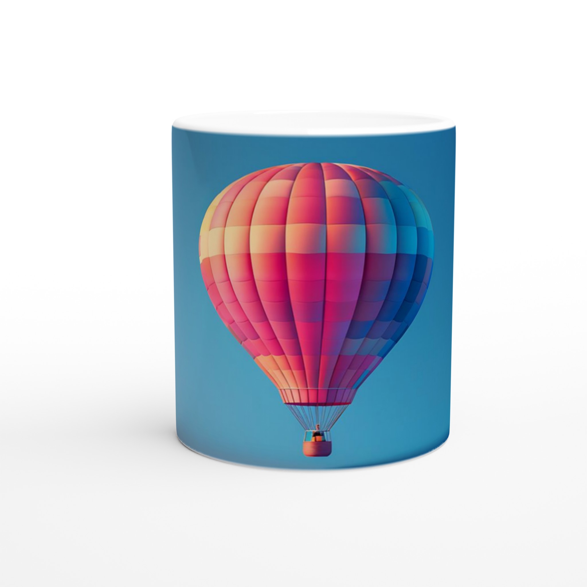 Fånga känslan av en klarblå himmel med en färgsprakande ballong i sikte, varje gång du tar en klunk från denna livfulla keramikmugg! Denna stilrena och vackra keramikmugg är perfekt för alla dagens stunder – morgonkaffet, en värmande kopp te eller en härlig varm choklad. Den blanka vita ytan gör att trycken framträder klart och färgstarkt, vilket gör muggen till en riktig favorit i vardagen. Tack vare den höga kvaliteten behåller trycket sin lyster även efter många omgångar i både mikrovågsugn och diskmaskin.