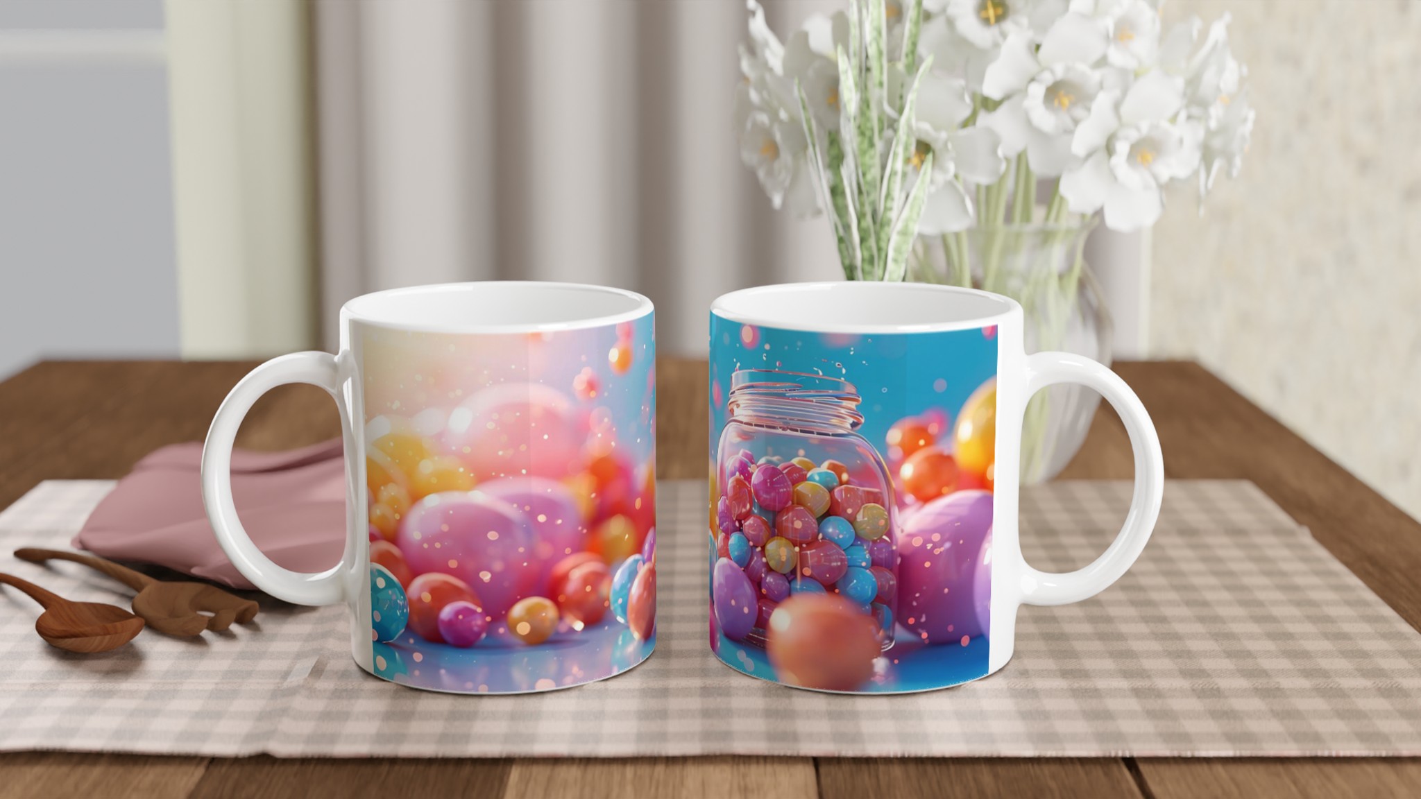 Lys upp din vardag med vår Färgsprakande Keramiska Mugg! Denna stilrena och vackra keramikmugg är perfekt för alla dagens stunder – morgonkaffet, en värmande kopp te eller en härlig varm choklad. Inspirerad av en explosion av glädje och levande färger, är denna mugg designad för att sprida goda vibbar. Den blanka vita ytan gör att trycken framträder klart och färgstarkt, vilket gör muggen till en riktig favorit i vardagen. Tack vare den höga kvaliteten behåller trycket sin lyster även efter många omgångar i både mikrovågsugn och diskmaskin.