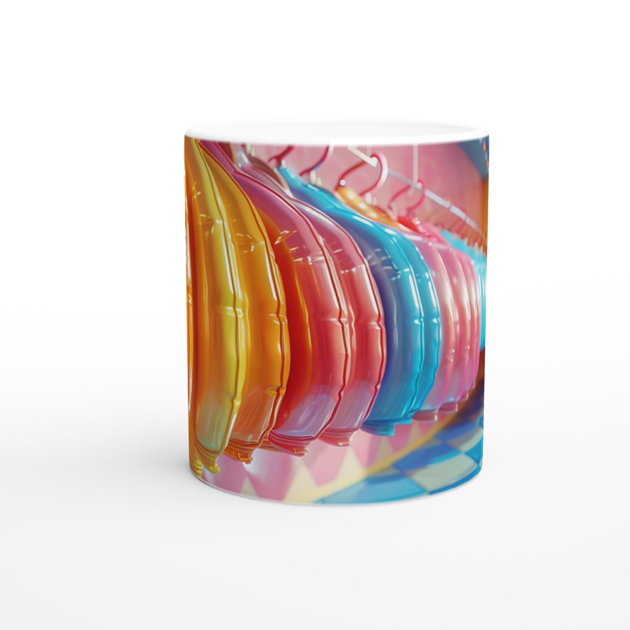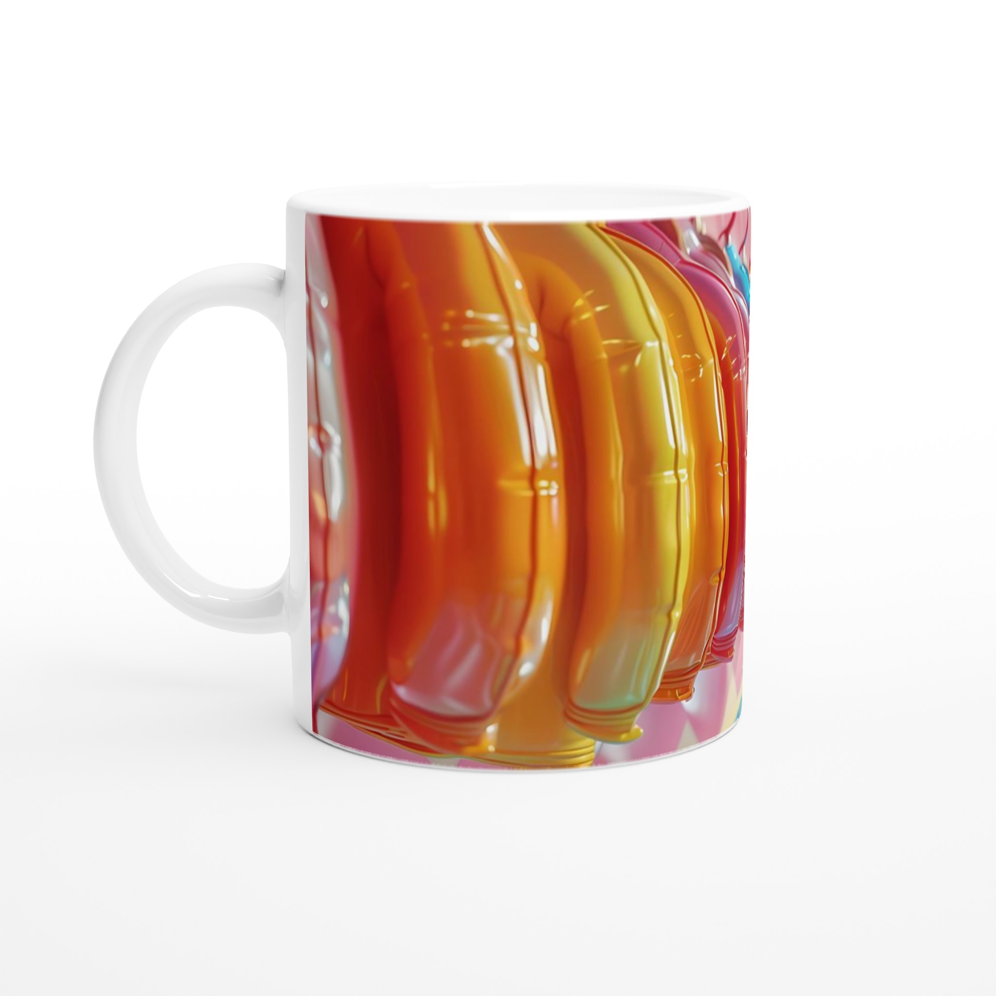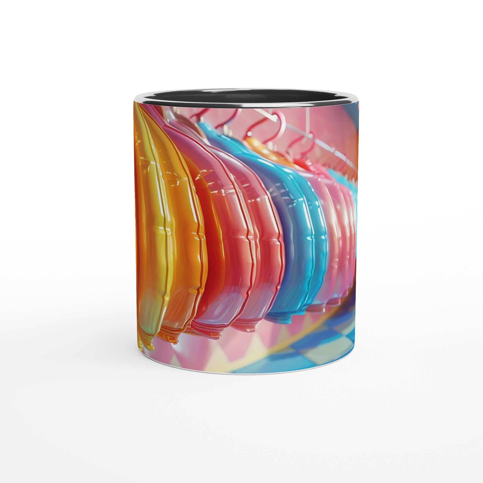 Lys upp din vardag med vår livfulla keramiska mugg! Med en palett av glada färger – inspirerade av godisbutikens lekfulla charm och den skinande ytan av en ballong – är denna mugg den perfekta följeslagaren för dina favoritdrycker. Oavsett om det är morgonkaffet, en lugnande kopp te, eller en lyxig varm choklad, kommer den blanka, färgstarka ytan att lyfta din stund och få varje klunk att kännas lite extra speciell.
