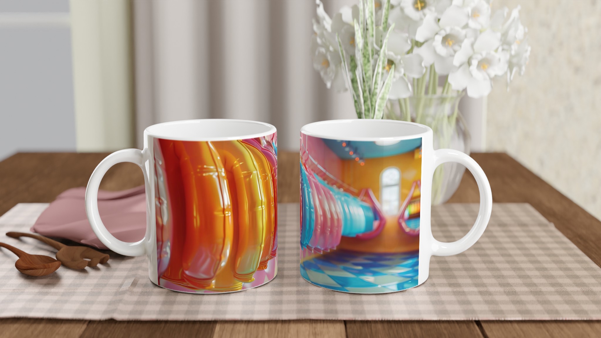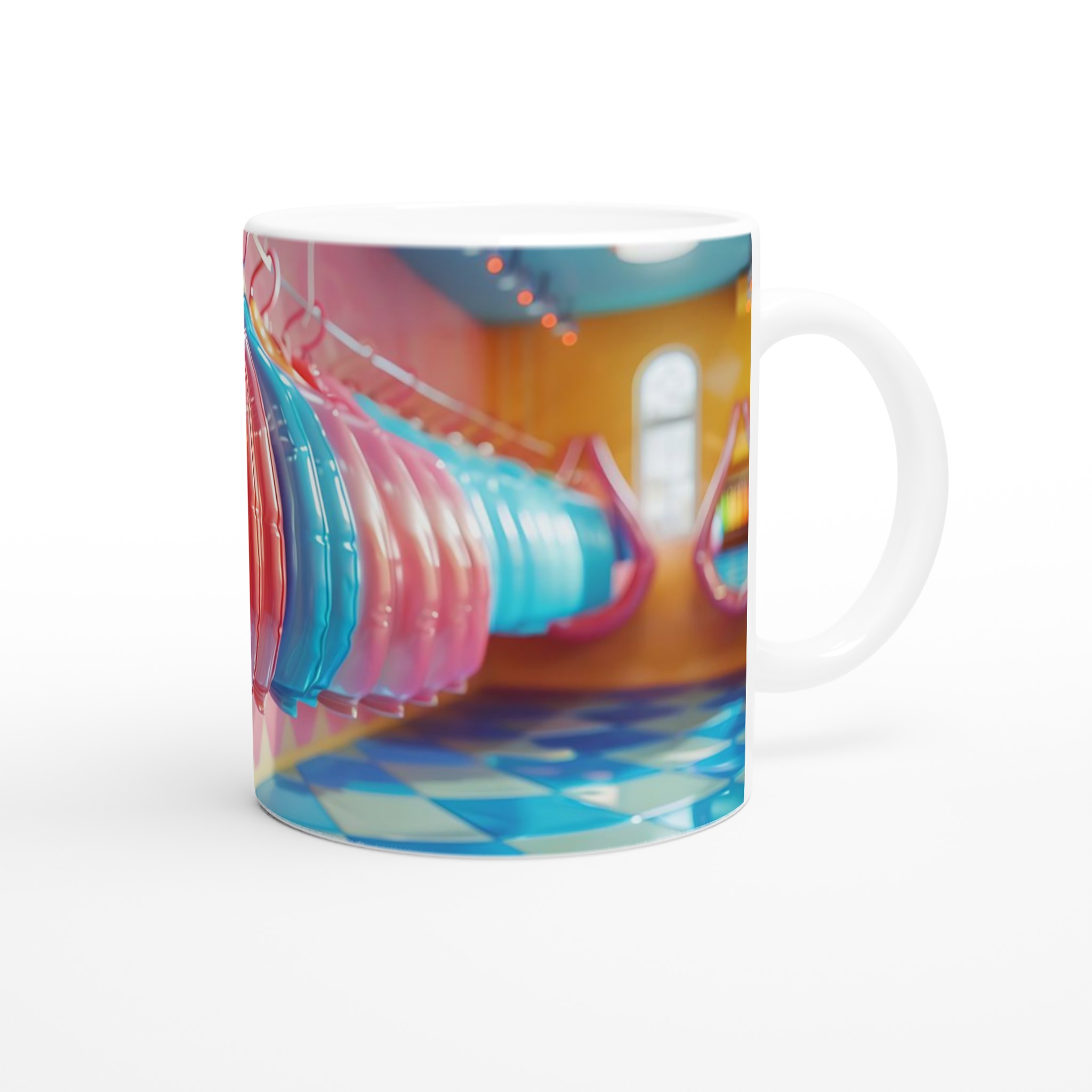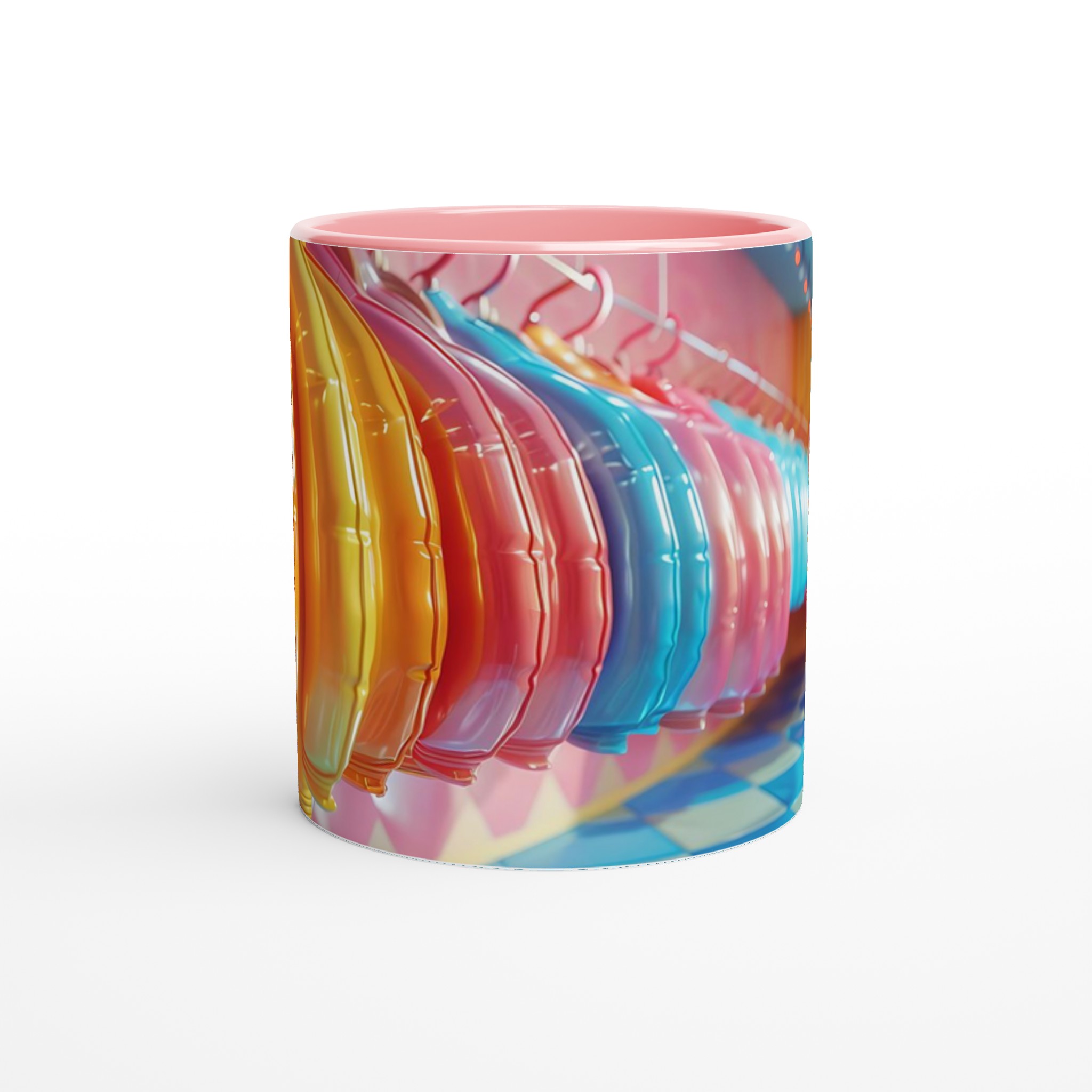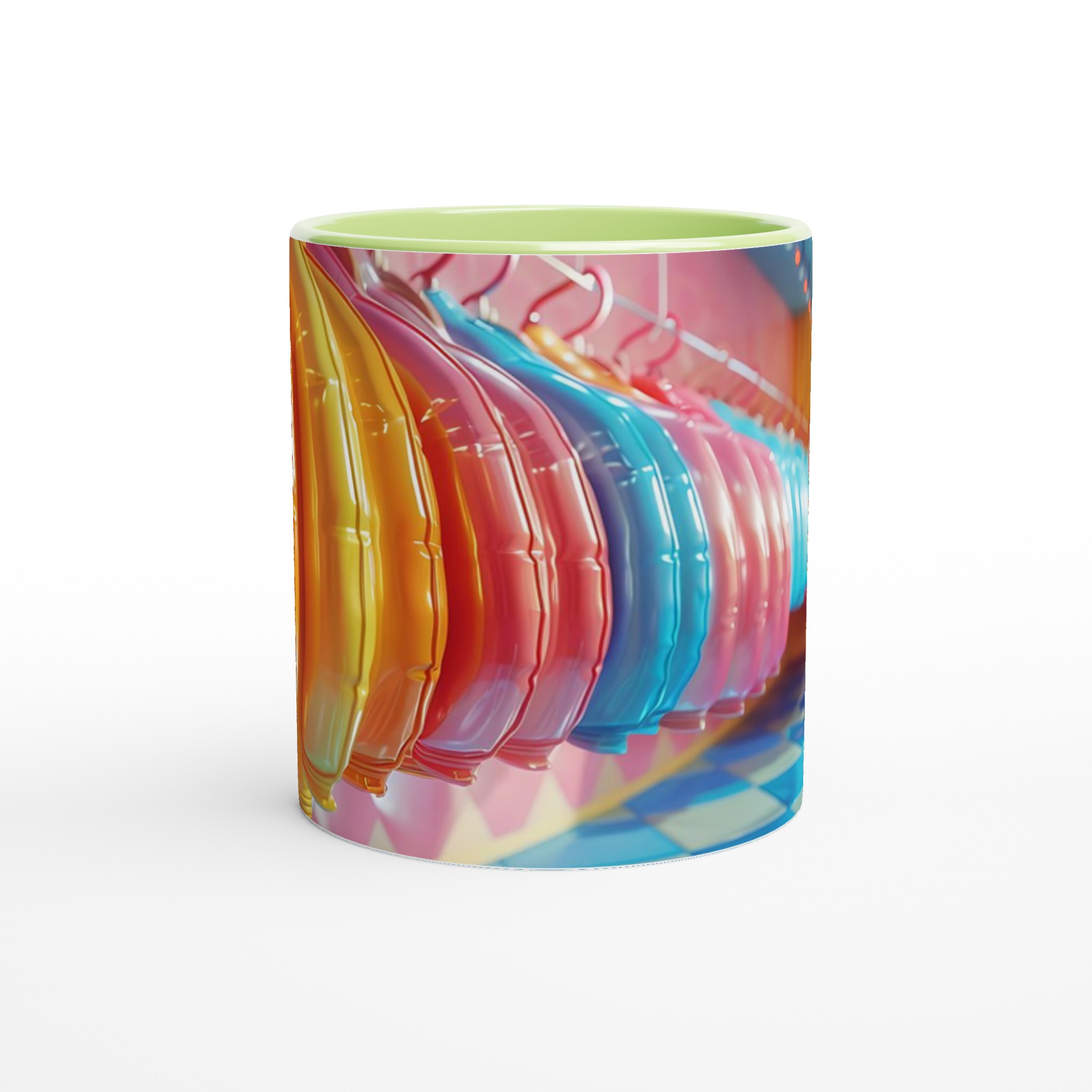 Lys upp din vardag med vår livfulla keramiska mugg! Med en palett av glada färger – inspirerade av godisbutikens lekfulla charm och den skinande ytan av en ballong – är denna mugg den perfekta följeslagaren för dina favoritdrycker. Oavsett om det är morgonkaffet, en lugnande kopp te, eller en lyxig varm choklad, kommer den blanka, färgstarka ytan att lyfta din stund och få varje klunk att kännas lite extra speciell.