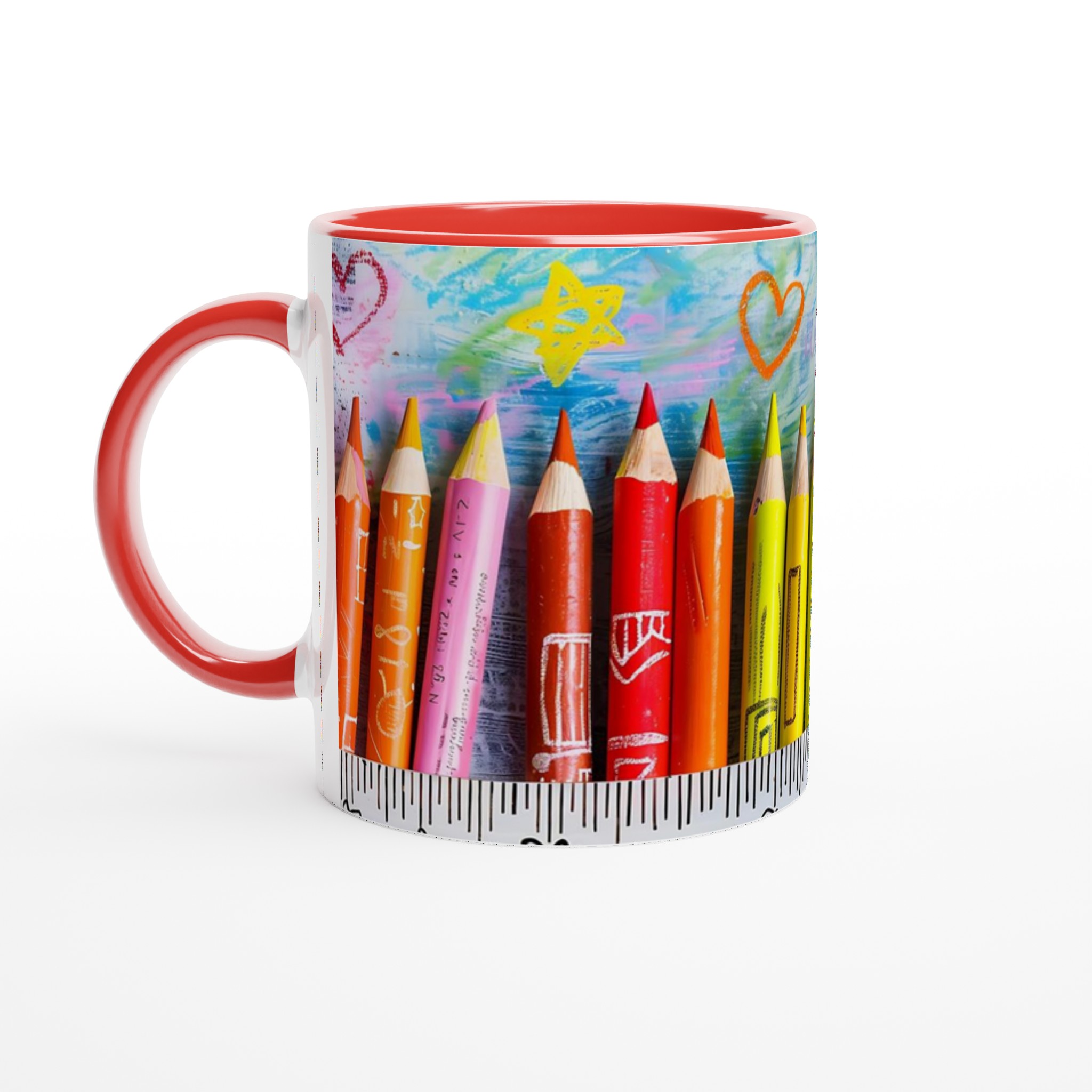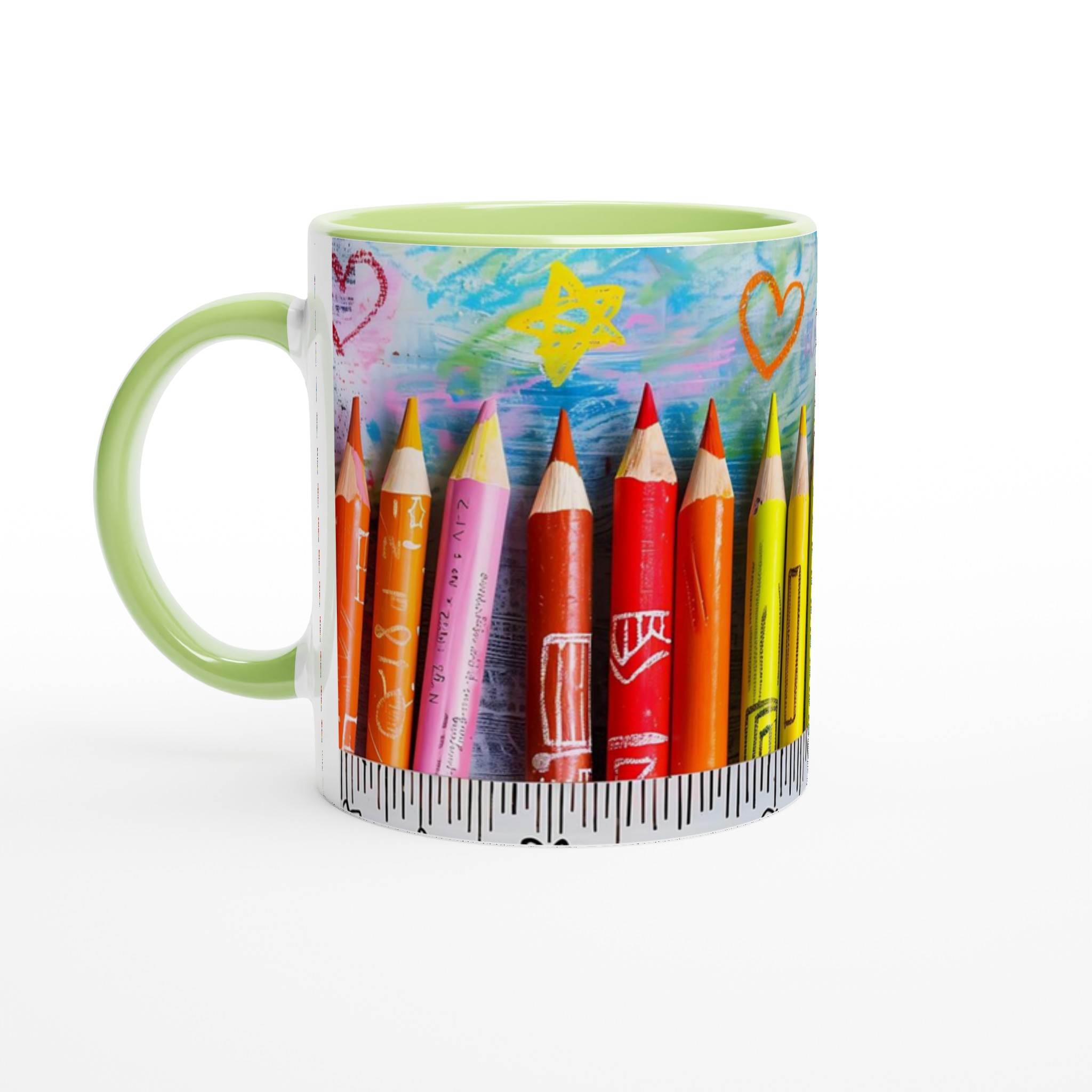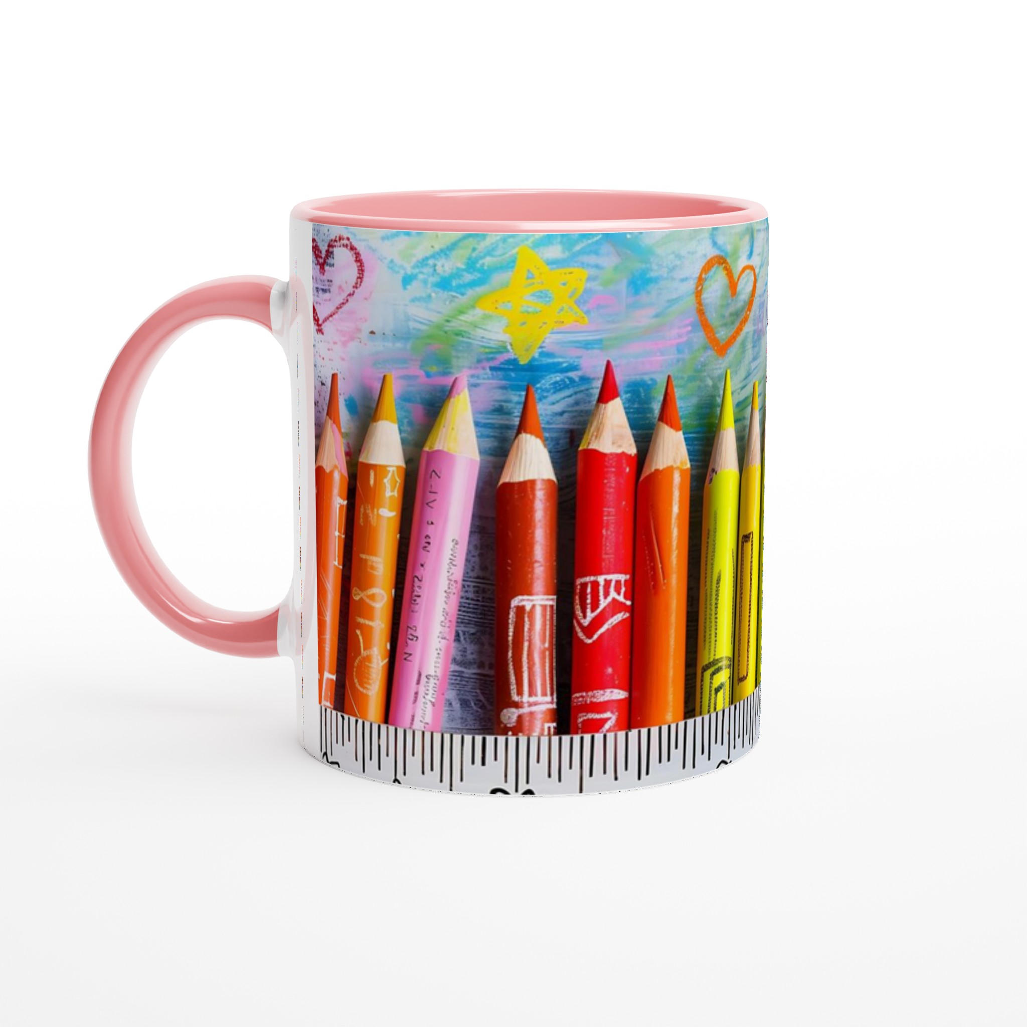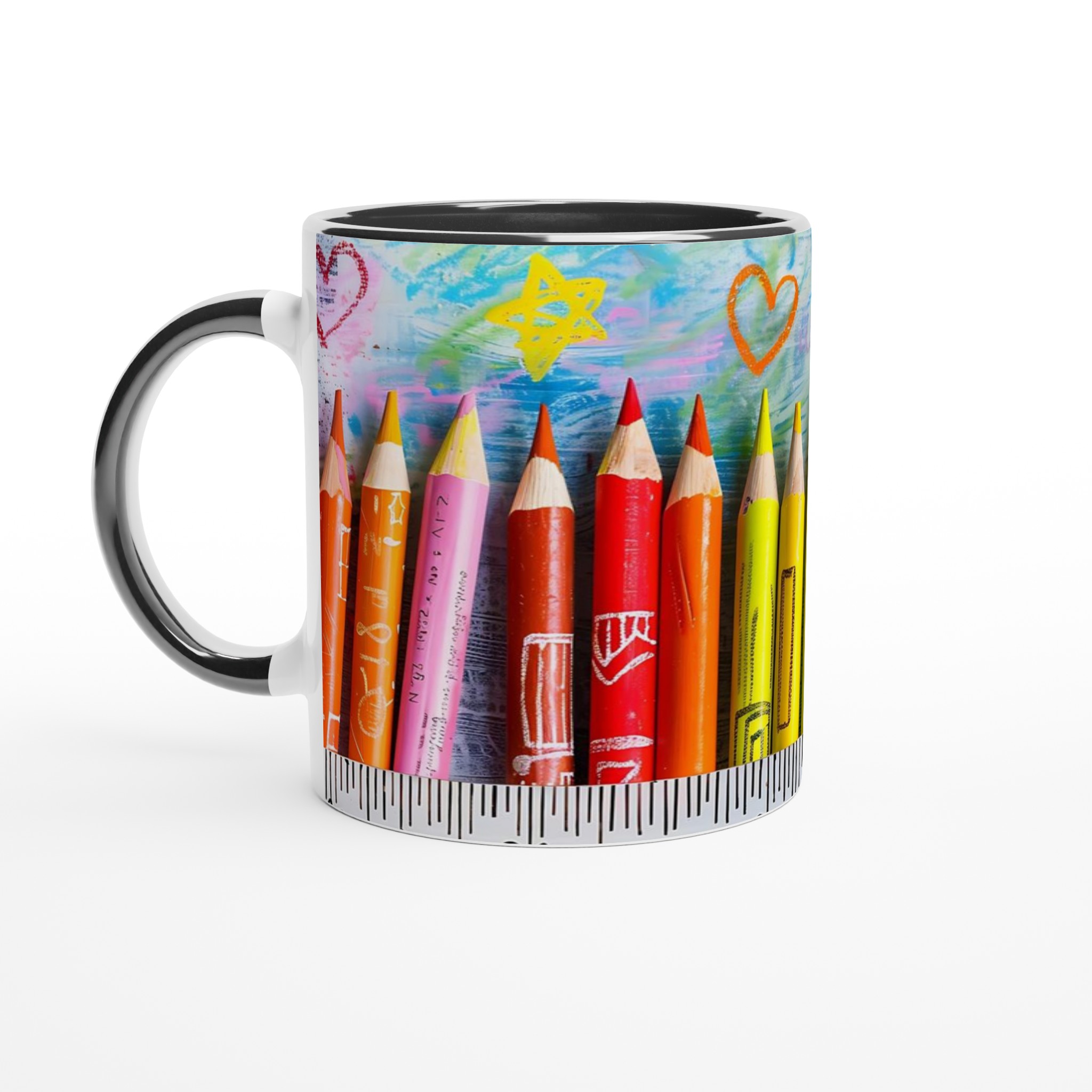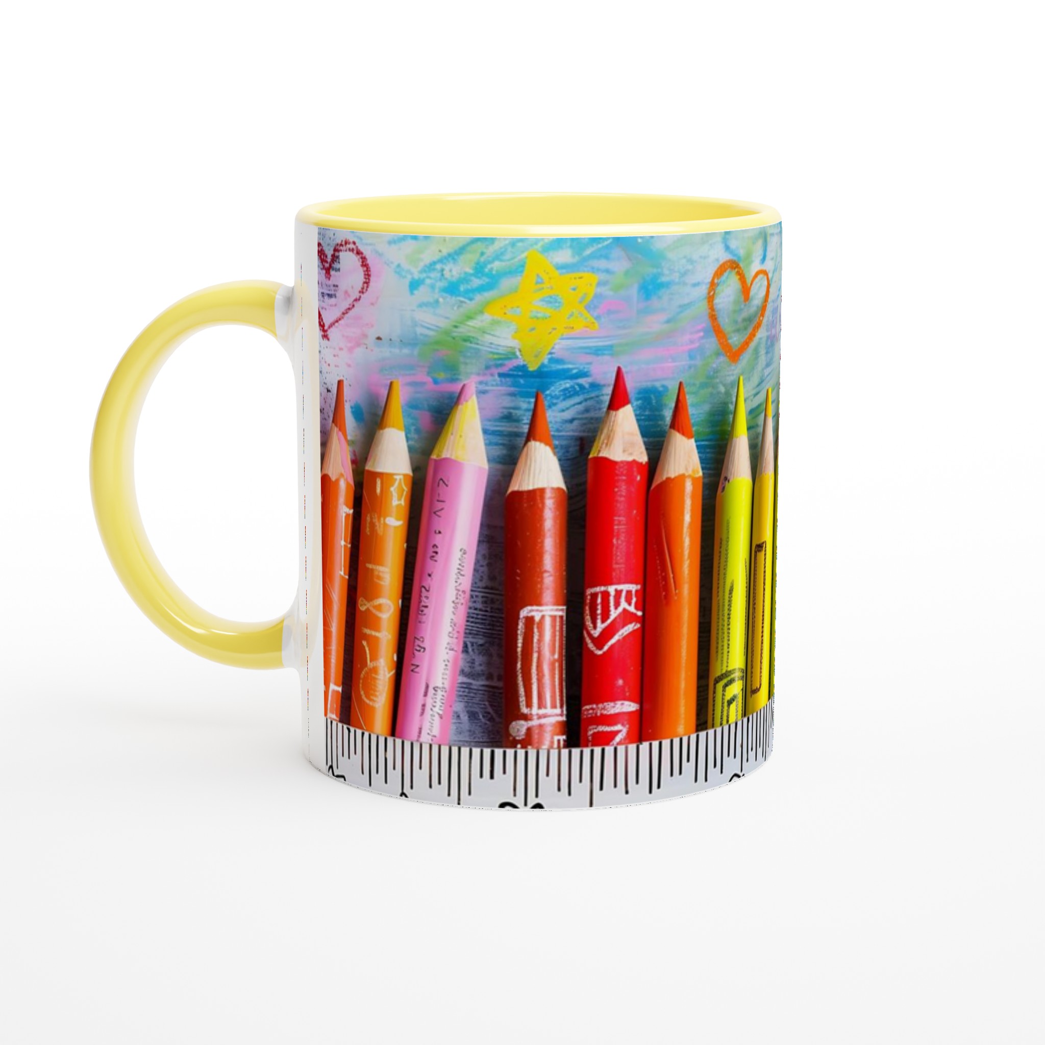 Låt kreativiteten flöda med denna färgsprakande keramiska mugg, inspirerad av glädjen i att skapa! Den här stilrena muggen blir snabbt en vardagsfavorit, perfekt för morgonkaffet, kvällens varma choklad eller när du bara vill njuta av en kopp te. Den blanka ytan gör att trycken framhävs med klara och levande färger, som håller sig fina även efter många turer i mikron och diskmaskinen.