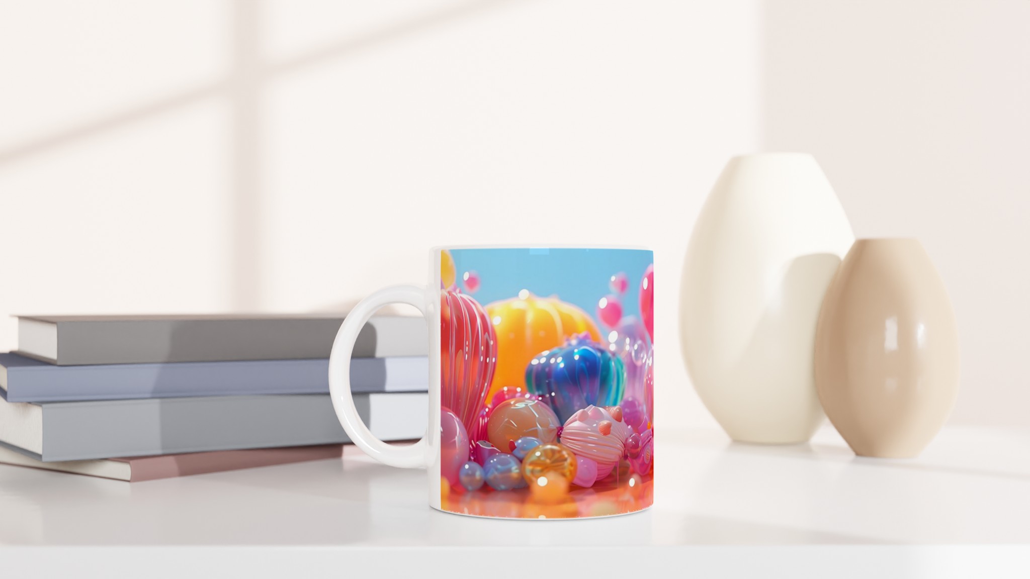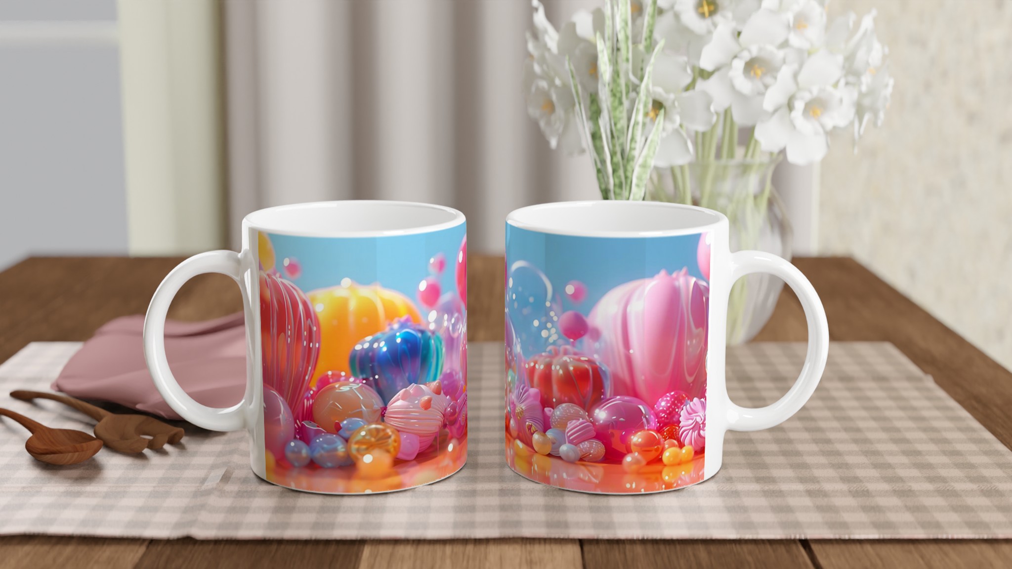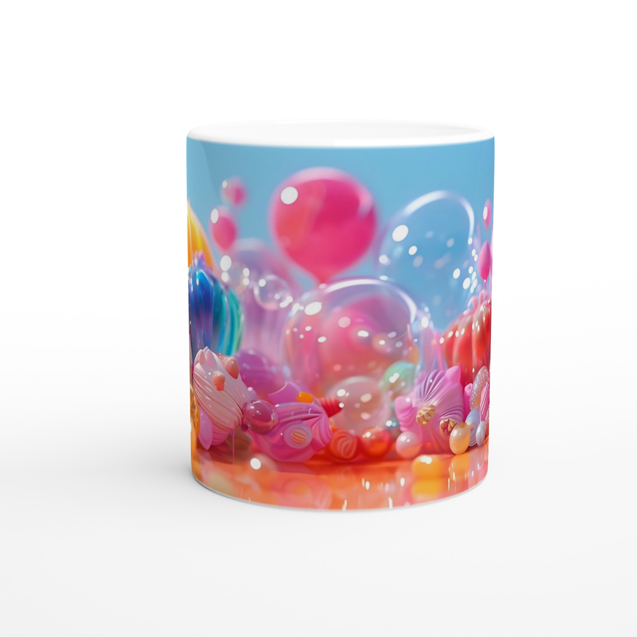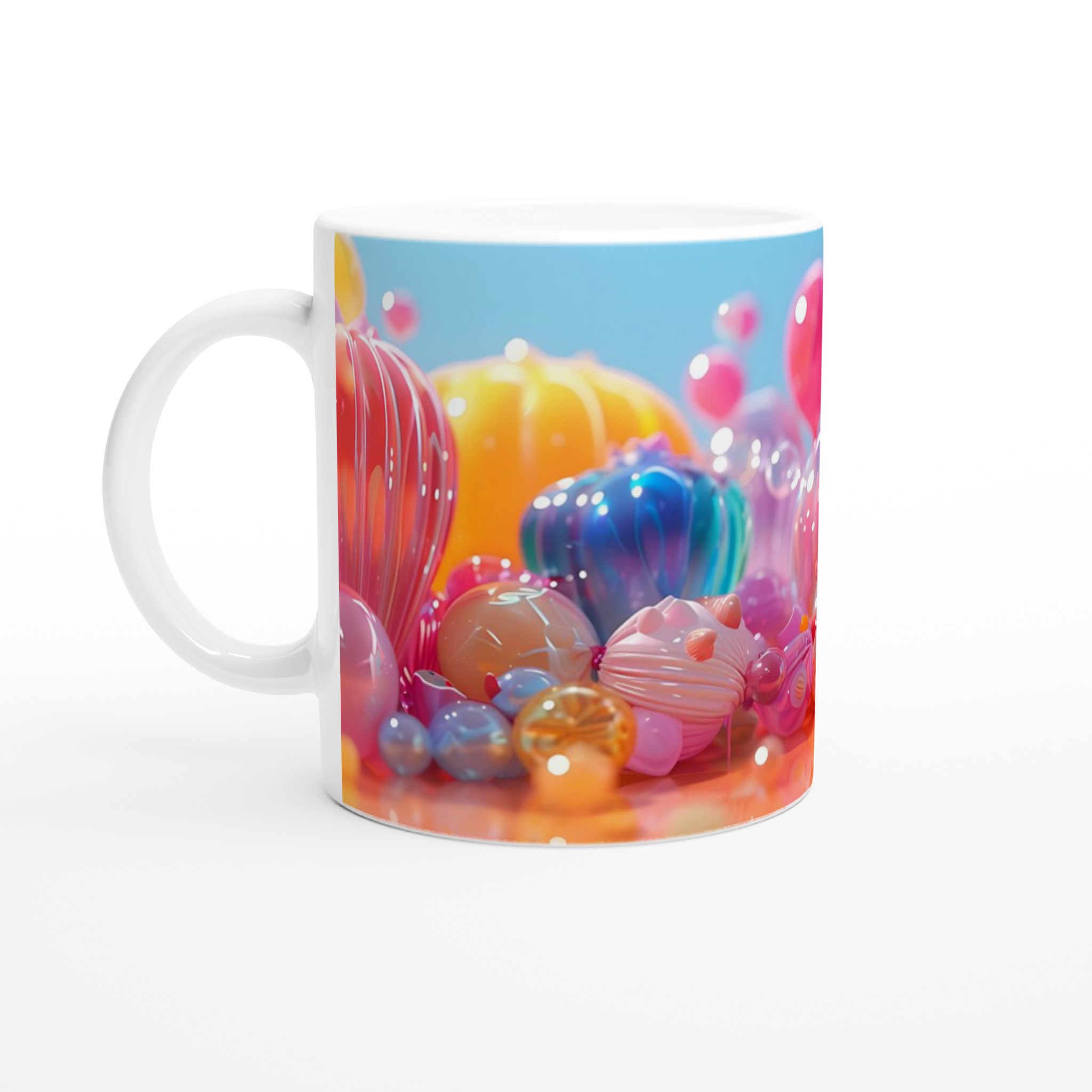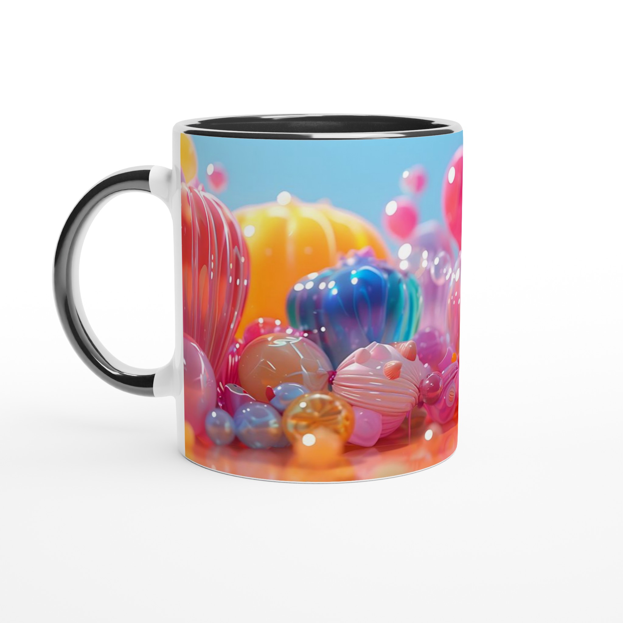 Lys upp din dag med denna lekfulla keramiska mugg, inspirerad av glädjen i färgglada godisar och festliga ballonger. Denna mugg blir snabbt en favorit för alla tillfällen – oavsett om det är för ditt morgonkaffe, en mysig kväll med varm choklad, eller en avkopplande tekopp. Den blanka ytan framhäver trycken med klara och levande färger som behåller sin lyster, även efter otaliga turer i mikron och diskmaskinen.