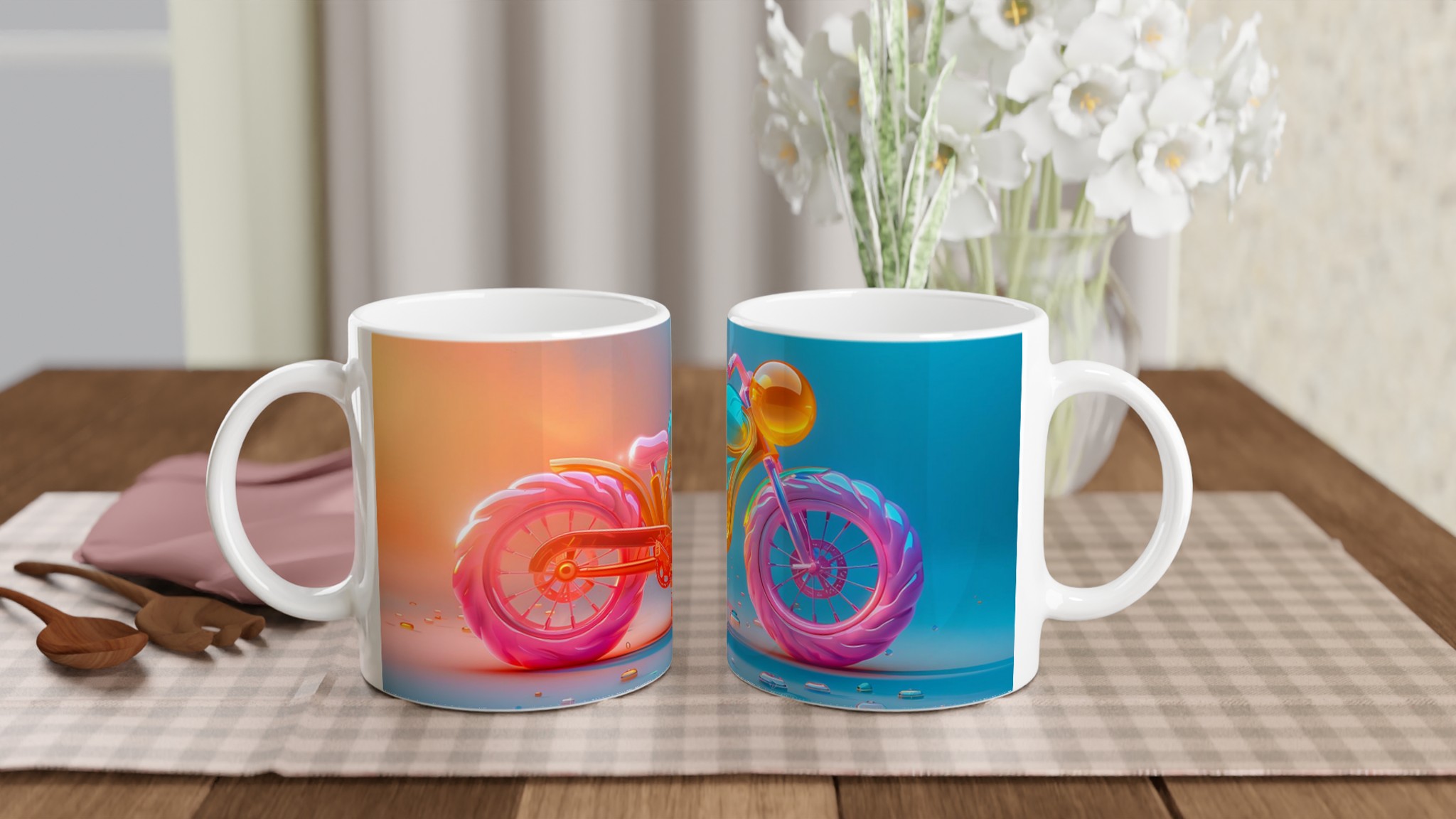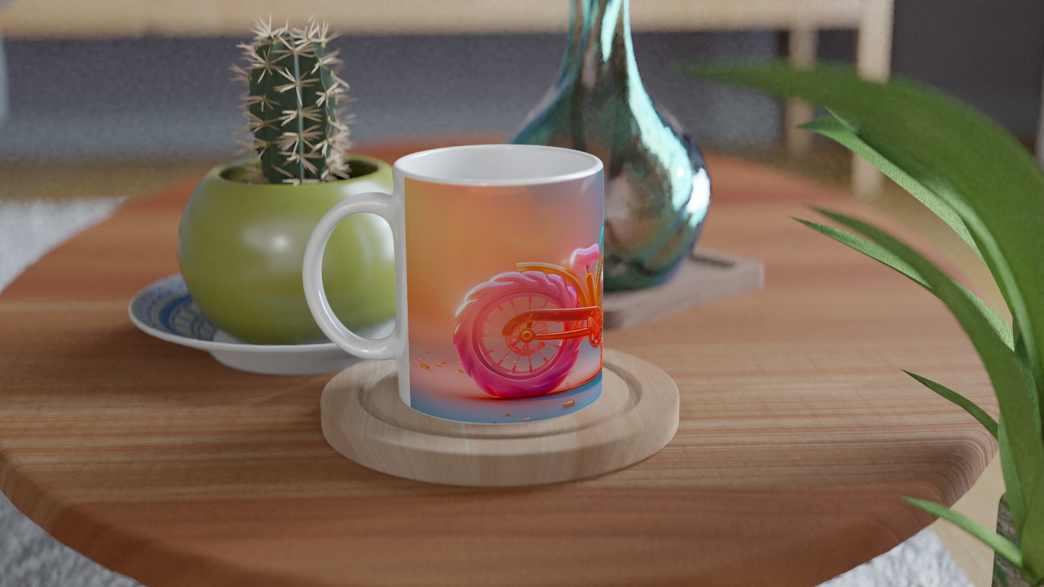 Lyft din fikapaus med denna unikt designade keramiska mugg! Inspirerad av den lekfulla och drömska estetiken, med en färgpalett som strålar av glädje och energi, blir denna mugg snabbt en favorit. Oavsett om du föredrar ditt morgonkaffe, en mysig kopp varm choklad på kvällen, eller en uppfriskande te, så kommer dess blanka yta att framhäva tryck med klara och levande färger. Dessa färger håller sig fantastiska, även efter otaliga vändor i mikron och diskmaskinen.