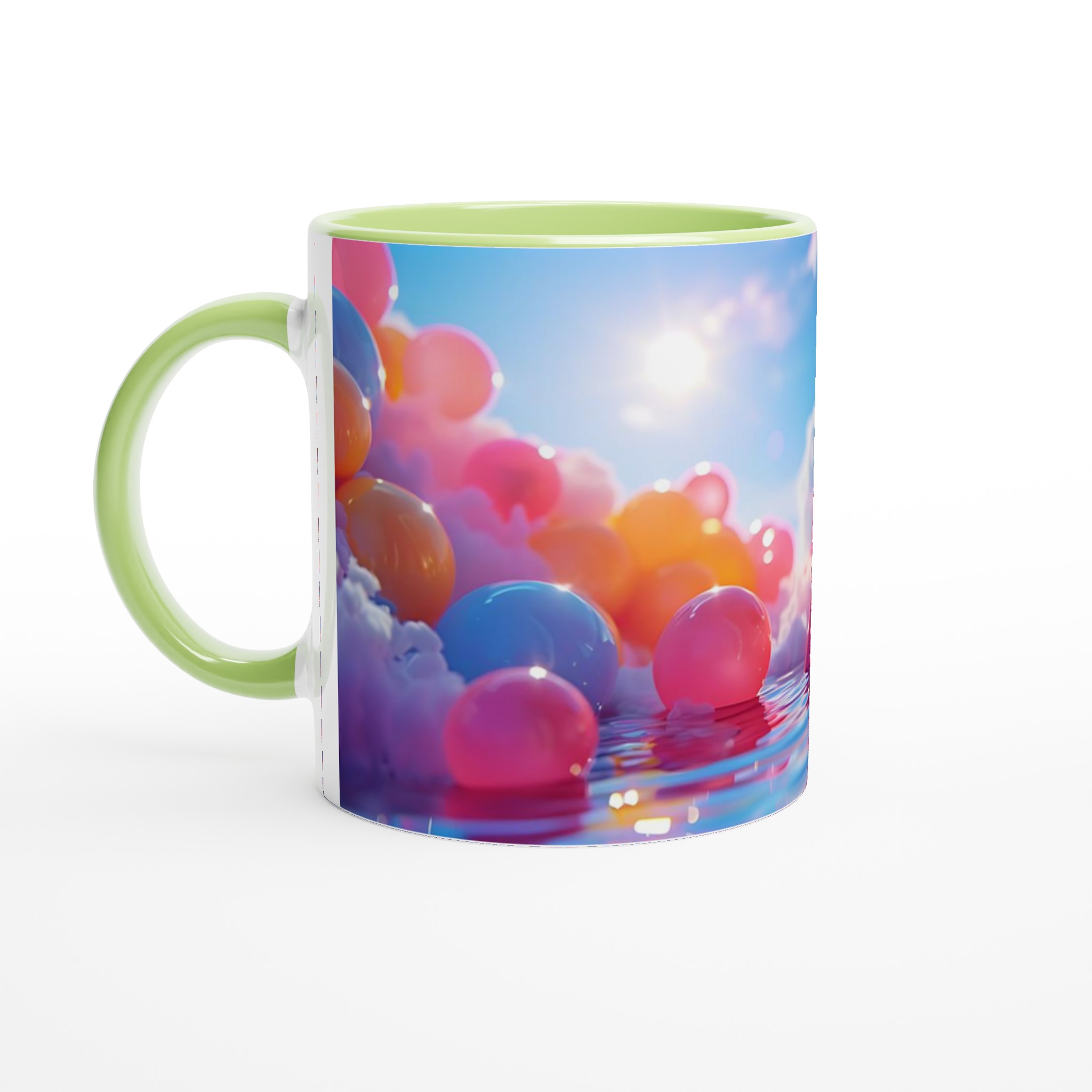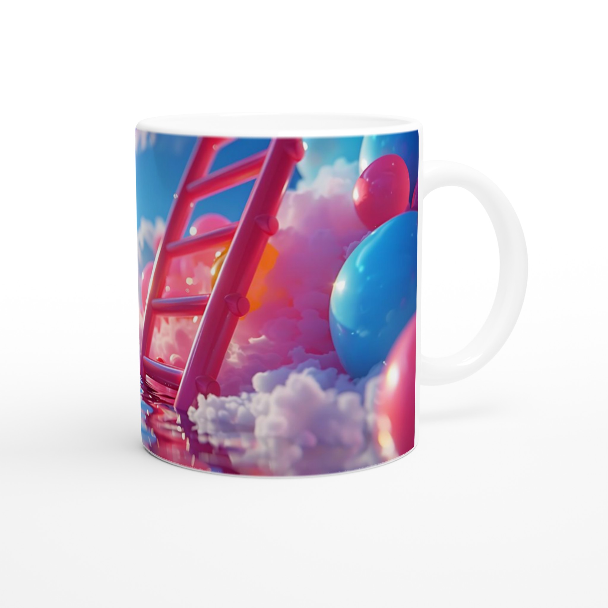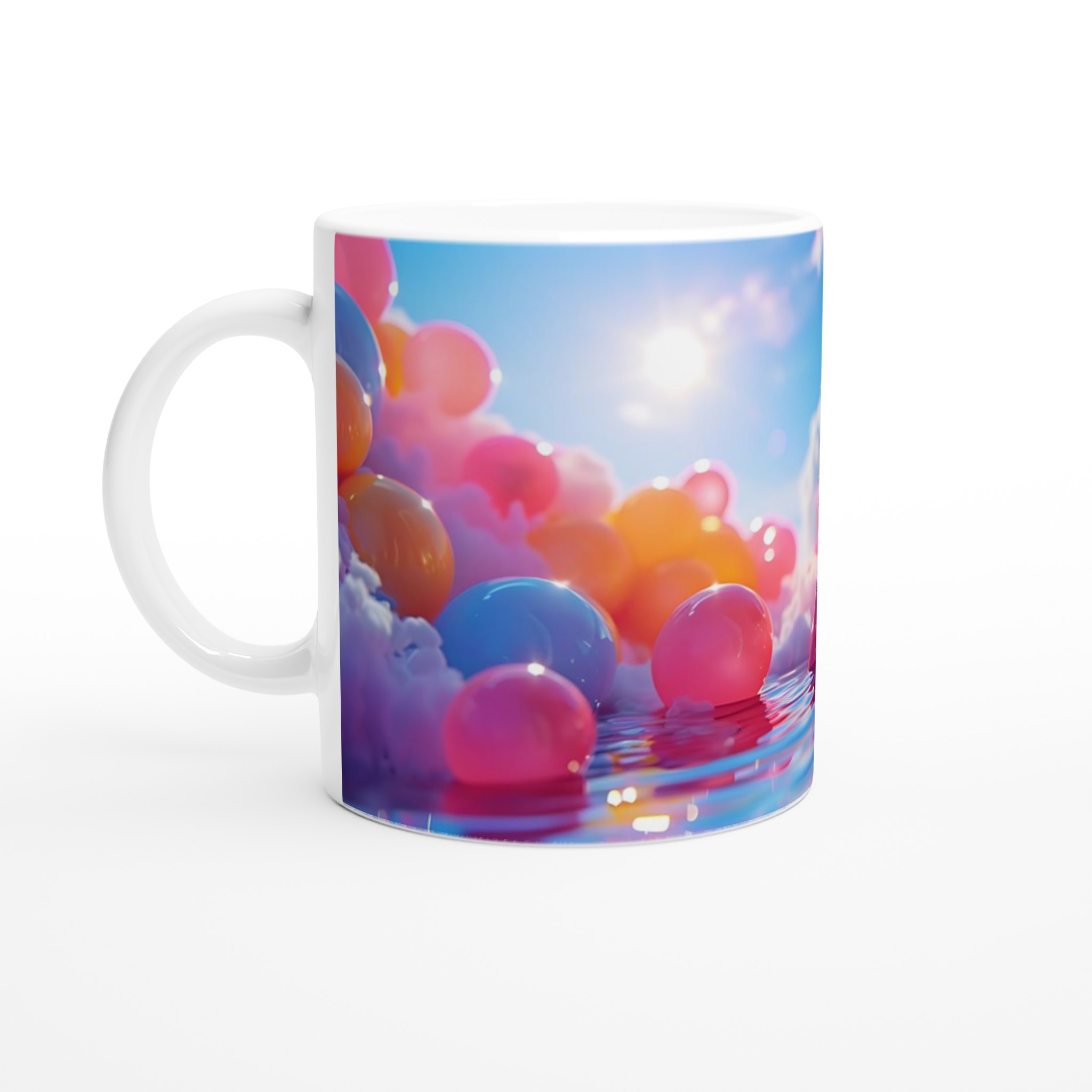 Stig in i en värld av färg och fantasi med vår Färgsprakande Keramiska Mugg, en sann vardagsfavorit som förvandlar varje sipp till en stund av glädje. Inspirerad av drömska scener med mjuka moln, glittrande vatten och en palett av livfulla nyanser, är denna mugg mer än bara en dryckesbehållare – den är ett konstverk. Perfekt för morgonkaffet som väcker sinnena, kvällens varma choklad som värmer själen, eller när du bara vill njuta av en kopp te och låta tankarna vandra.