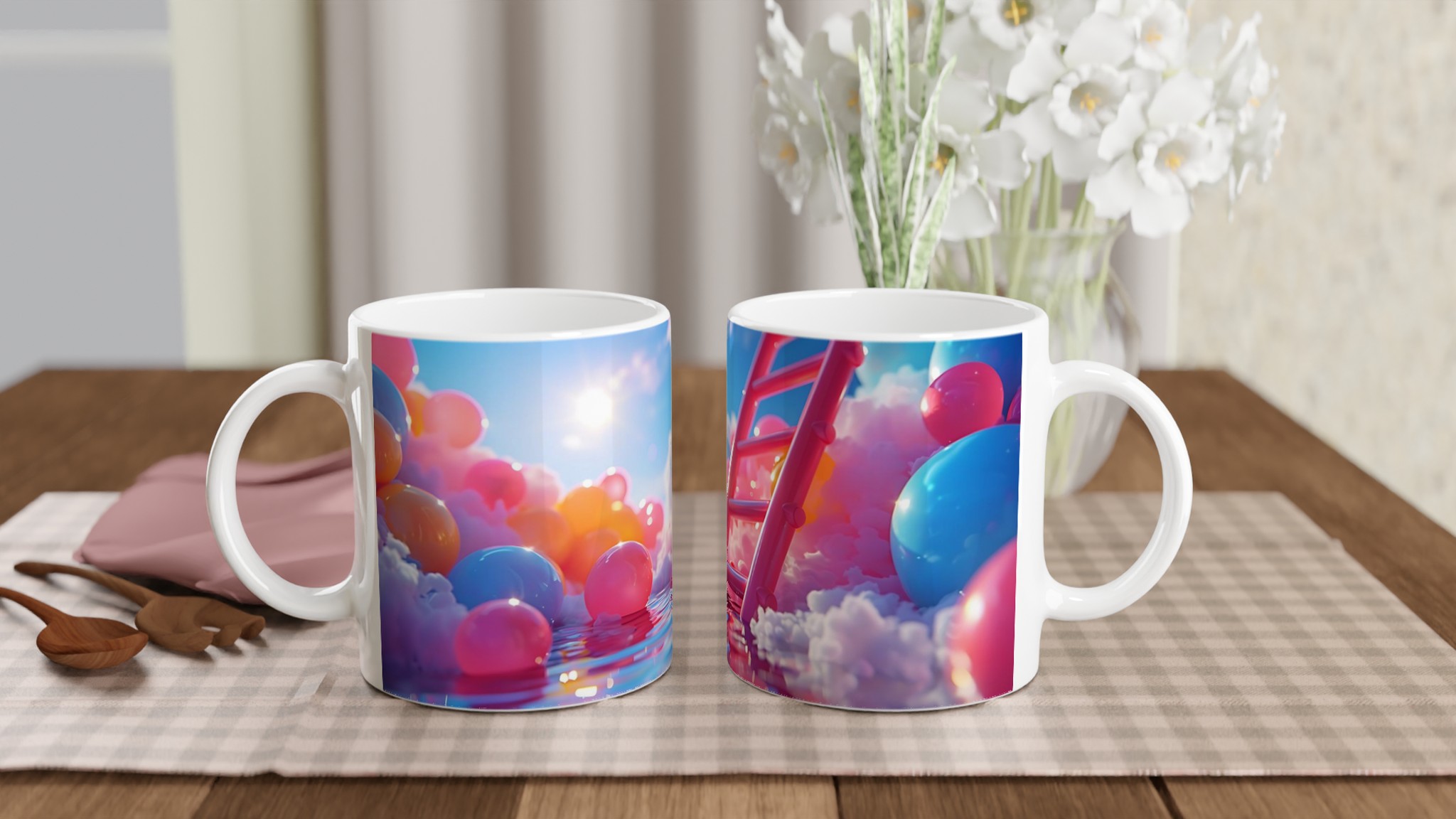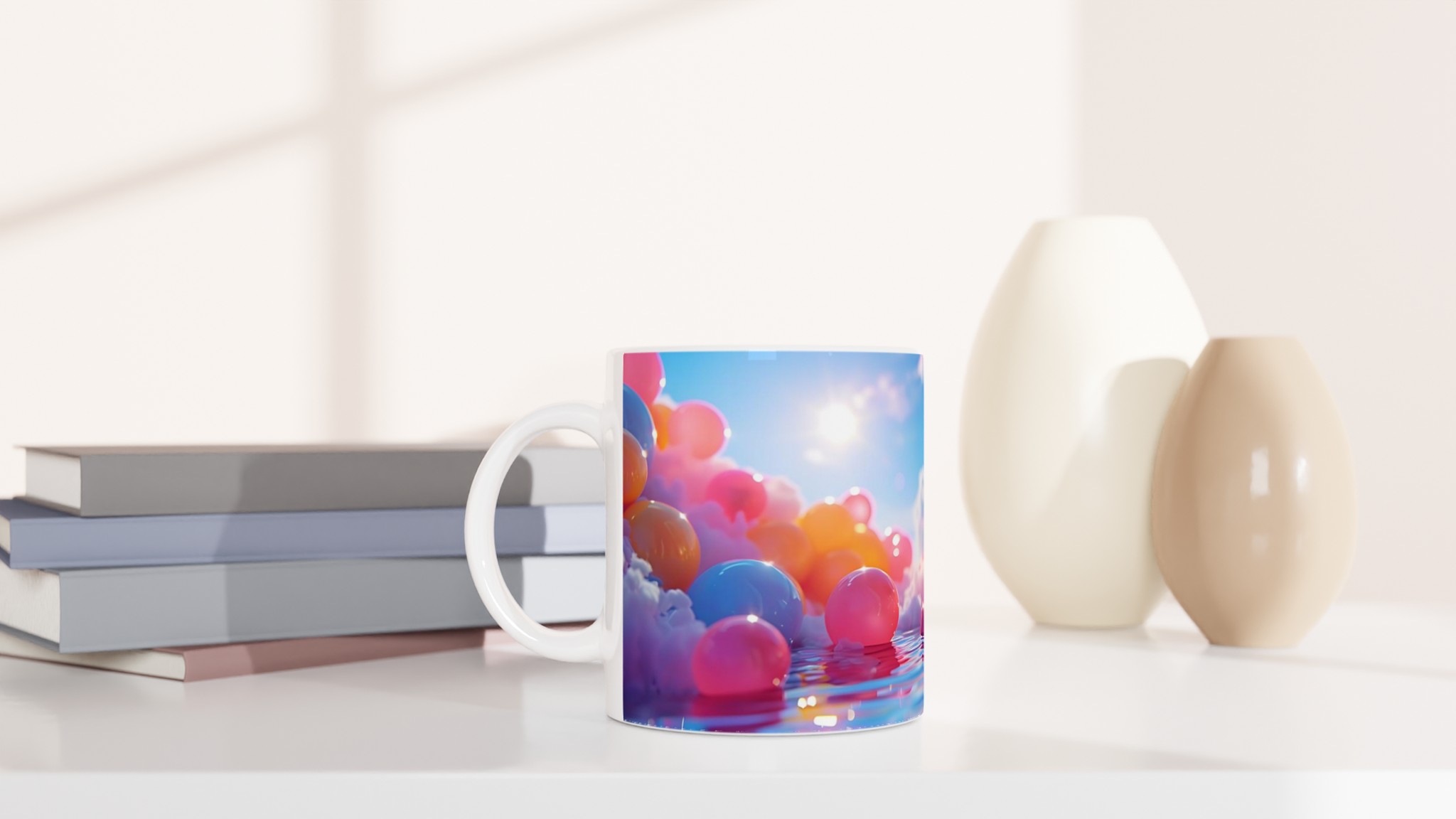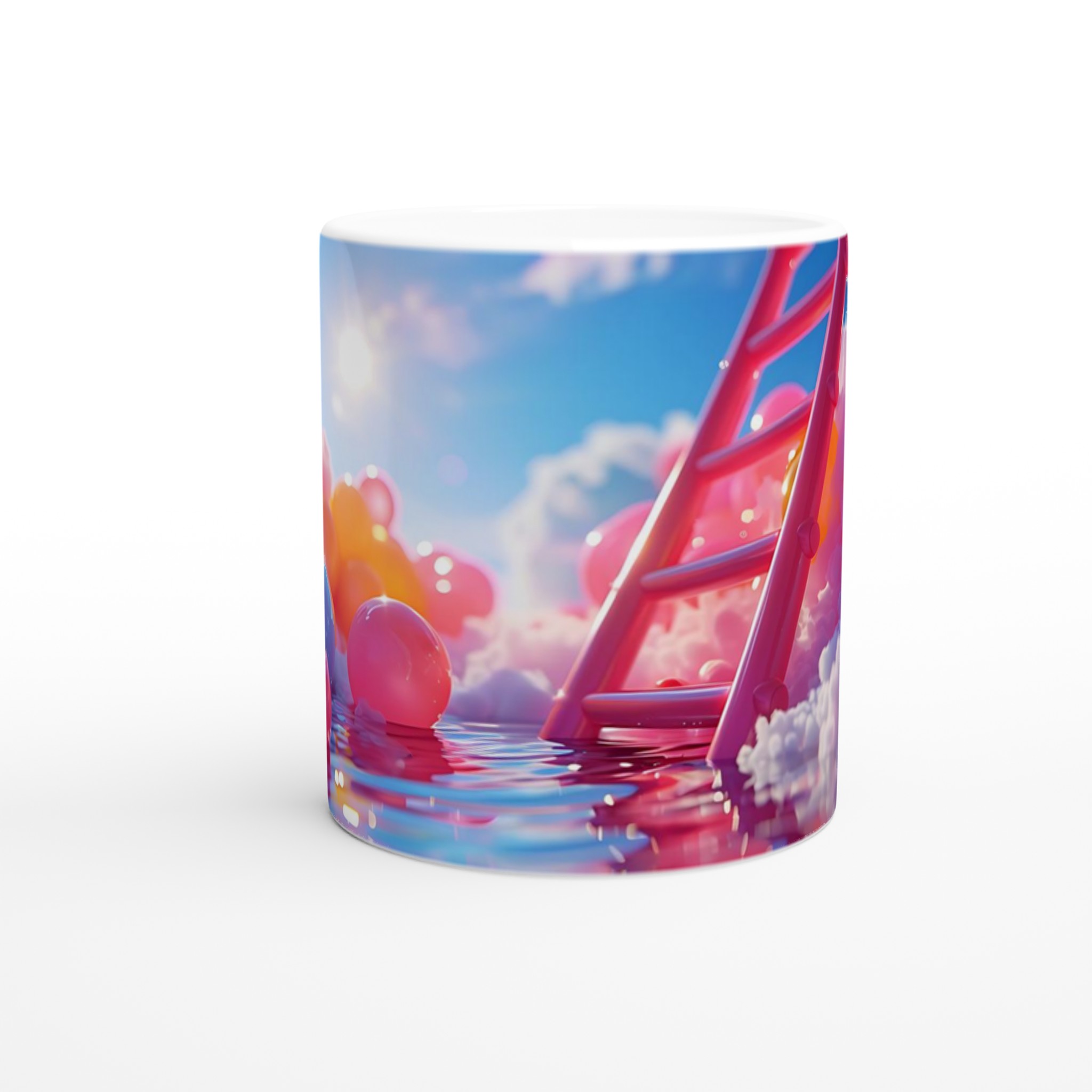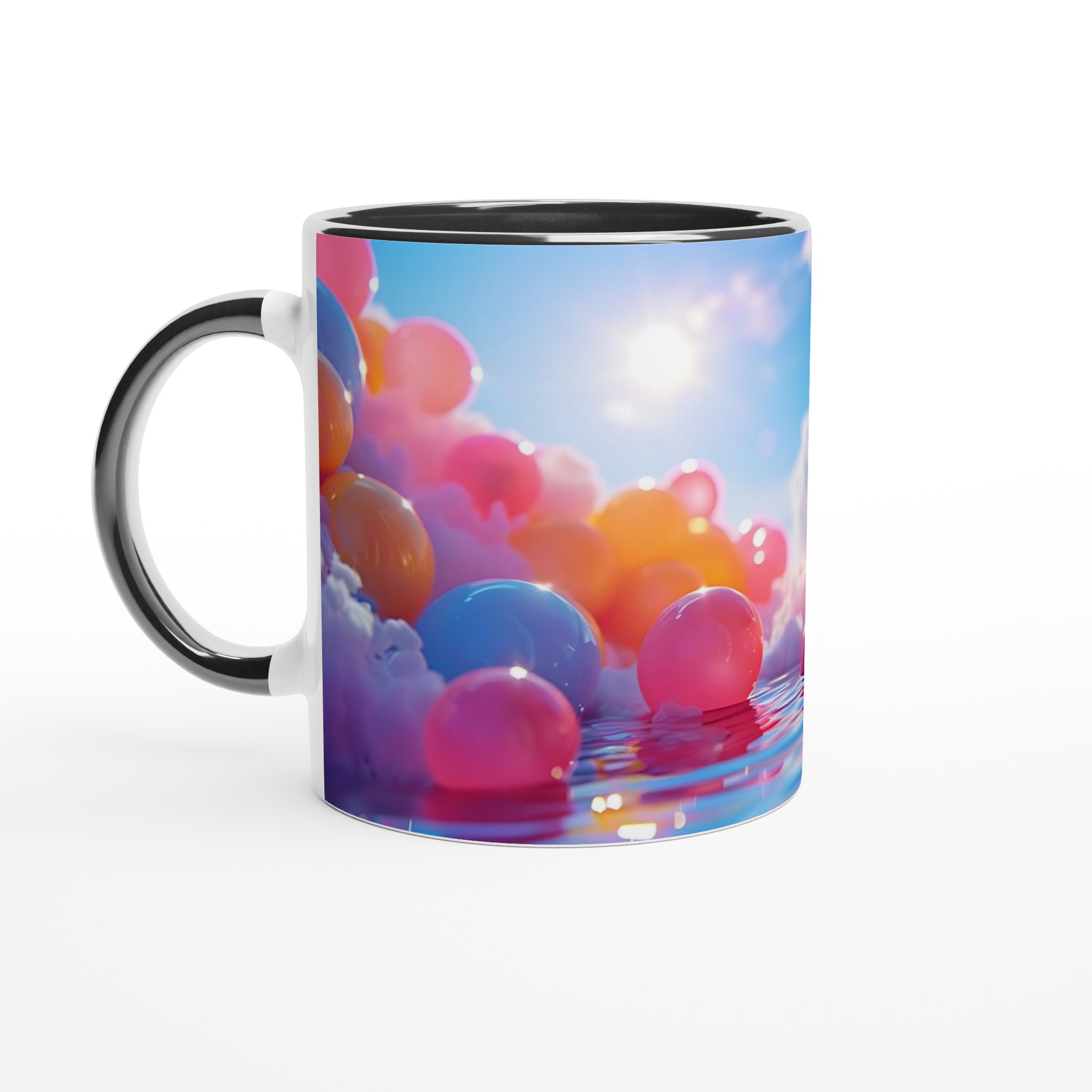 Stig in i en värld av färg och fantasi med vår Färgsprakande Keramiska Mugg, en sann vardagsfavorit som förvandlar varje sipp till en stund av glädje. Inspirerad av drömska scener med mjuka moln, glittrande vatten och en palett av livfulla nyanser, är denna mugg mer än bara en dryckesbehållare – den är ett konstverk. Perfekt för morgonkaffet som väcker sinnena, kvällens varma choklad som värmer själen, eller när du bara vill njuta av en kopp te och låta tankarna vandra.