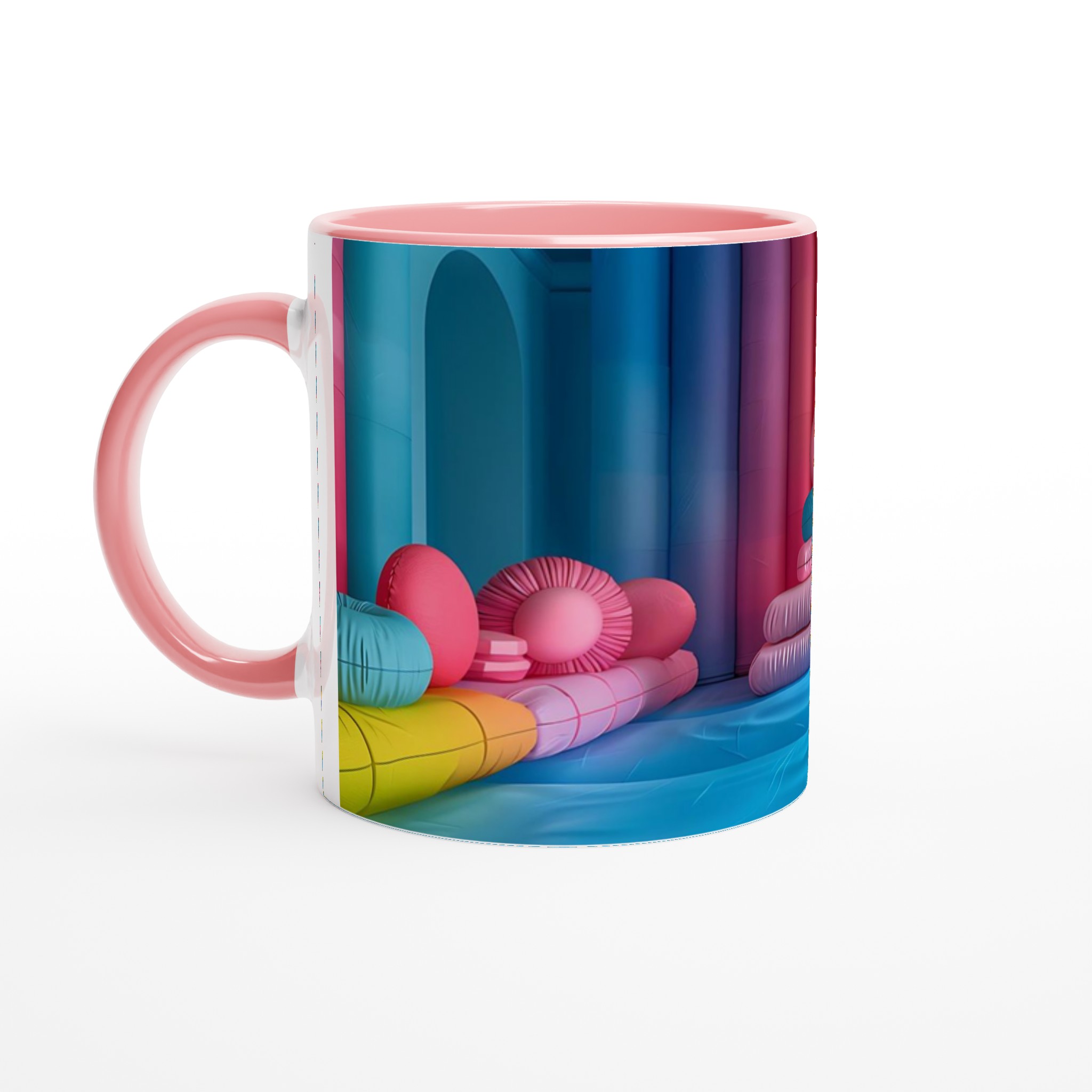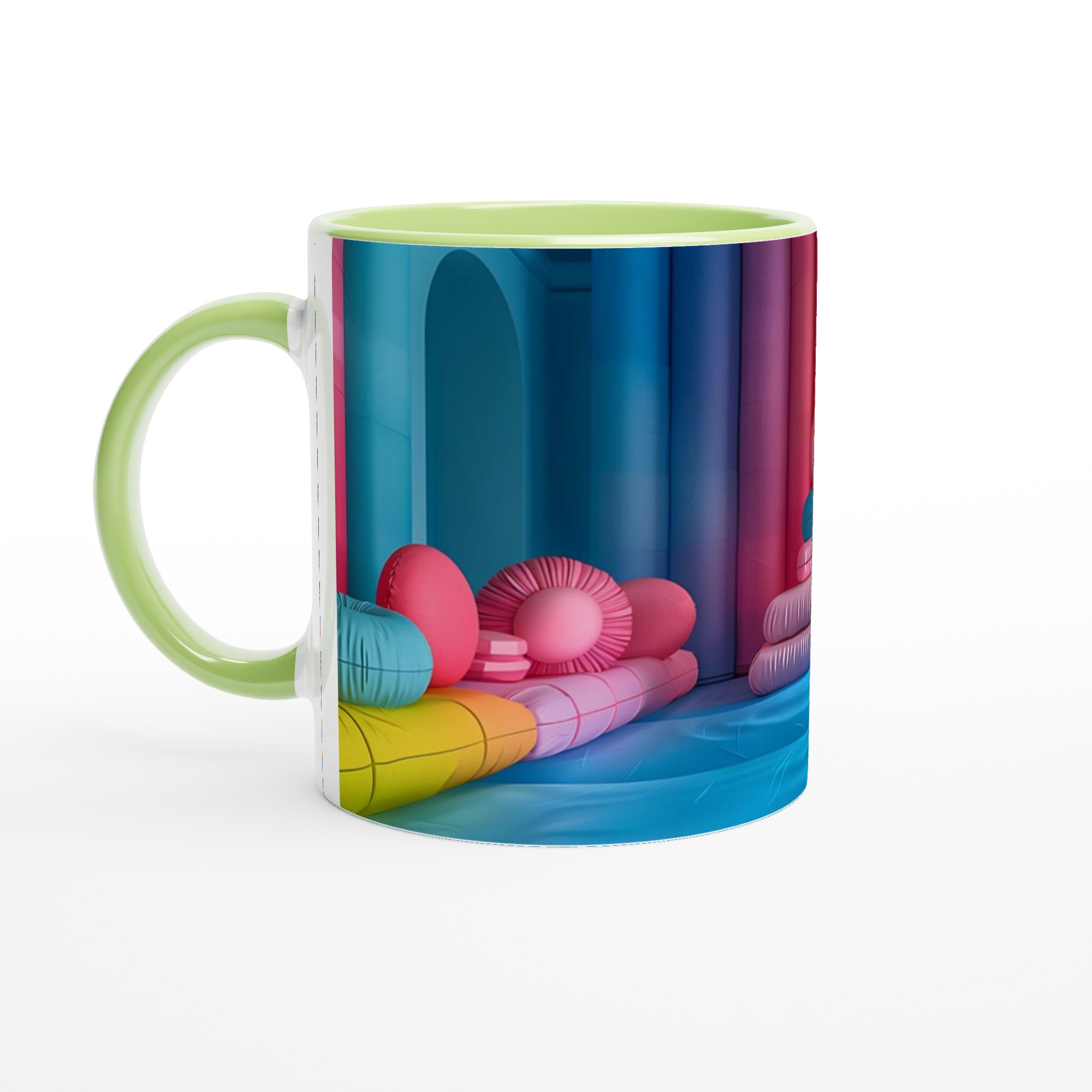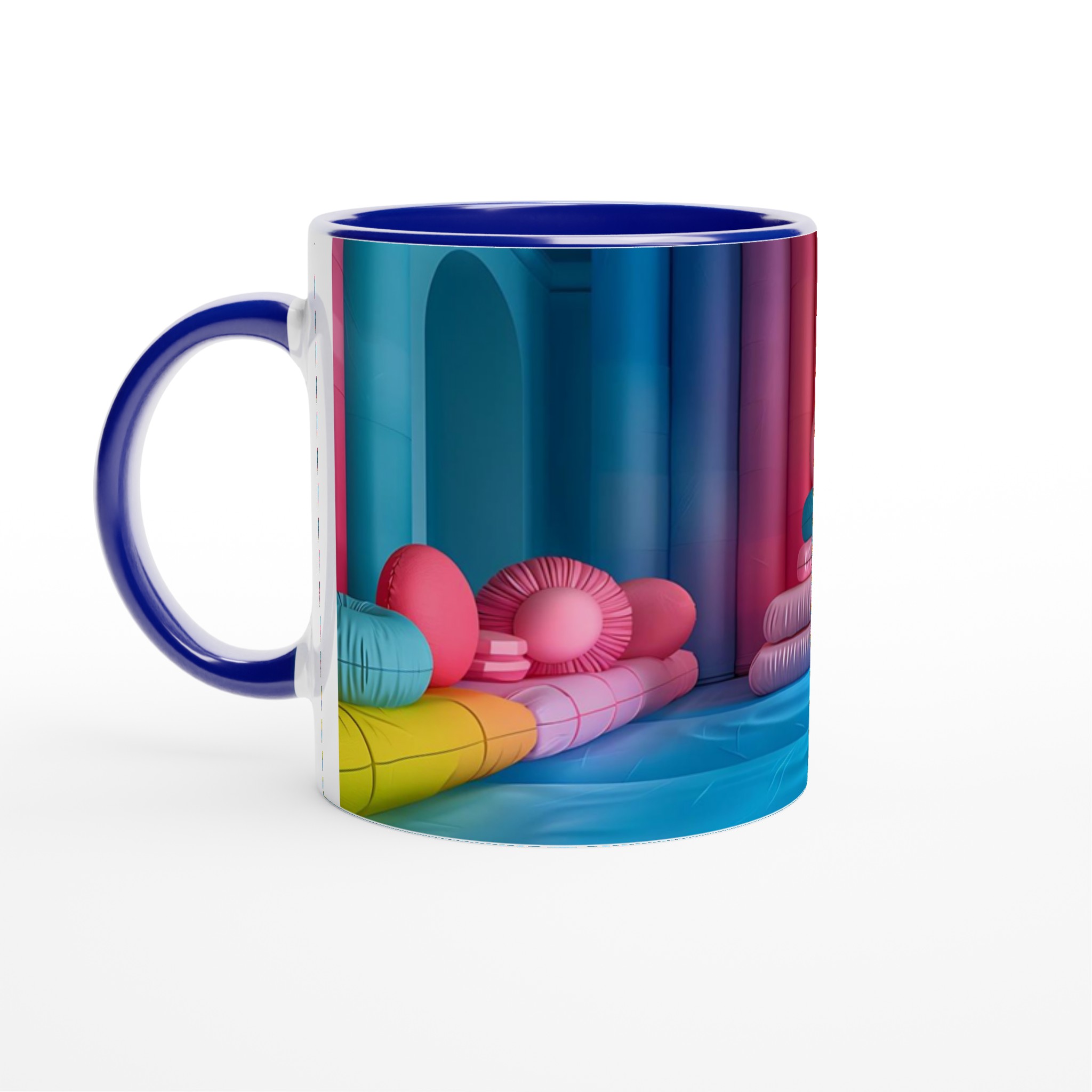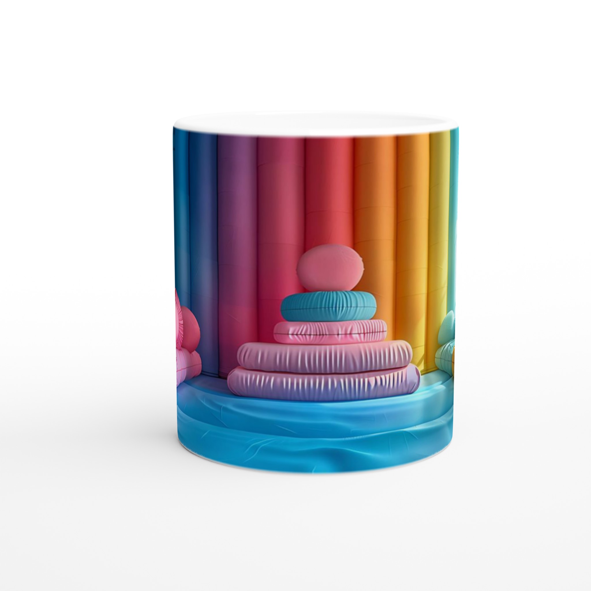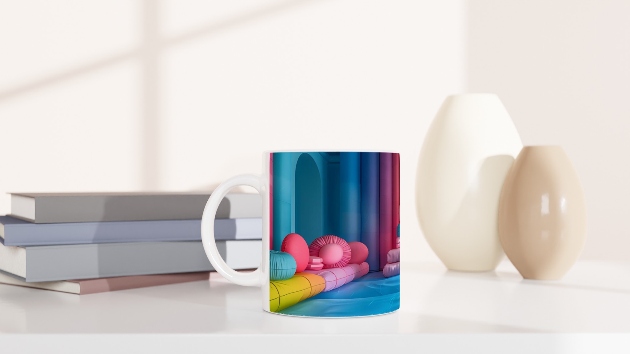 Låt din morgon starta med en explosion av färg! Denna stilrena keramiska mugg blir snabbt en vardagsfavorit och en källa till glädje, inspirerad av den lekfulla och livfulla färgpaletten i bilden. Perfekt för morgonkaffet, kvällens varma choklad eller när du bara vill njuta av en kopp te. Den blanka vita ytan gör att trycken framhävs med klara och levande färger, som håller sig fina även efter många turer i mikron och diskmaskinen.