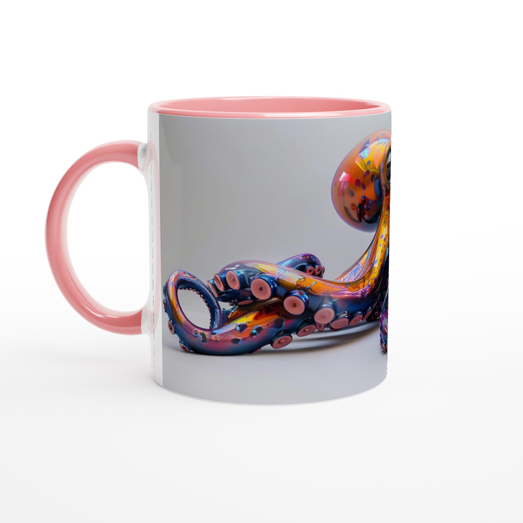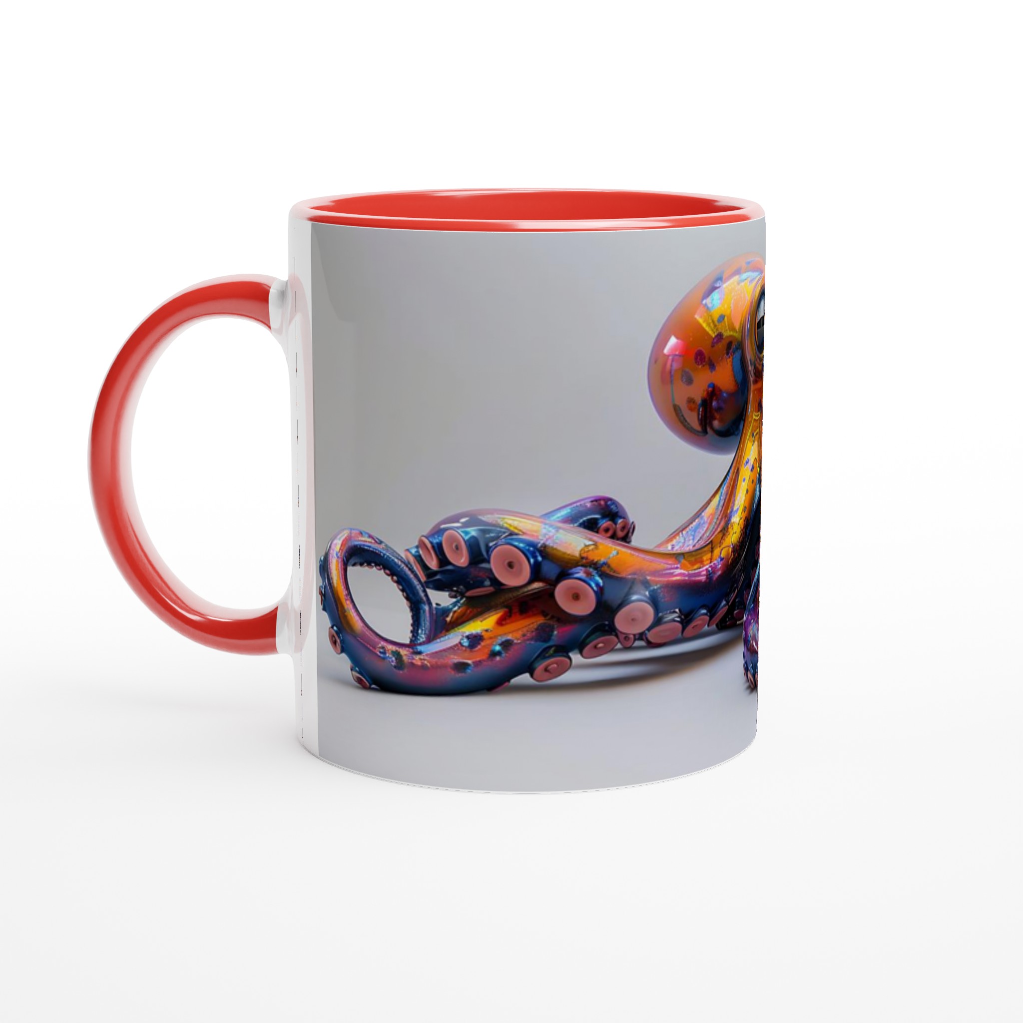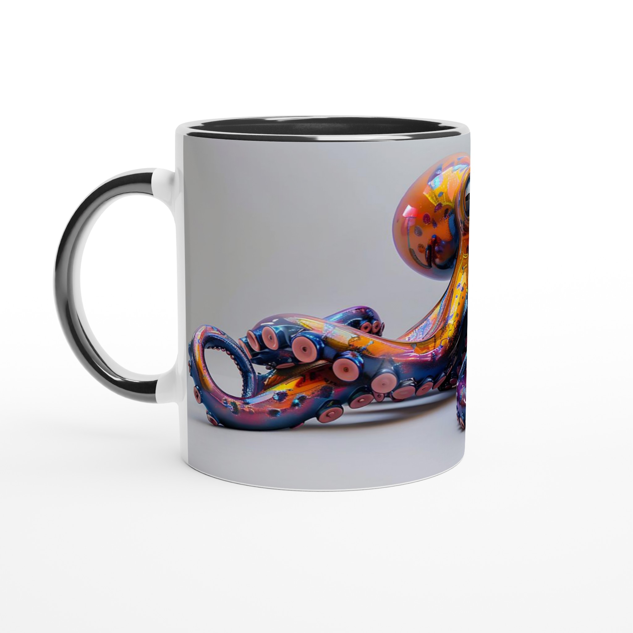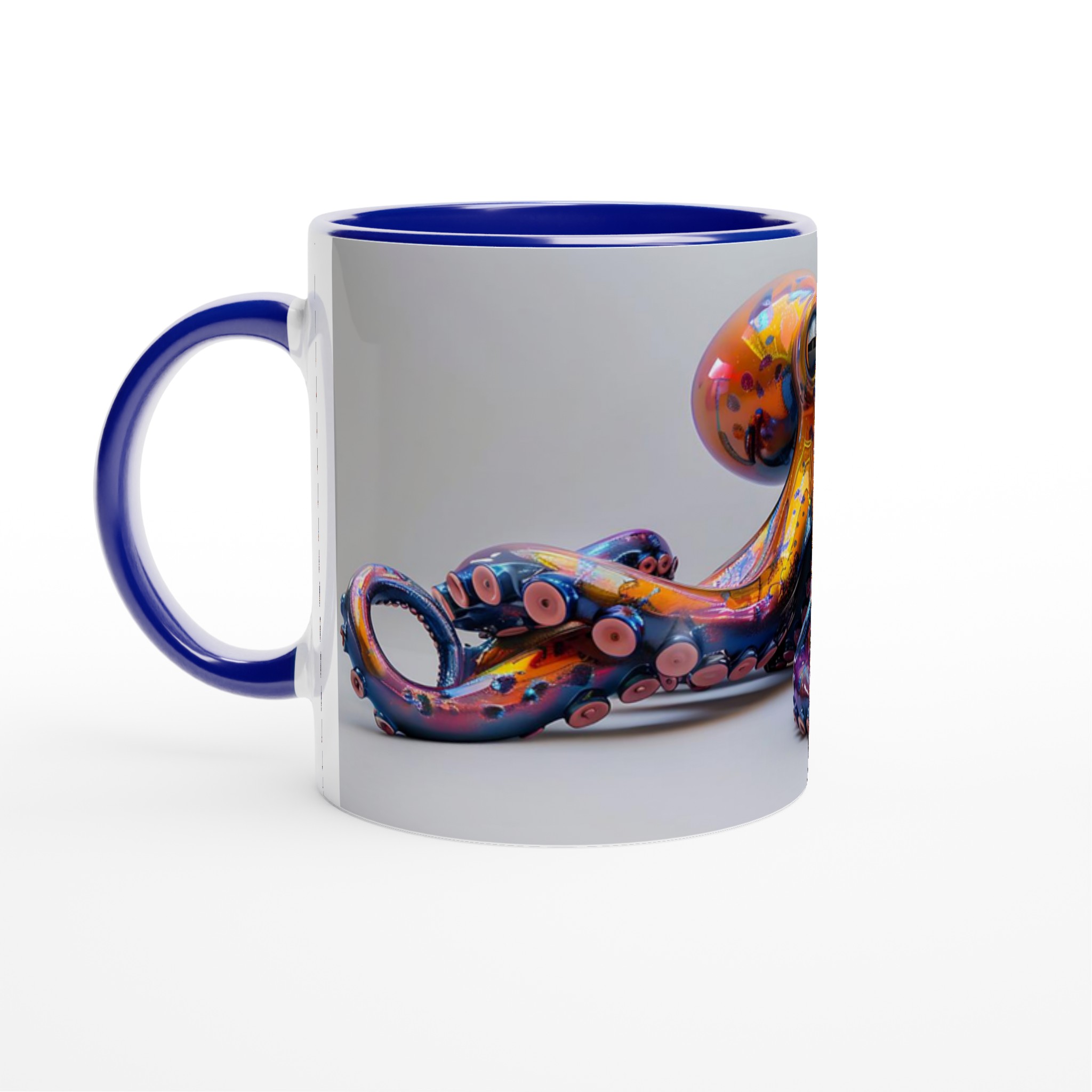 Låt fantasin flöda med denna fascinerande keramiska mugg, inspirerad av djuphavets mystik och glittrande liv. Dess unika, skimrande design med en blandning av blått, lila och orange ger en känsla av att hålla ett konstverk i handen. Perfekt för morgonkaffet, kvällens varma choklad eller när du bara vill njuta av en kopp te och drömma dig bort till undervattensvärlden. Den blanka ytan får de djärva färgerna att framhävas med en otrolig lyster, som håller sig fin även efter många turer i mikron och diskmaskinen.
