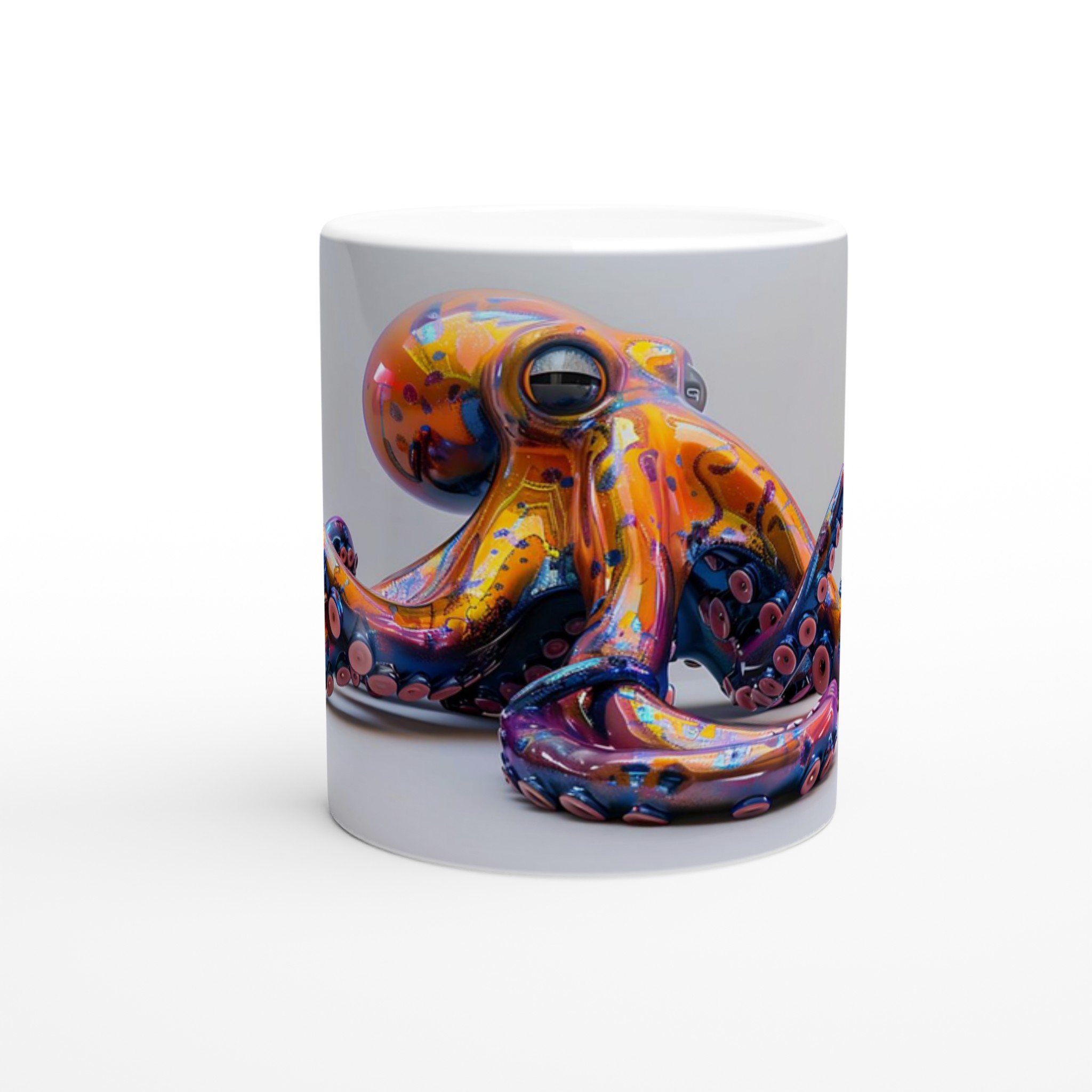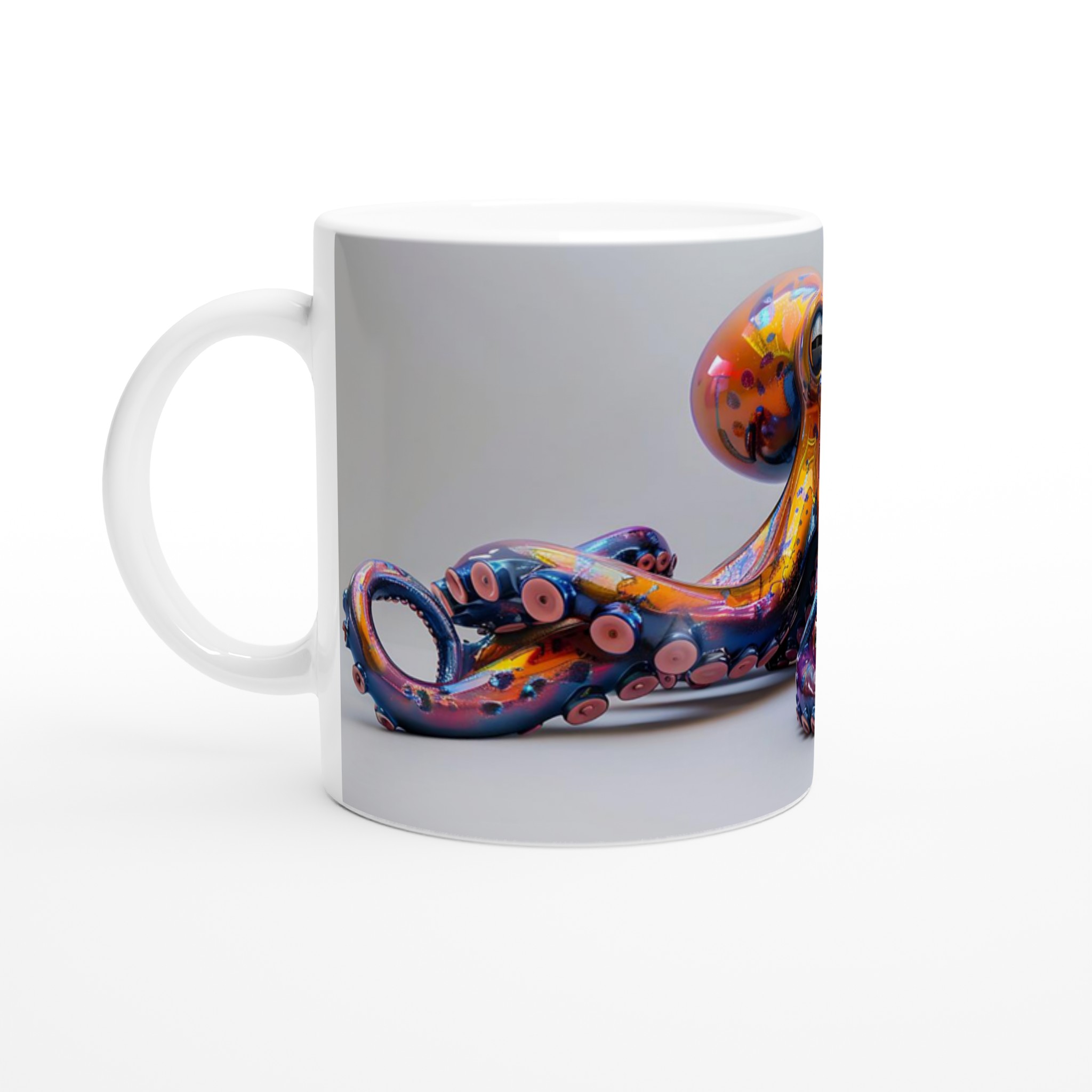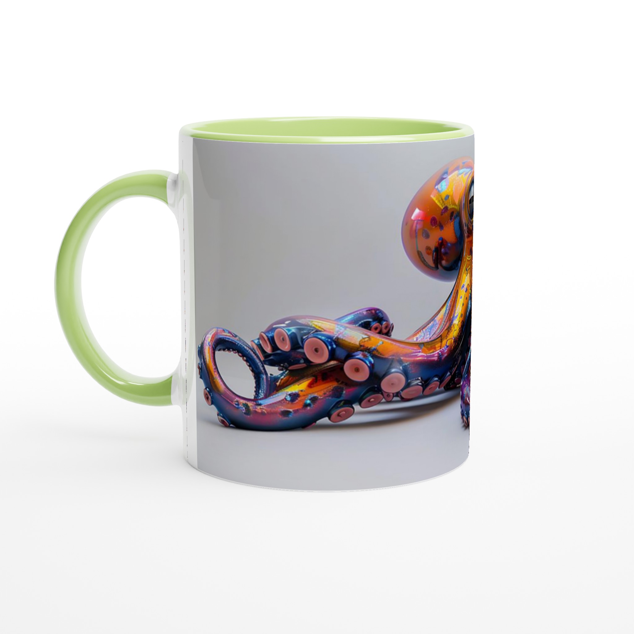 Låt fantasin flöda med denna fascinerande keramiska mugg, inspirerad av djuphavets mystik och glittrande liv. Dess unika, skimrande design med en blandning av blått, lila och orange ger en känsla av att hålla ett konstverk i handen. Perfekt för morgonkaffet, kvällens varma choklad eller när du bara vill njuta av en kopp te och drömma dig bort till undervattensvärlden. Den blanka ytan får de djärva färgerna att framhävas med en otrolig lyster, som håller sig fin även efter många turer i mikron och diskmaskinen.