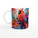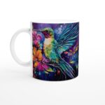 Låt dig förtrollas av denna konstnärliga keramiska mugg, prydd med en levande kolibri omgiven av färgstarka blommor i en akvarellinspirerad stil. De rika blå, lila och rosa tonerna i bakgrunden framhäver kolibrins skimrande fjäderdräkt i grönt, orange och gult, vilket gör varje klunk till en visuell njutning. Denna mugg är mer än bara en kopp – den är ett litet konstverk som lyser upp din dag, perfekt för morgonkaffet, eftermiddagsteet eller kvällens avkopplande varm choklad.