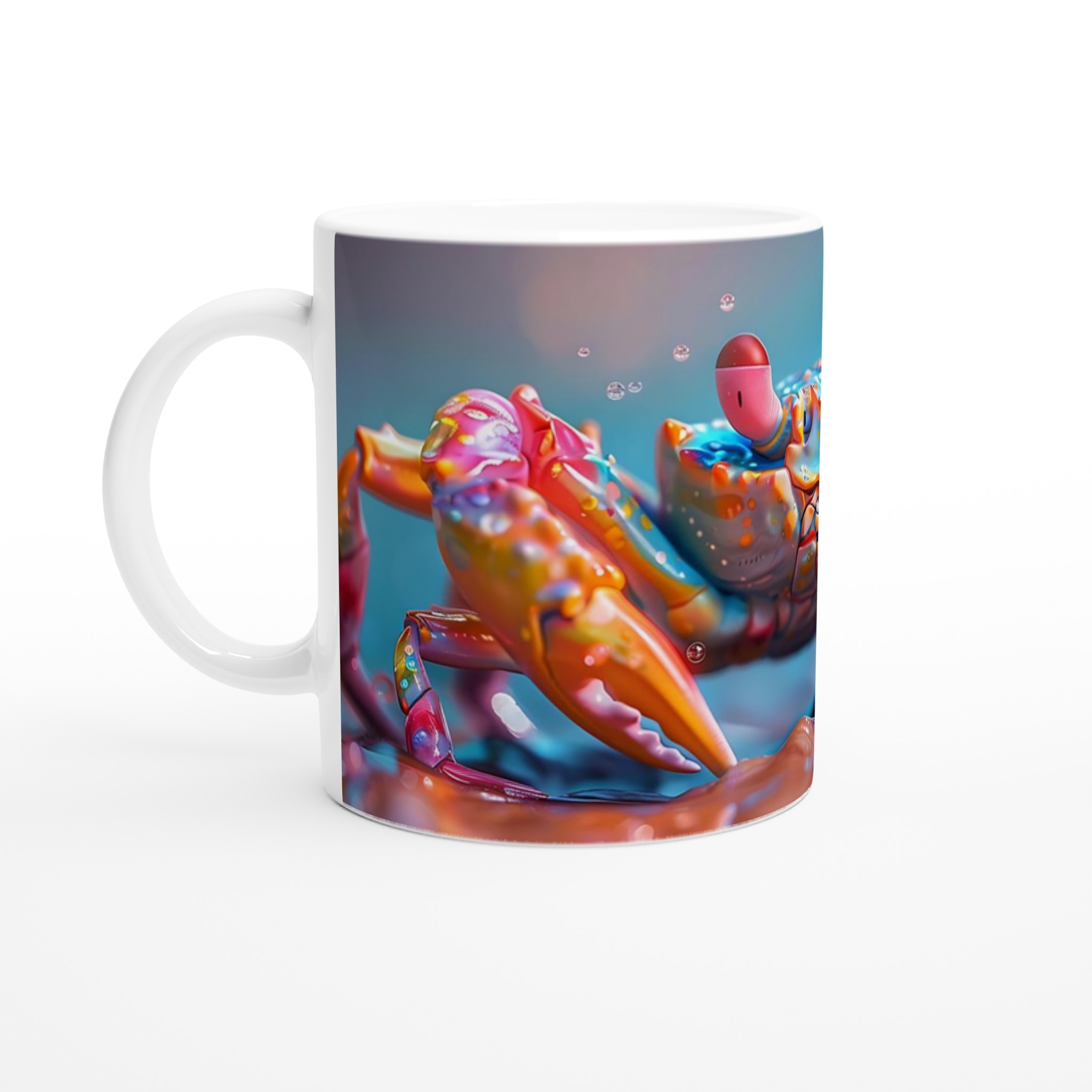 Inspirerad av havets lekfulla färger och den livliga krabbans unika charm, är denna mugg mer än bara en dryckesbehållare. Den blanka ytan ger ett skarpt och levande tryck som verkligen sticker ut, oavsett om det är en personlig design, ett roligt citat eller en present till någon du tycker om. Varje klunk blir en upplevelse, omsluten av en design som väcker glädje.