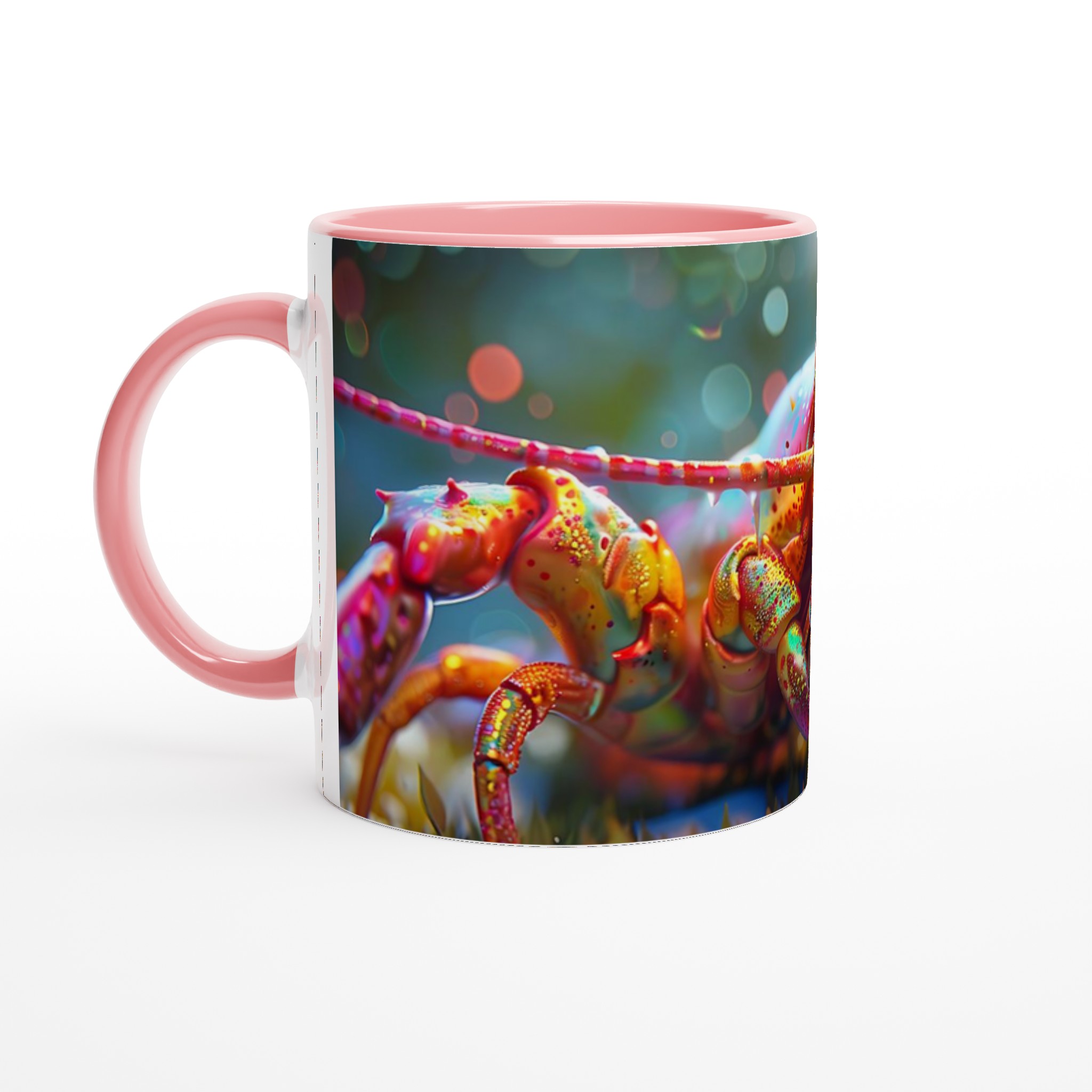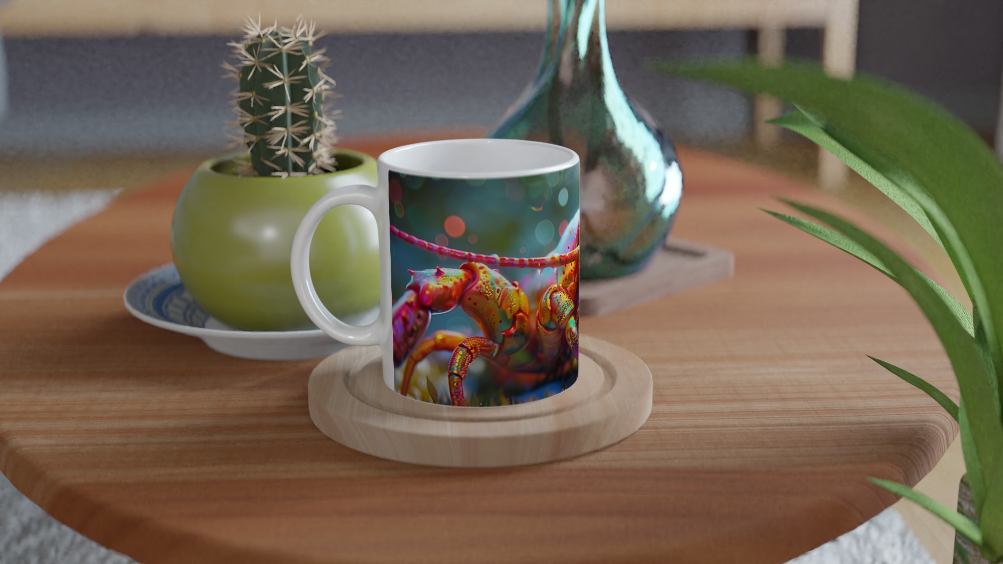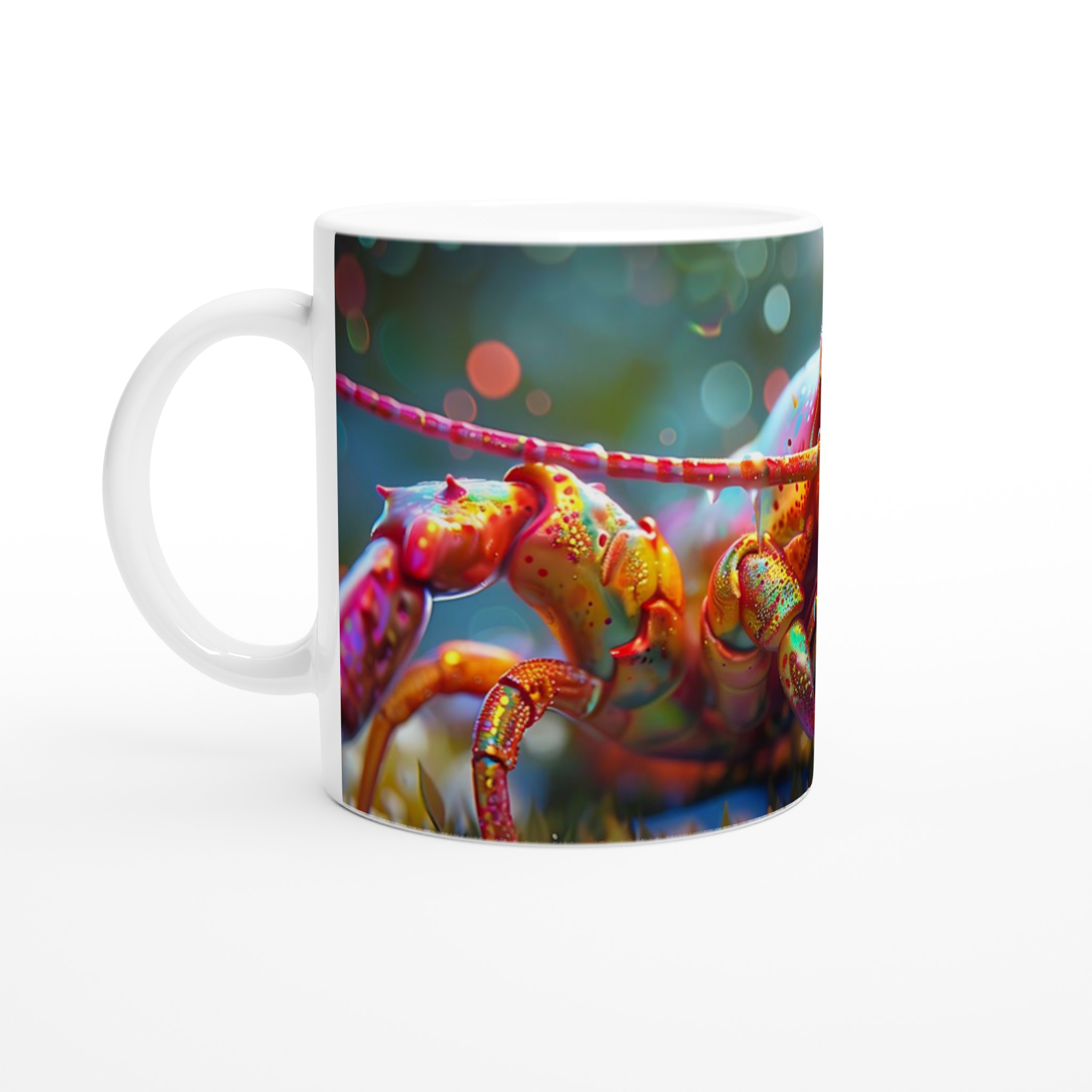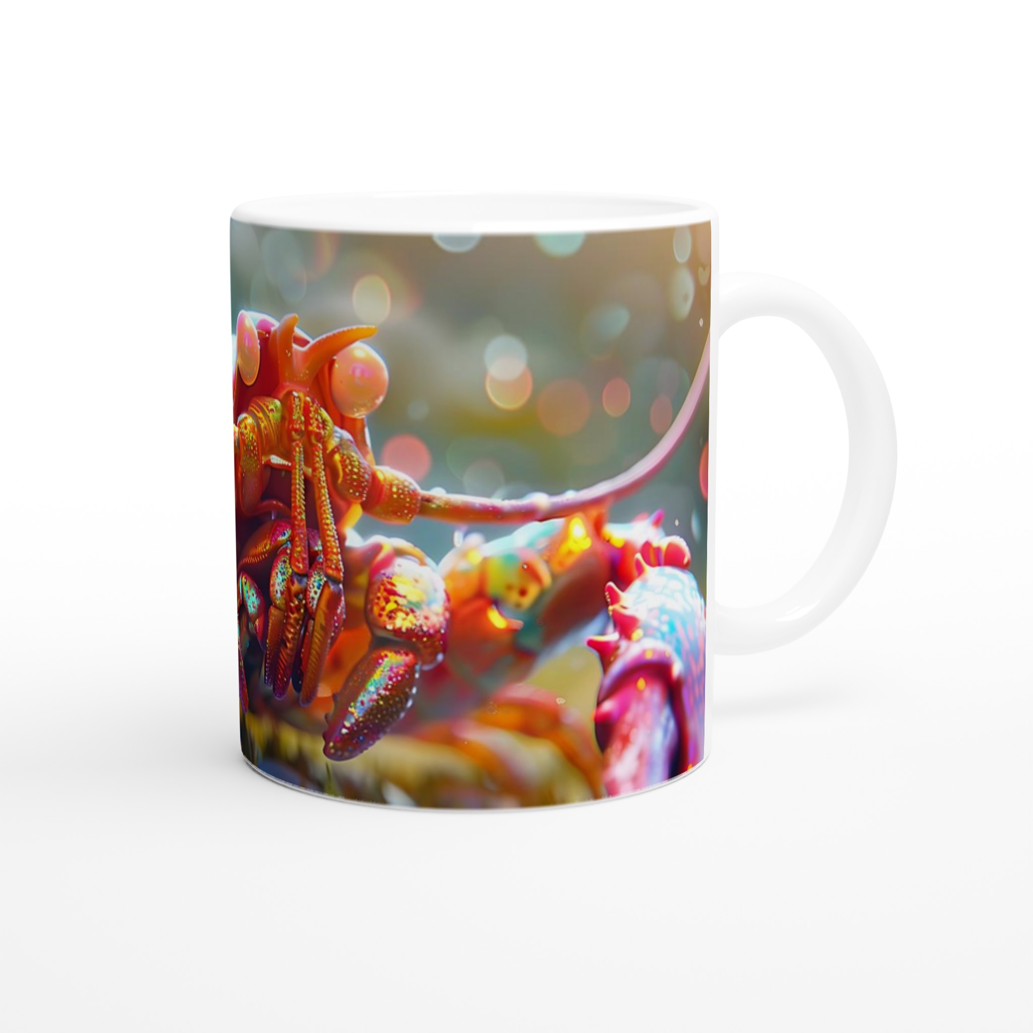 Lyft din fikapaus med denna iögonfallande keramiska mugg, som fångar den livfulla energin från en färgsprakande krabba. Med en palett av intensivt rosa, gult och orange mot en drömsk bokehbakgrund, är denna mugg mer än bara en kopp – den är ett konstverk. Den blanka vita ytan ser till att trycken framhävs med klara och levande färger, som håller sig fina även efter många turer i mikron och diskmaskinen, vilket gör den perfekt för morgonkaffet, kvällens varma choklad eller när du bara vill njuta av en kopp te.