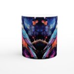 Låt dig förtrollas av denna exceptionella keramikmugg, prydd med en konstnärlig och färgsprakande kungsfågel mot en bakgrund av levande blå, lila och rosa stänk. Varje sip blir en upplevelse, med fågelns majestätiska blå fjäderdräkt och de varma, orangea tonerna som kontrasterar mot den drömska, akvarell-inspirerade bakgrunden. Det är den perfekta muggen för att förgylla dina morgnar, ge en färgkick till din te-stund eller värma dig med en lyxig varm choklad.