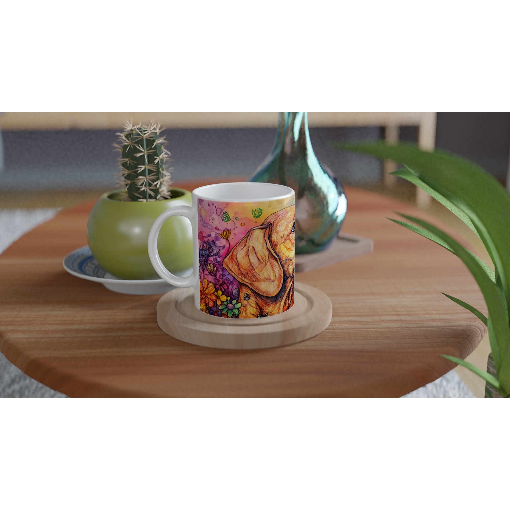Muggen rymmer 11 oz (ca 3,25 dl), en idealisk storlek för både hem och kontor. Den är en perfekt personlig detalj i vardagen eller en hjärtlig present till en vän, familjemedlem eller kollega som uppskattar konst och djur. Ge bort en bit glädje som värmer både kropp och själ!