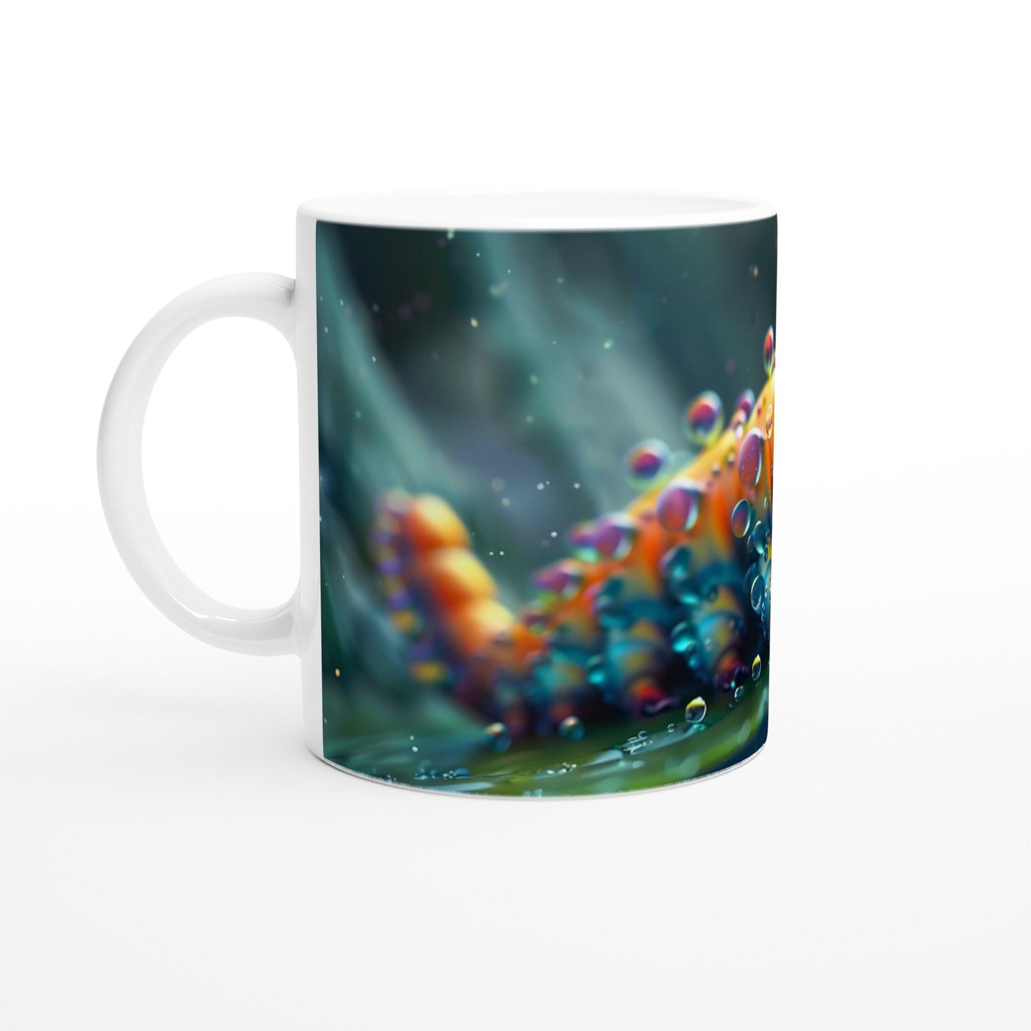 Inspirerad av fantasin, pryds denna mugg av en livfull, bubblande larv som fångar ögat med sina glänsande färger och lekfulla charm. Den blanka vita ytan ger ett skarpt och levande tryck som verkligen sticker ut, oavsett om det är en personlig design, ett roligt citat eller en present till någon du tycker om.