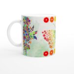 Väck dina sinnen varje dag med vår färgsprakande Regnbågsdröm Keramiska Mugg. Denna mugg är inte bara en vardagsfavorit; den är en hyllning till glädje och livfulla färger, inspirerad av fantasifulla regnbågar, fjärilar och solkyssta blommor. Perfekt för morgonkaffet, kvällens varma choklad eller när du bara vill njuta av en kopp te och låta dig svepas med i en värld av pastellglädje. Den blanka vita ytan gör att trycken framhävs med klara och levande färger, som håller sig fina även efter många turer i mikron och diskmaskinen.