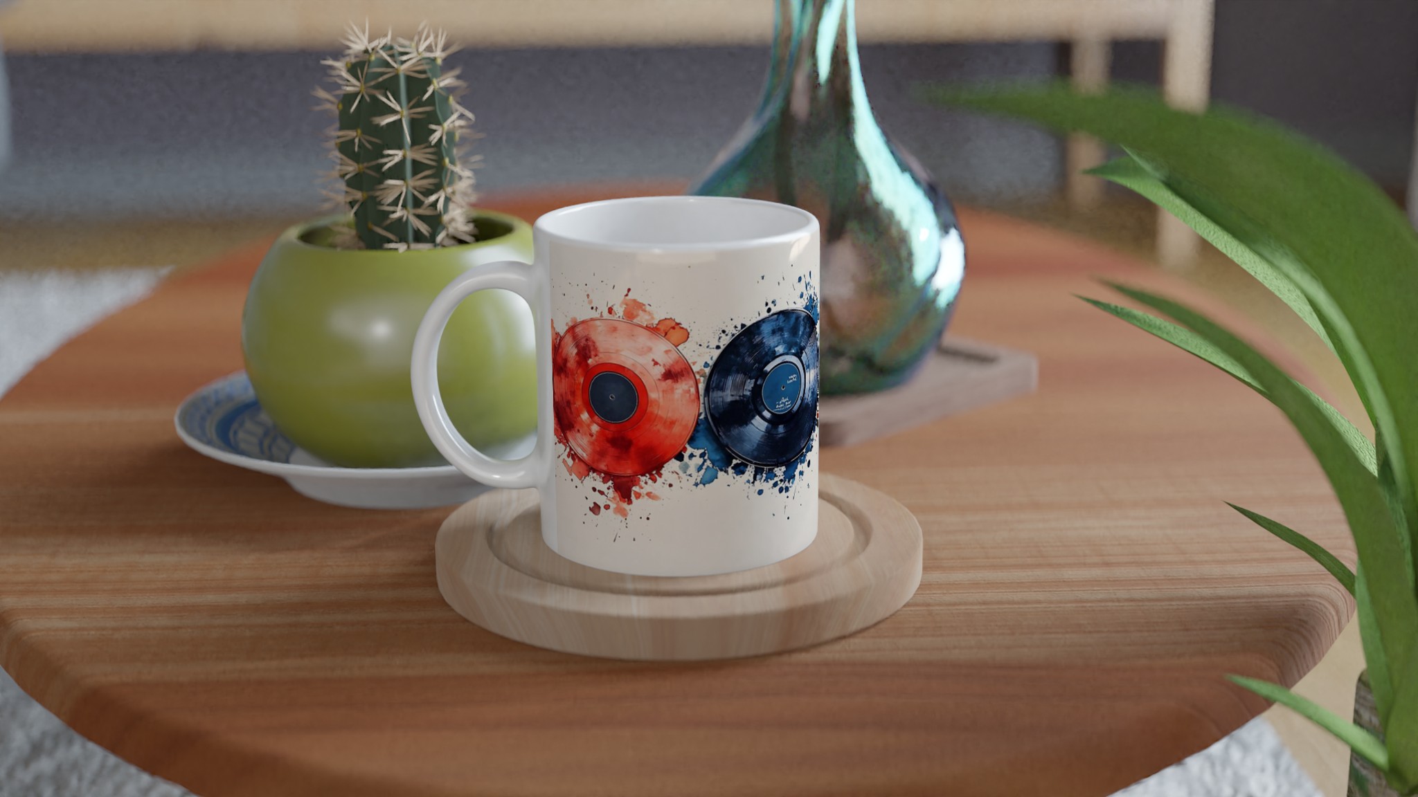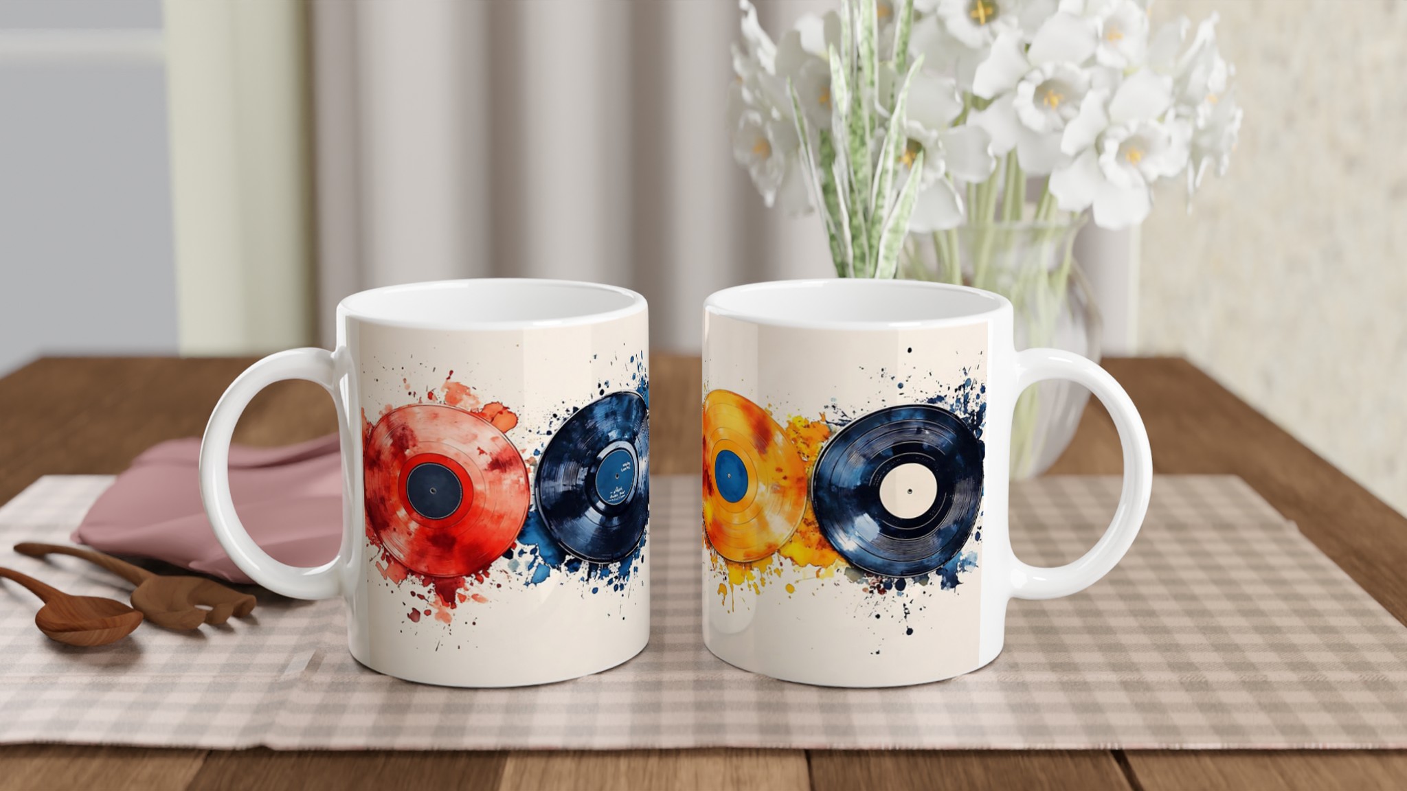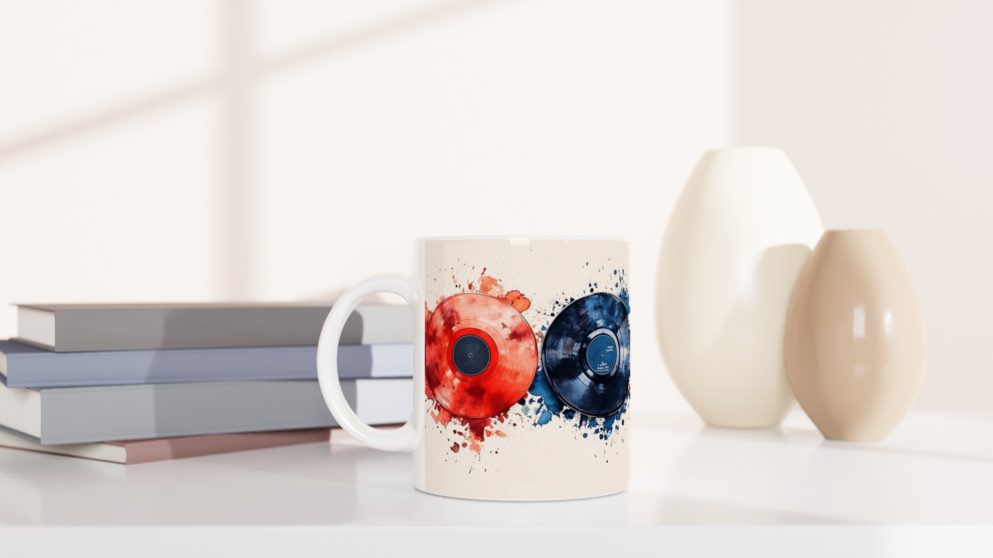 Inspirerad av den pulserande energin från färgstarka vinylskivor och konstnärliga akvarellstänk, är denna mugg en hyllning till både musikälskare och konstentusiaster. Välj din favoritfärg bland våra dynamiska varianter – från klassisk Ceramic White och djup Ceramic Black till livfulla nyanser som Ceramic Yellow, Pink, Green, Red och Blue – och låt din personlighet stråla. Denna mugg är inte bara en dryckesbehållare, utan ett konstverk för din vardag.