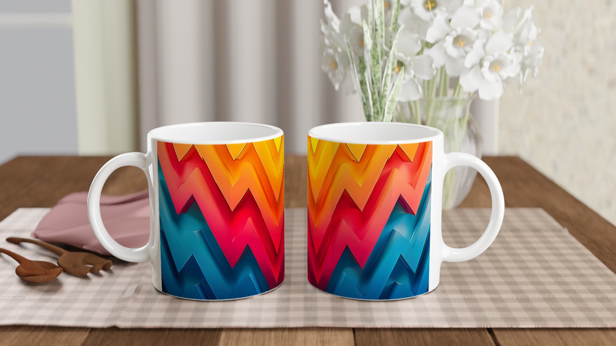 Denna stilrena och vackra keramikmugg är perfekt för alla dagens stunder – morgonkaffet, en värmande kopp te eller en härlig varm choklad. Den blanka vita ytan gör att trycken framträder klart och färgstarkt, vilket gör muggen till en riktig favorit i vardagen. Tack vare den höga kvaliteten behåller trycket sin lyster även efter många omgångar i både mikrovågsugn och diskmaskin.