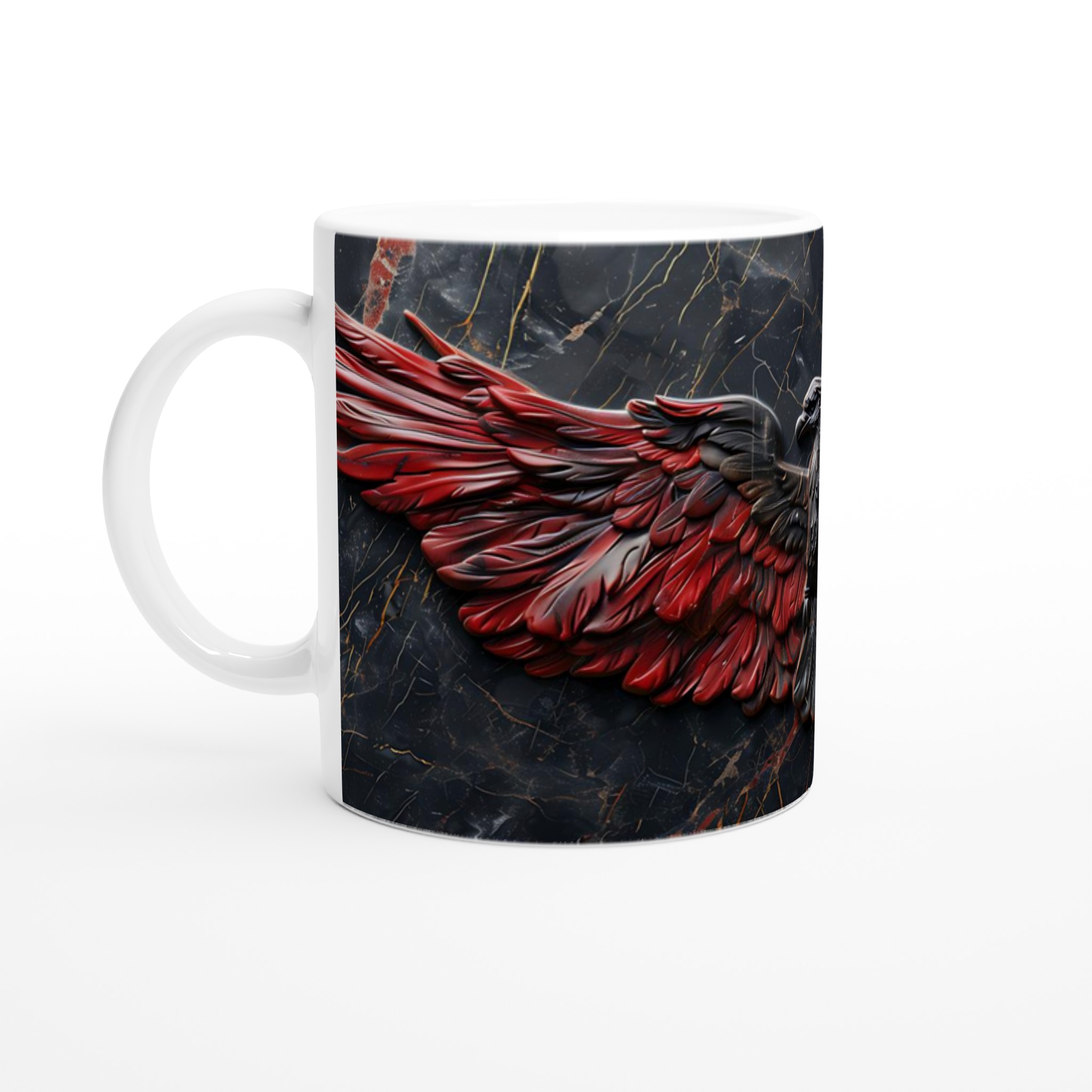 Inspirerad av den majestätiska fenixfågeln och djupt gotisk estetik, presenterar denna mugg ett unikt konstverk i dramatiska röda och svarta toner mot en elegant marmorbakgrund. Varje detalj är utformad för att ge ett skarpt och levande tryck som verkligen sticker ut, perfekt för den som uppskattar både konst och funktionalitet.