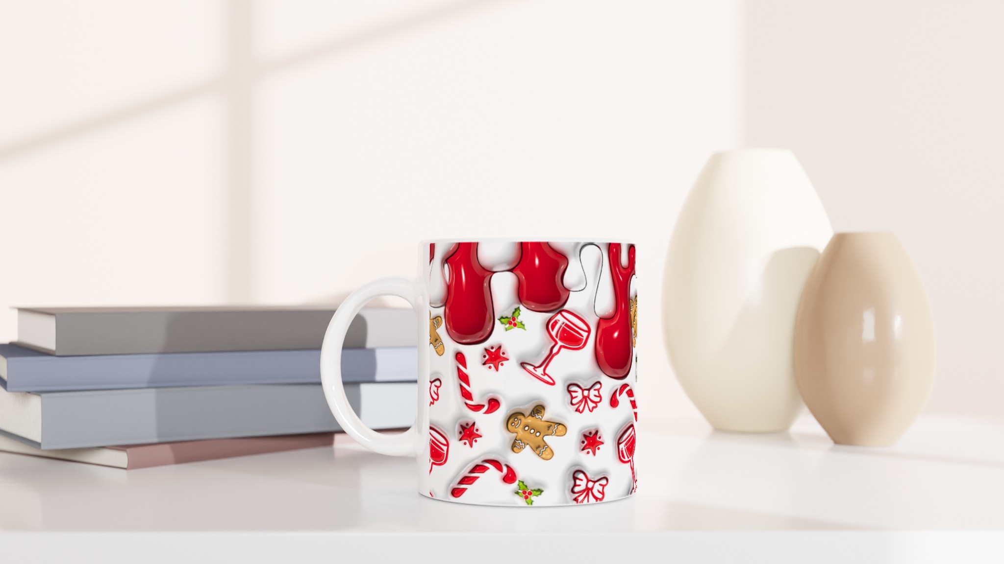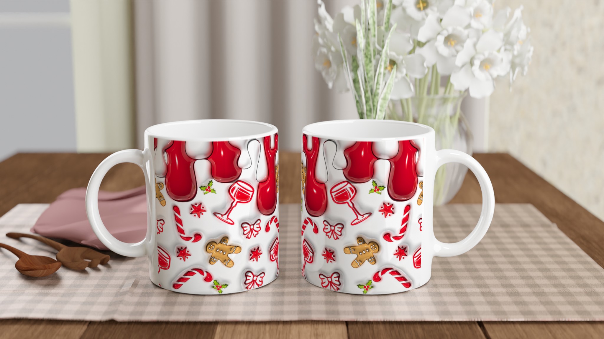 Fånga den magiska julkänslan med vår festliga keramiska mugg! Denna charmiga mugg blir snabbt en favorit under hela högtiden. Perfekt för morgonkaffet med julkrydda, kvällens varma choklad vid brasan, eller när du bara vill njuta av en kopp te medan snön faller utanför. Den glansiga vita ytan framhäver de juliga trycken med klara och levande färger – tänk dig glada pepparkaksgubbar, slingrande polkagrisar och festliga rödvinsglas som håller sig fina även efter många turer i mikron och diskmaskinen.