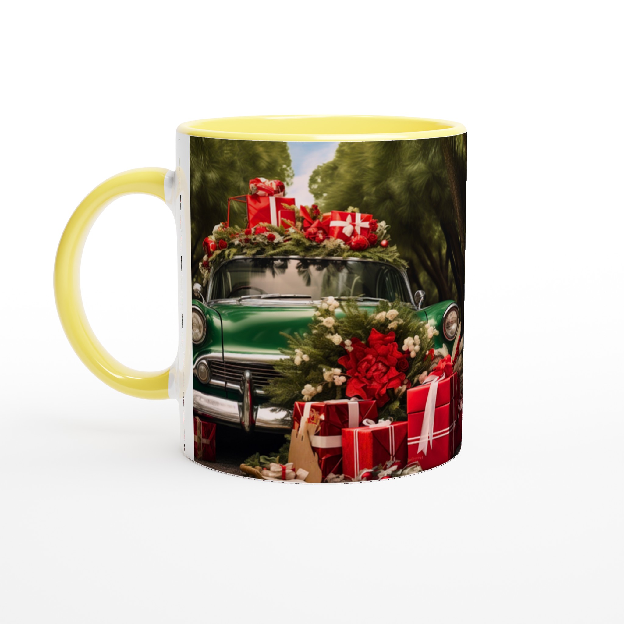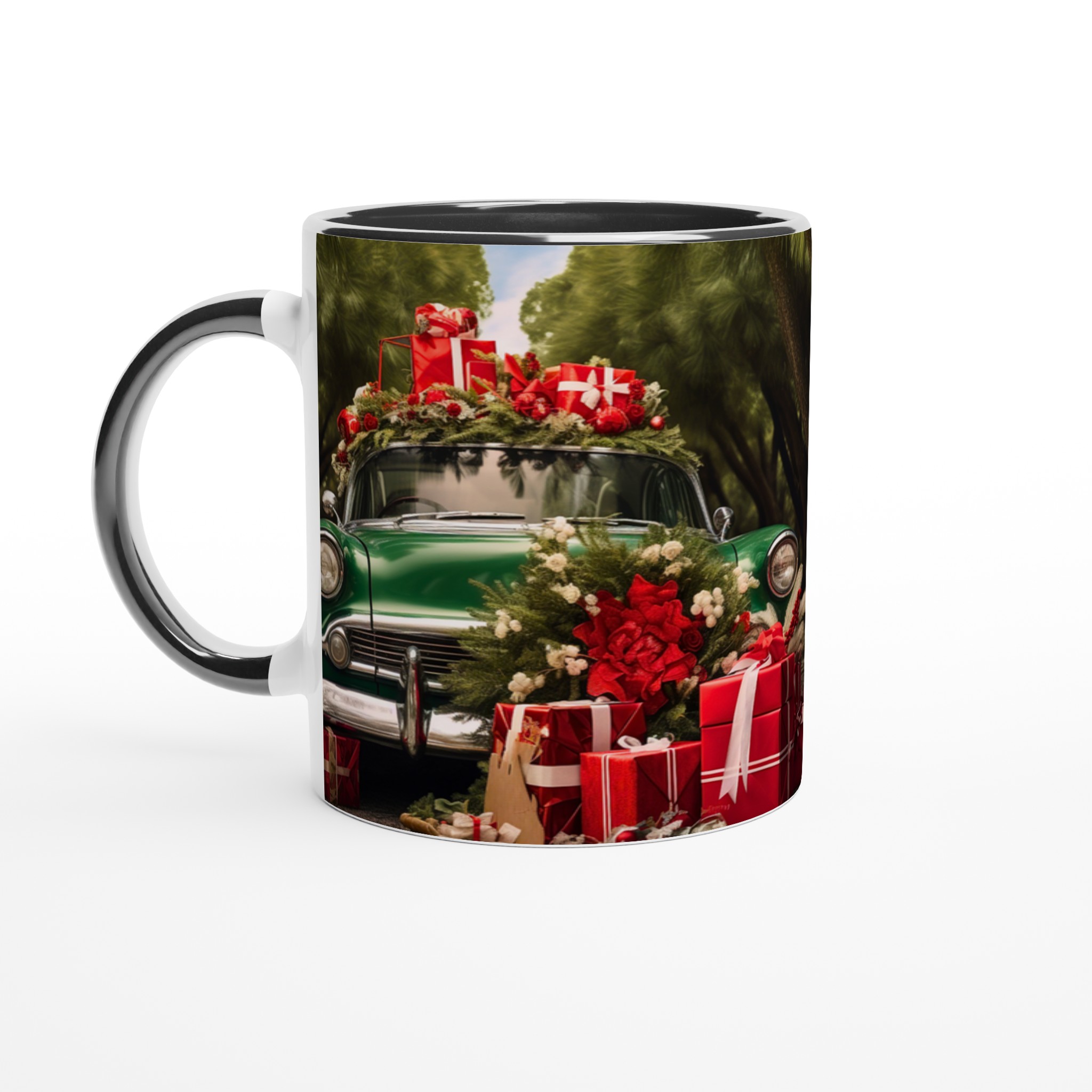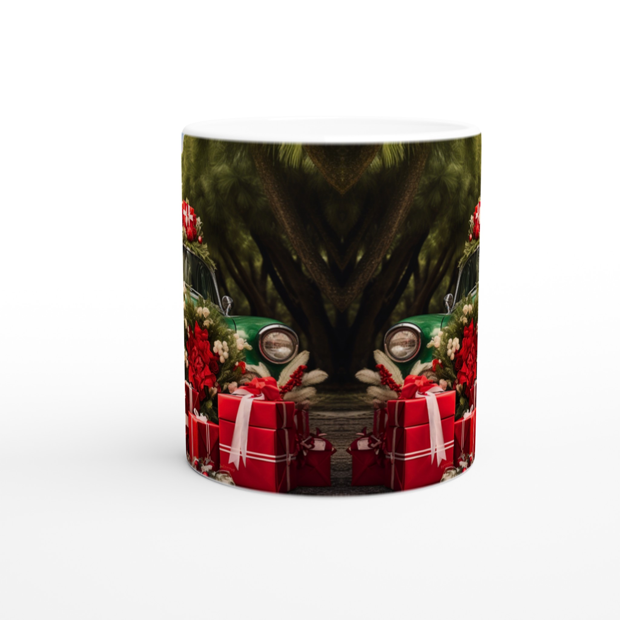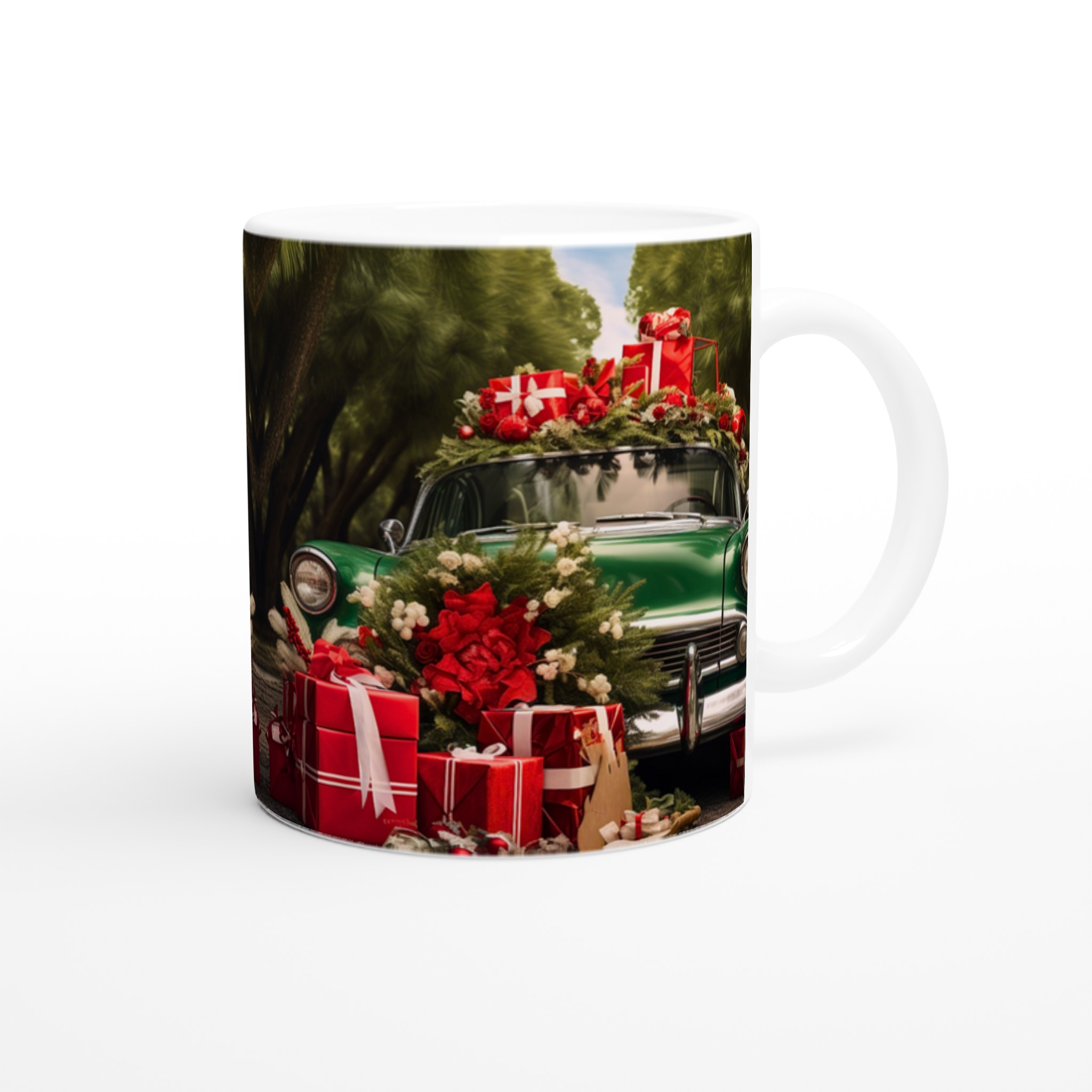 Sätt guldkant på julen med denna festliga keramiska mugg, perfekt för att sprida värme och glädje under den kalla årstiden. Denna mugg fångar den nostalgiska charmen av en grön vintagebil lastad med julklappar och grönskande dekorationer, omsluten av en lummig skog. En perfekt stämningshöjare för ditt morgonkaffe, kvällens varma choklad eller när du bara vill njuta av en kopp te i sann julanda.