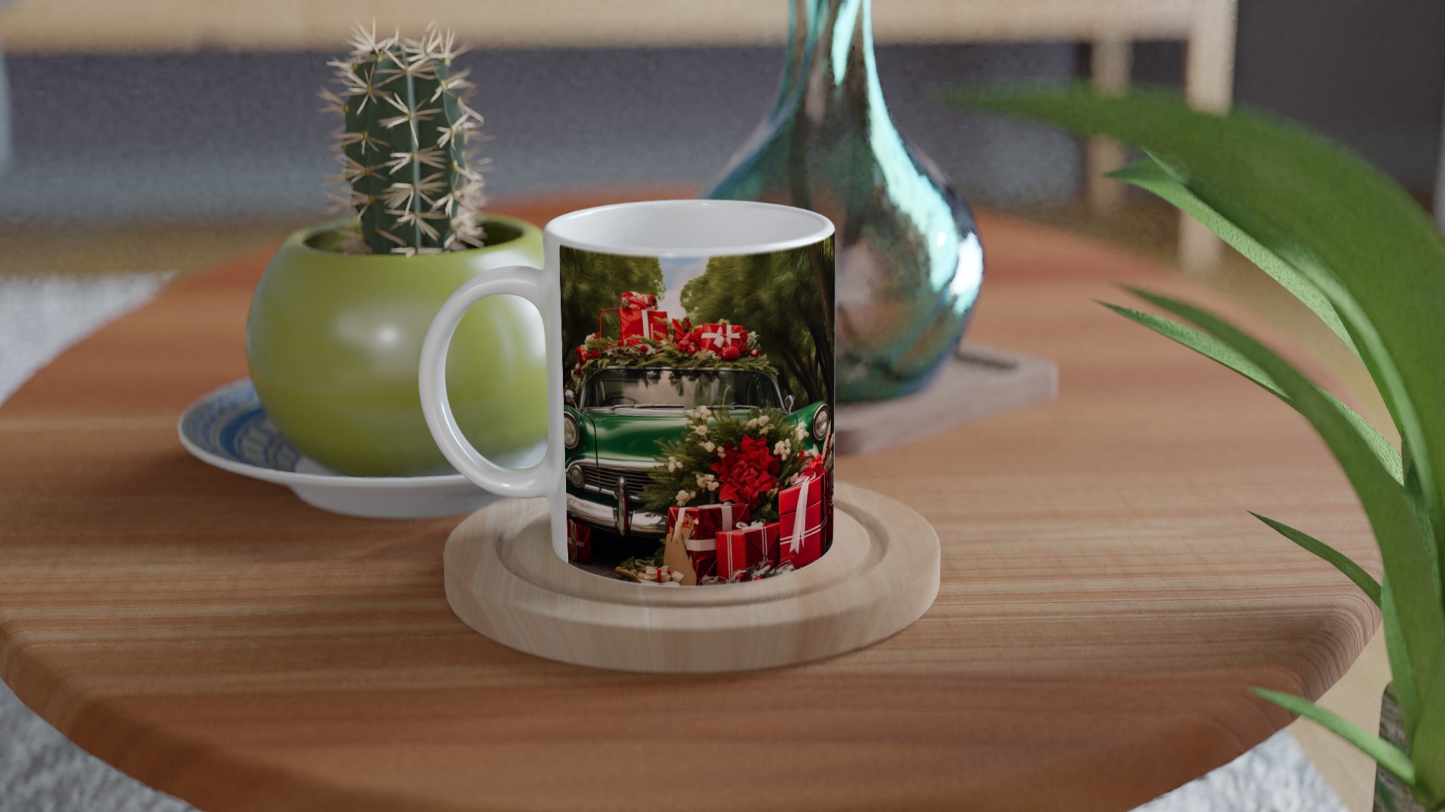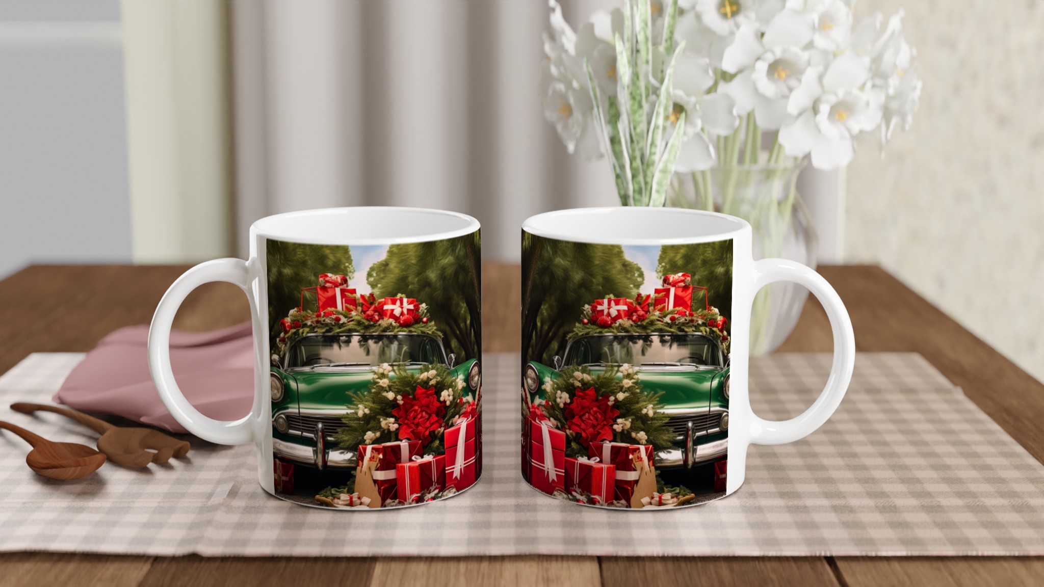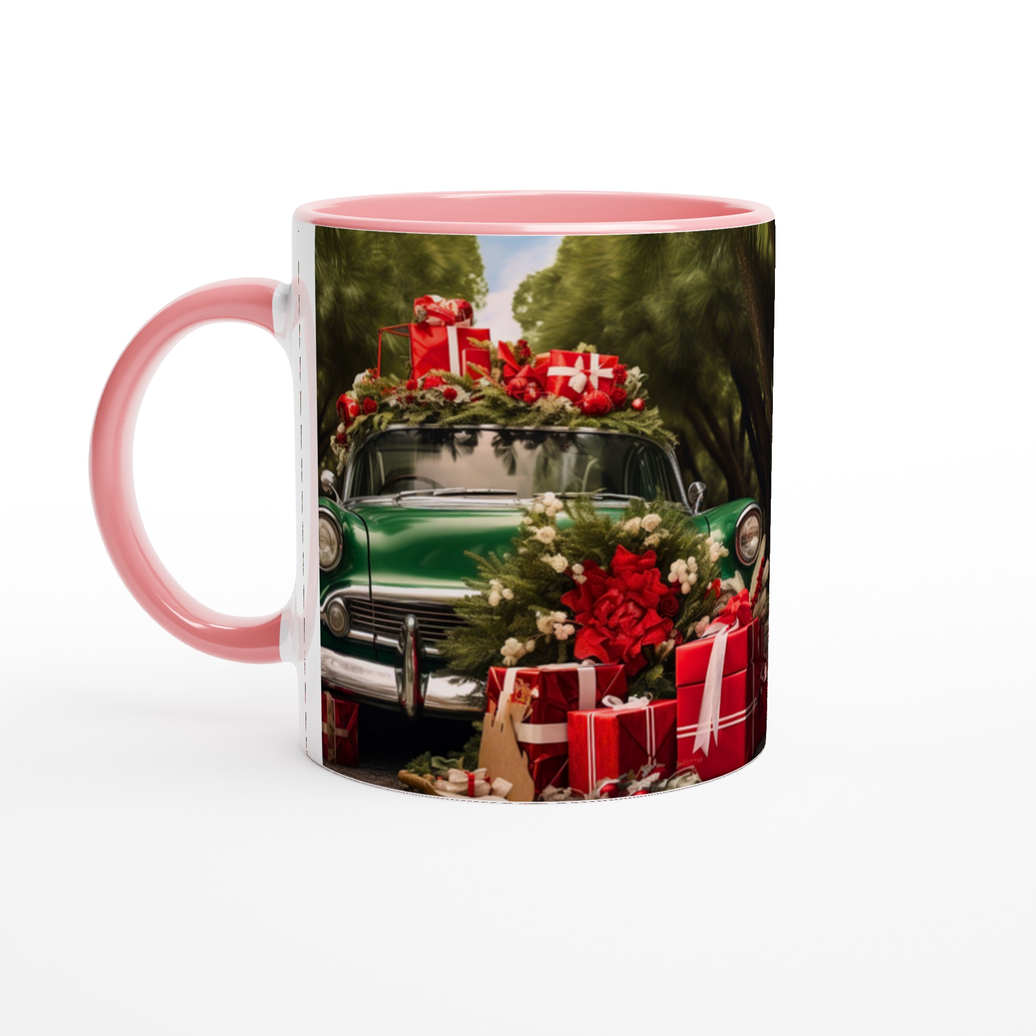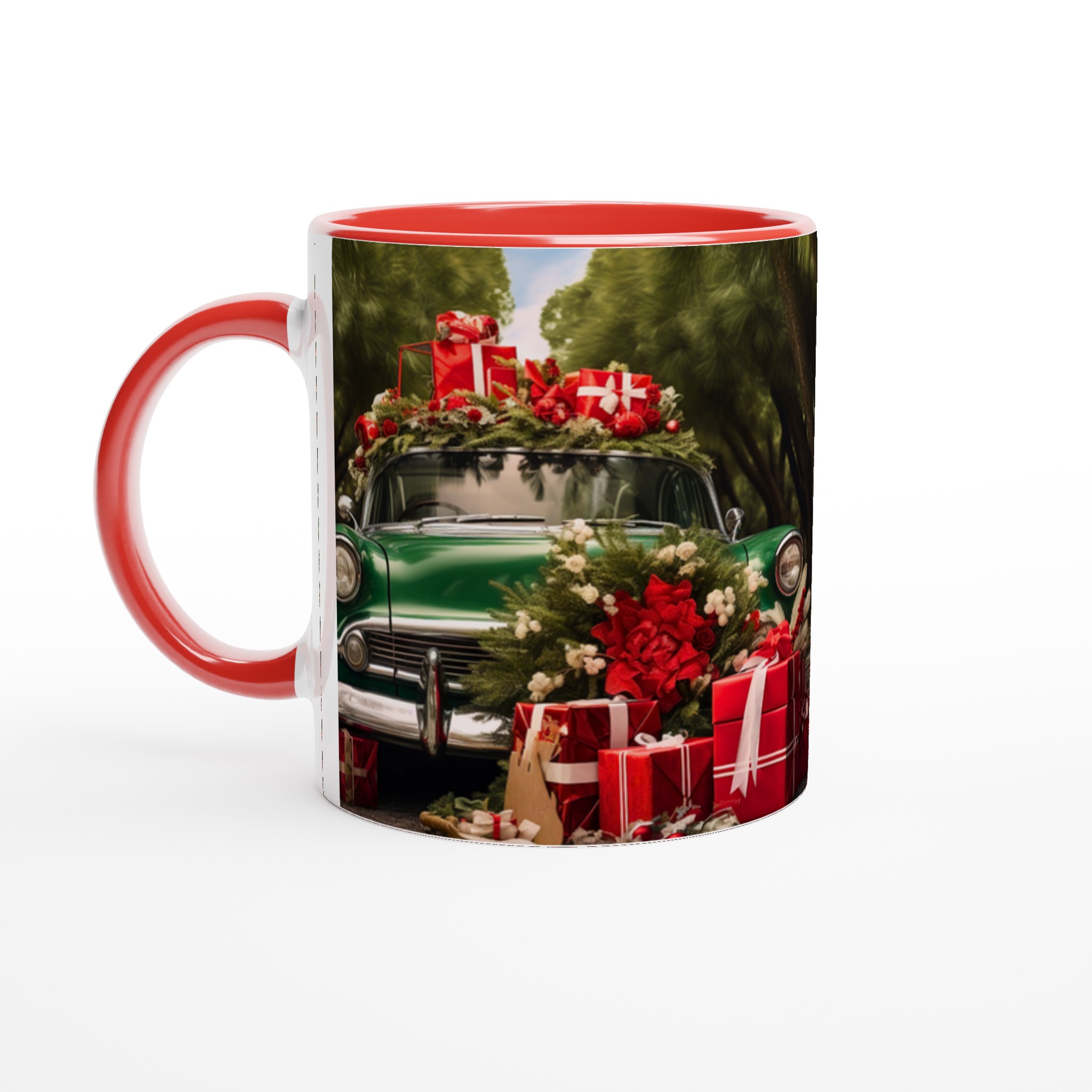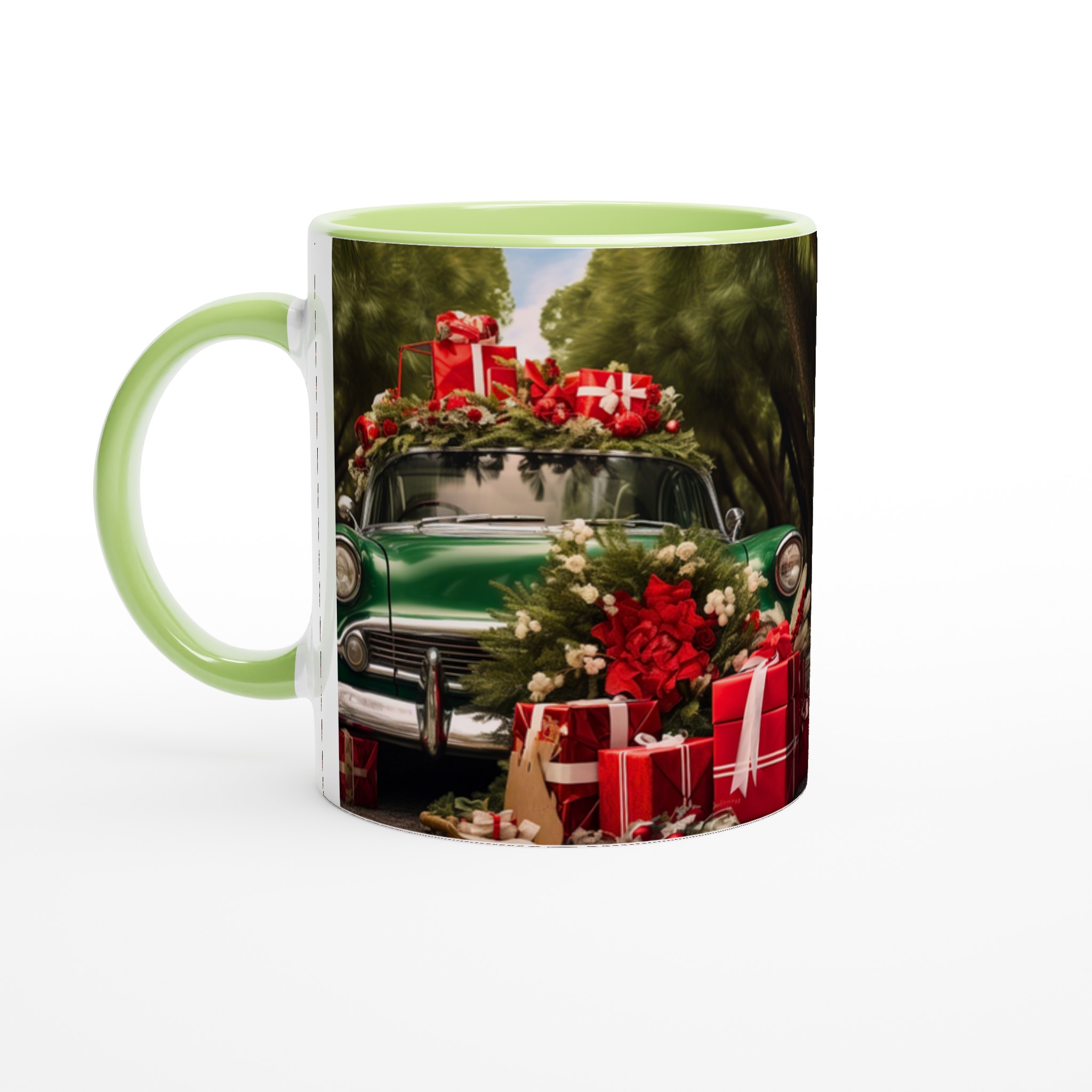 Sätt guldkant på julen med denna festliga keramiska mugg, perfekt för att sprida värme och glädje under den kalla årstiden. Denna mugg fångar den nostalgiska charmen av en grön vintagebil lastad med julklappar och grönskande dekorationer, omsluten av en lummig skog. En perfekt stämningshöjare för ditt morgonkaffe, kvällens varma choklad eller när du bara vill njuta av en kopp te i sann julanda.