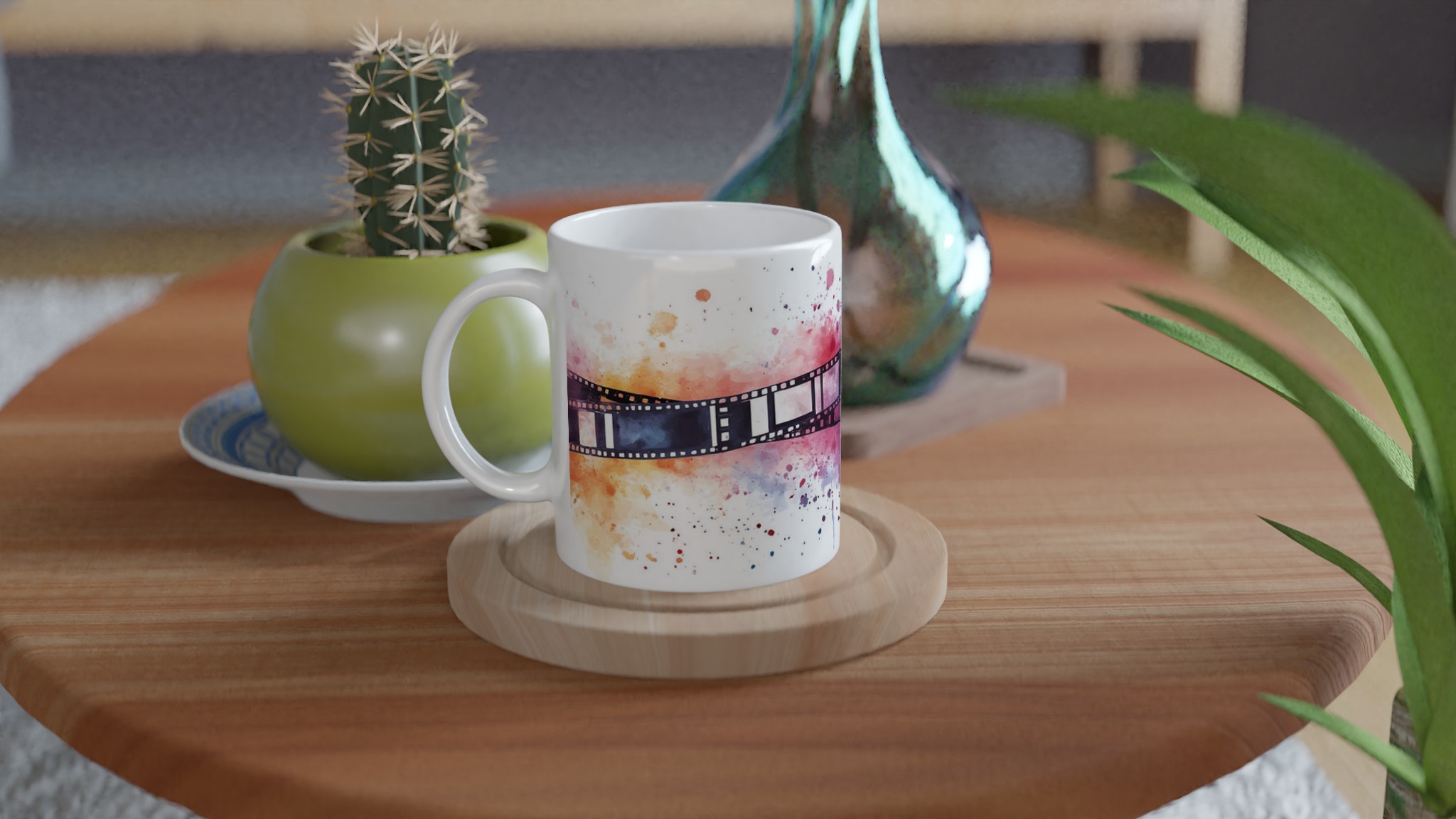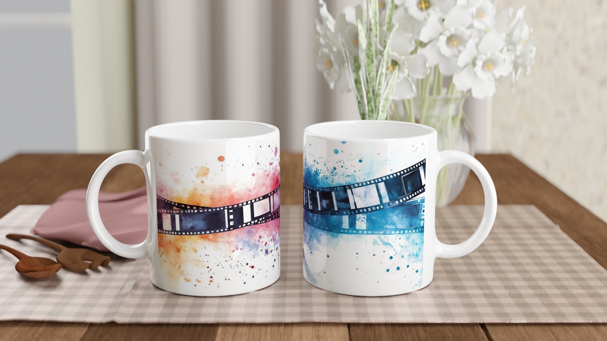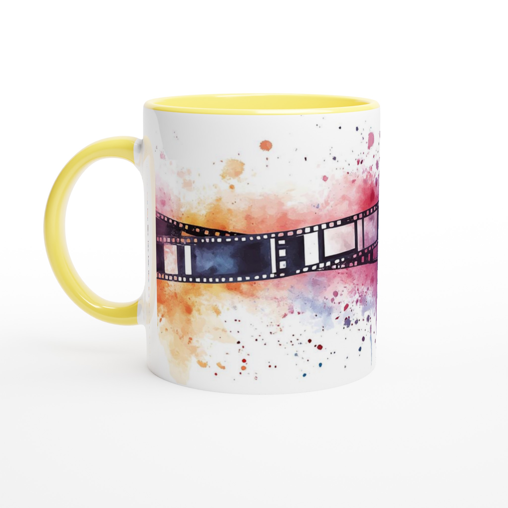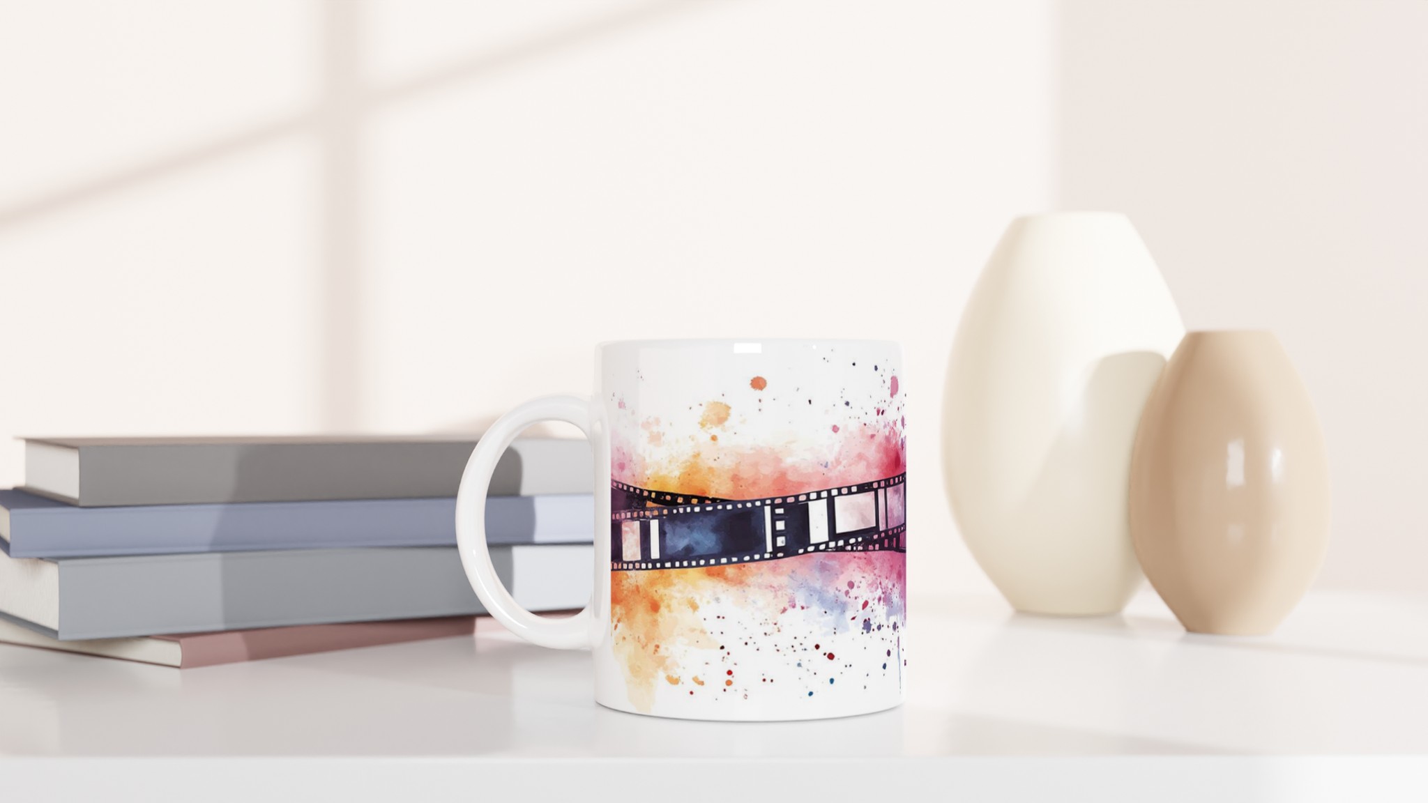 Låt kreativiteten flöda och fånga filmens magi med vår unika filmremsdesign, komplett med dynamiska färgstänk som påminner om konsten att skapa. Denna mugg är perfekt för filmälskaren, konstnären eller den som uppskattar en kreativ touch i vardagen. Välj din favoritfärg bland ett spektrum av sju livfulla nyanser: klassisk vit, solig gul, mjuk rosa, fräsch grön, passionerad röd, elegant svart eller lugnande blå. Varje mugg är tillverkad av högkvalitativ keramik som tål både diskmaskin och mikrovågsugn utan att tappa färg eller glans. Den håller formen och färgerna tvätt efter tvätt – en riktig vardagsfavorit som består.