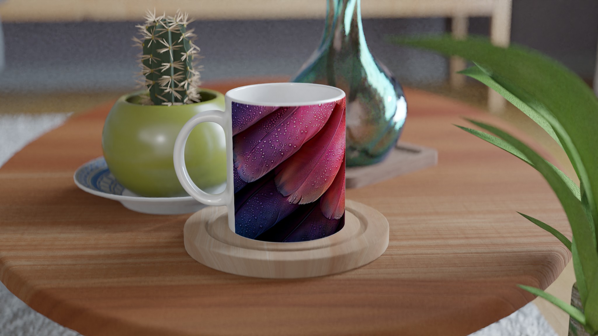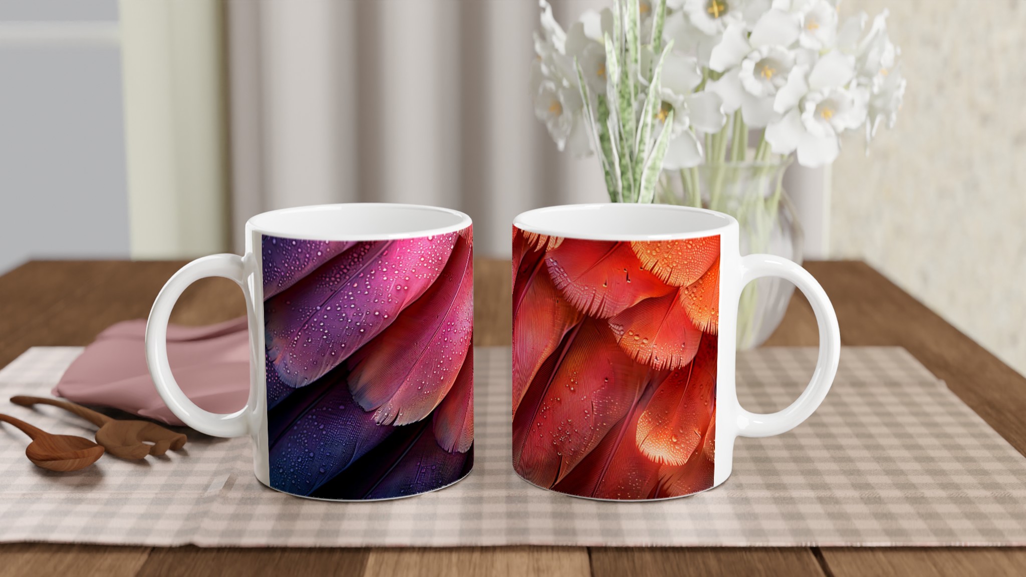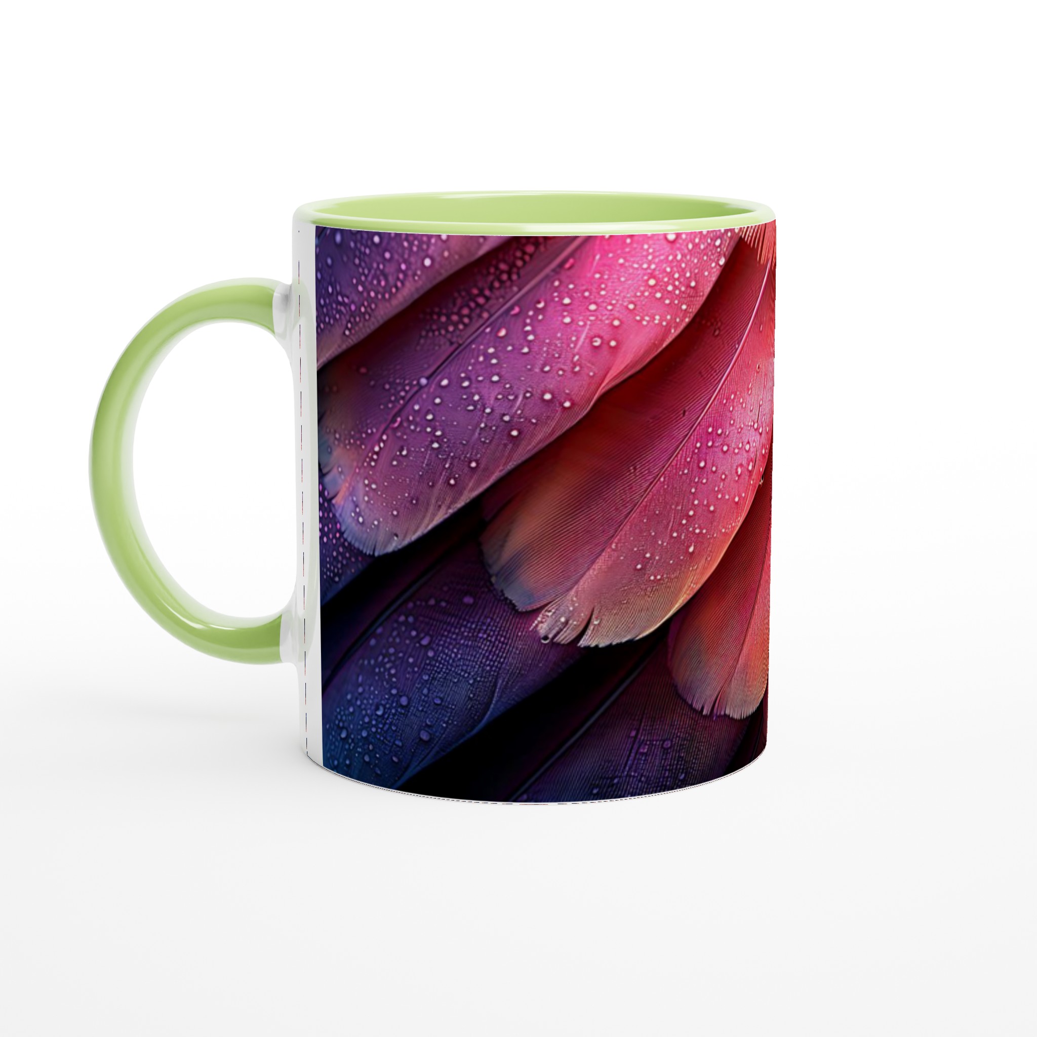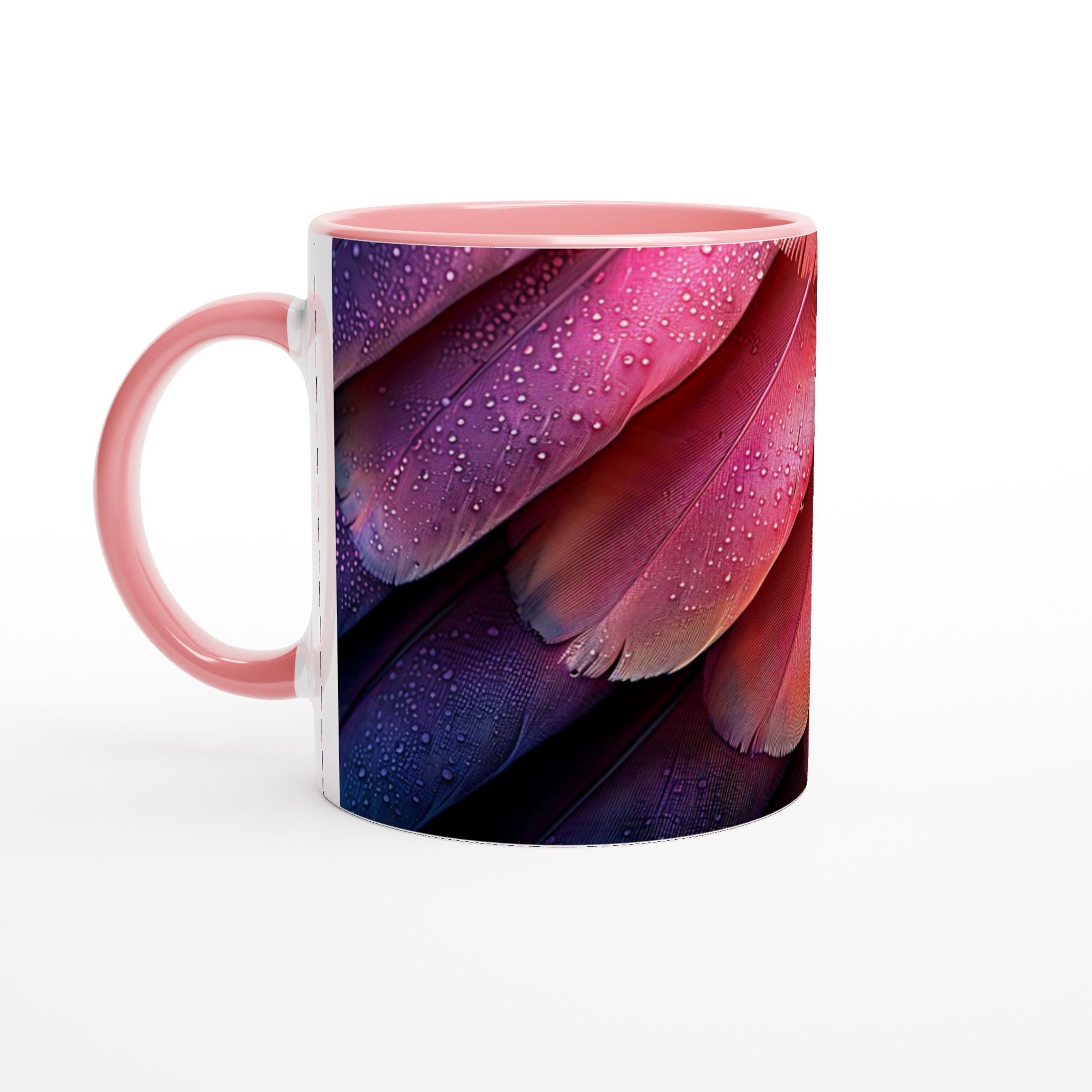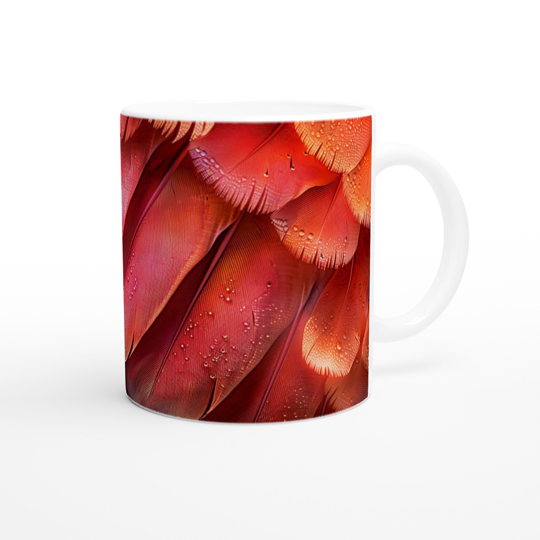 Låt dig förtrollas av denna keramikmugg, inspirerad av fjäderns eteriska skönhet och en drömsk färgpalett som sträcker sig från djupt lila till glödande orange-rött. Den här stilrena muggen blir snabbt en vardagsfavorit, perfekt för morgonkaffet, kvällens varma choklad eller när du bara vill njuta av en kopp te. Den blanka ytan gör att trycken framhävs med klara och levande färger, som håller sig fina även efter många turer i mikron och diskmaskinen.