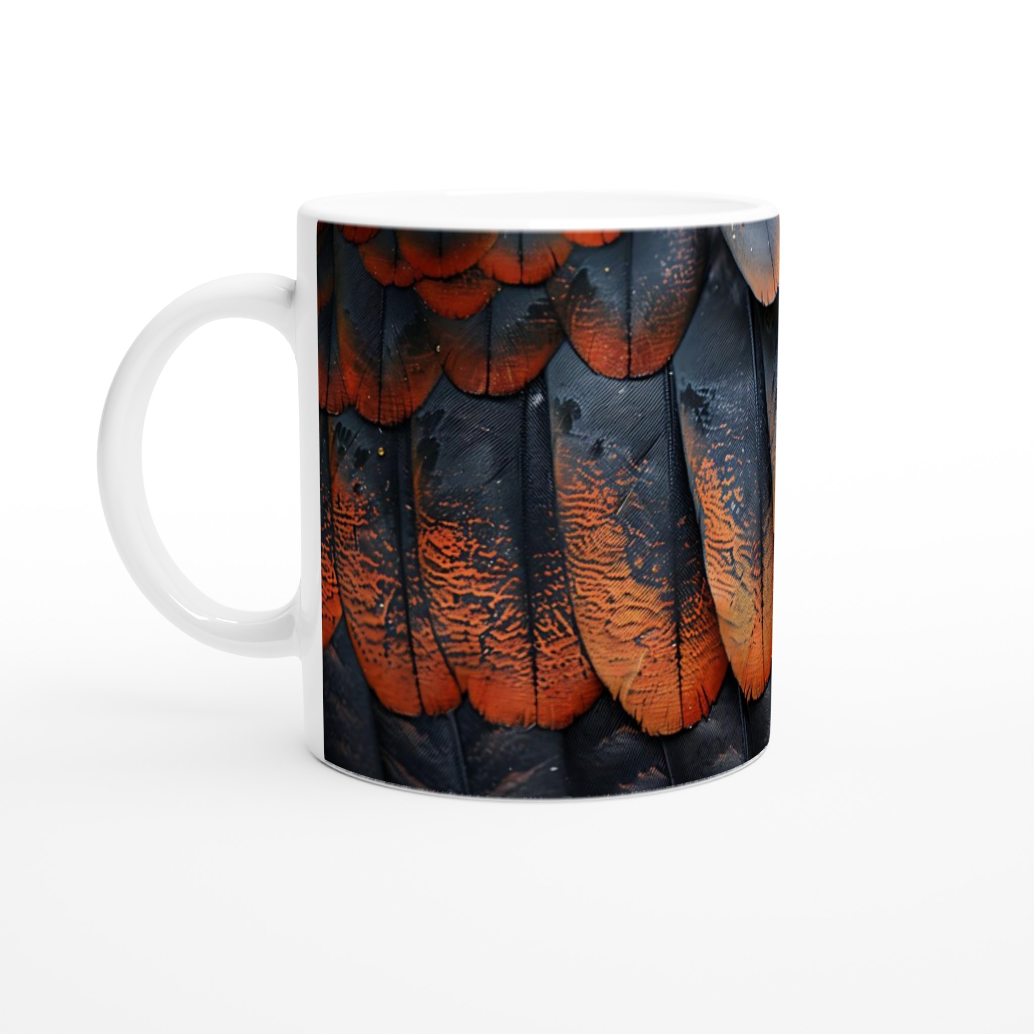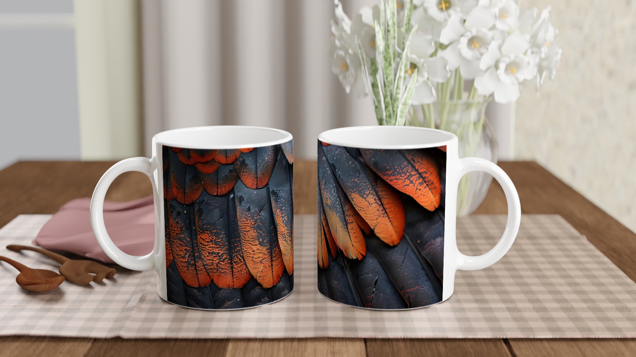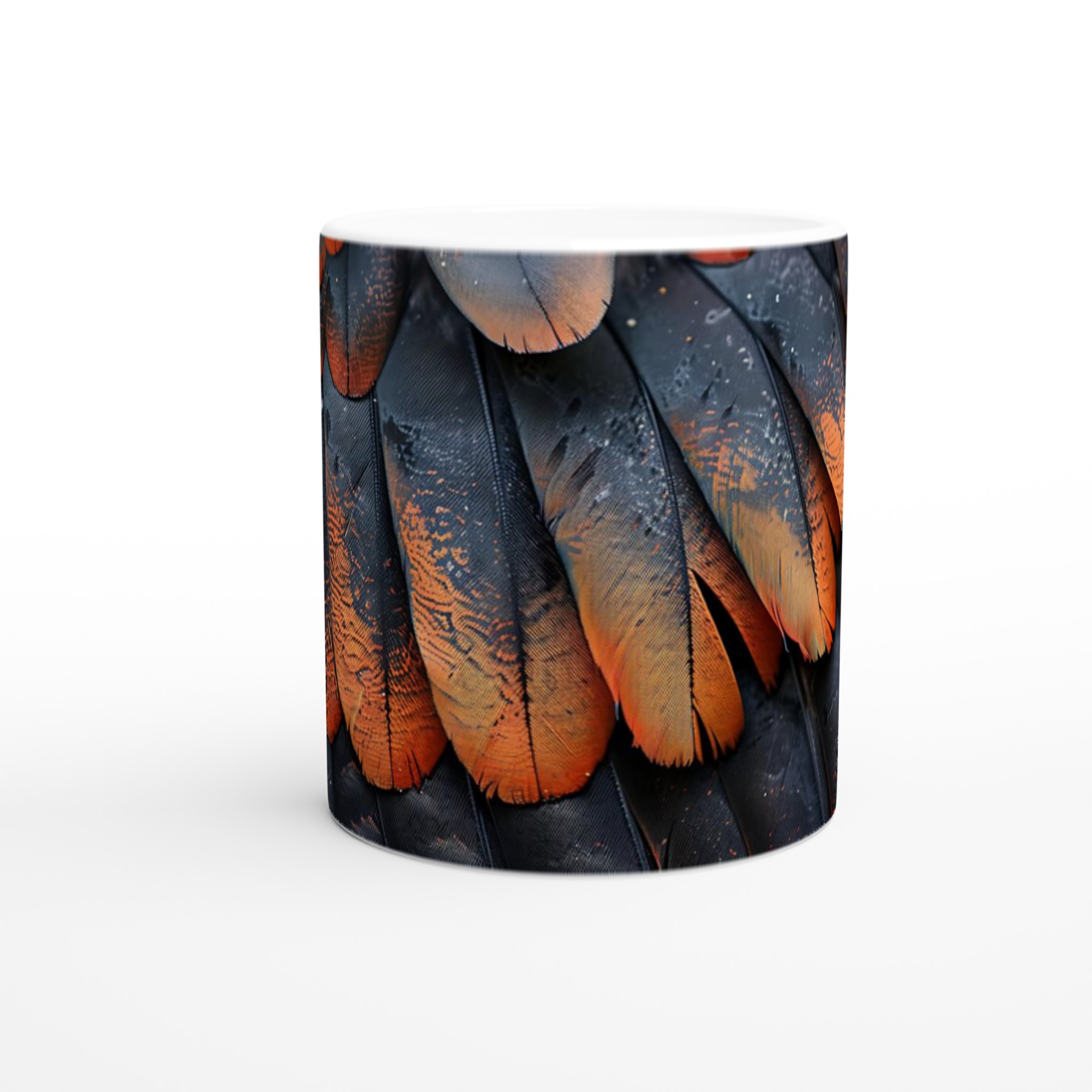 Lyft din vardagsrutin med denna iögonfallande keramiska mugg, inspirerad av de rika, varma tonerna hos exotiska fjädrar. Varje klunk blir en upplevelse, perfekt för morgonkaffet, kvällens varma choklad eller när du bara vill njuta av en kopp te. Den blanka vita ytan gör att trycken framhävs med klara och levande färger, som håller sig fina även efter många turer i mikron och diskmaskinen, vilket garanterar att den unika designen bibehålls över tid.