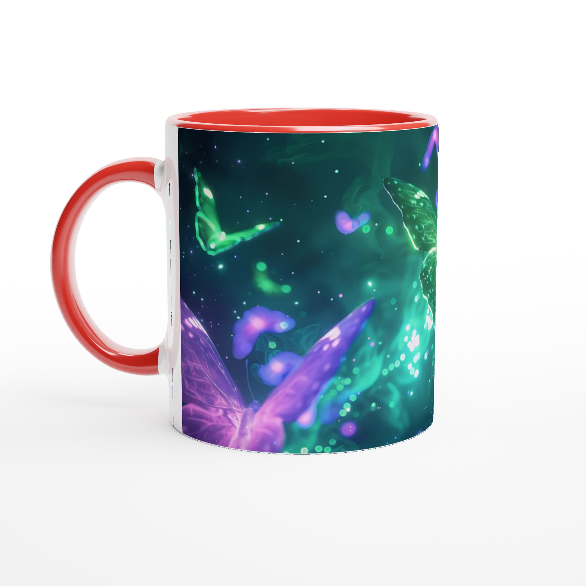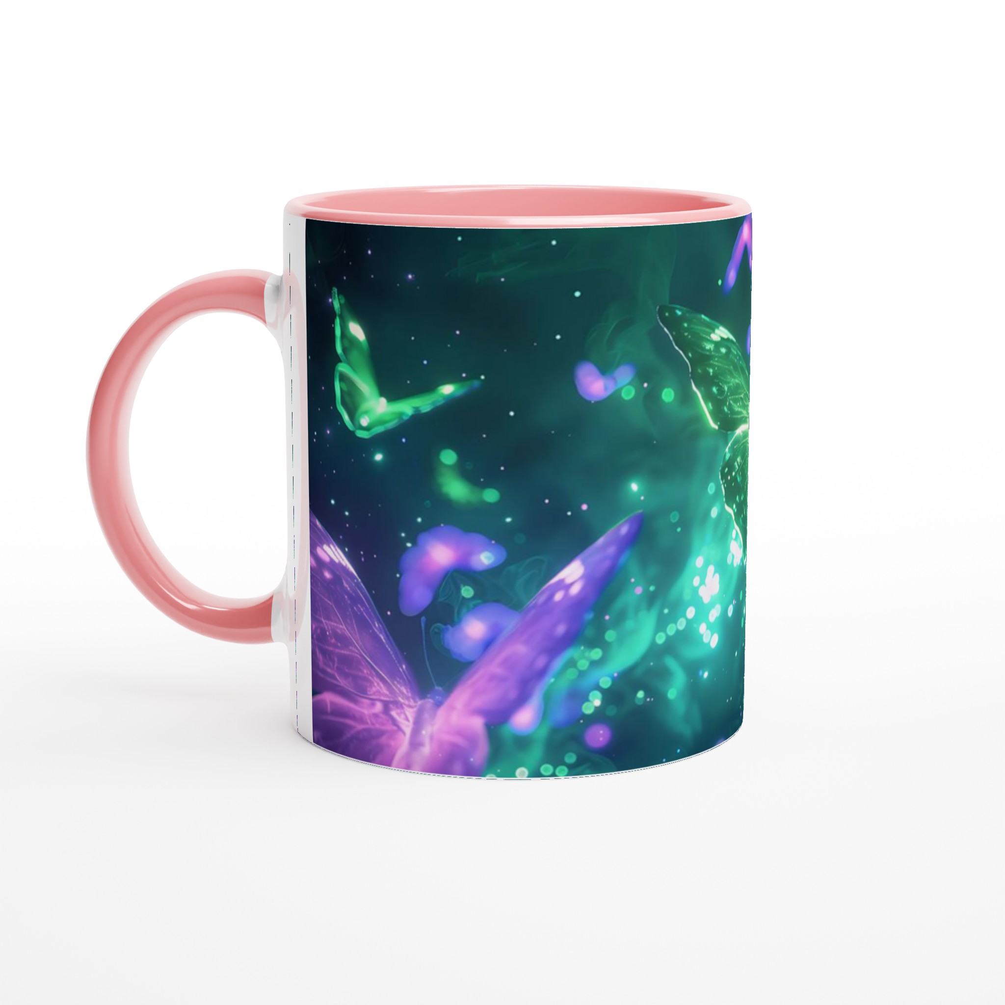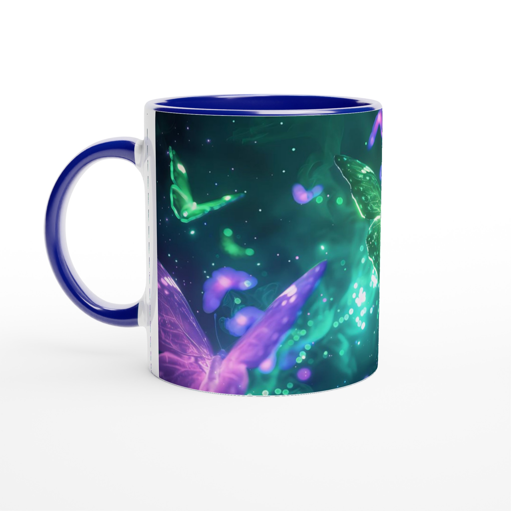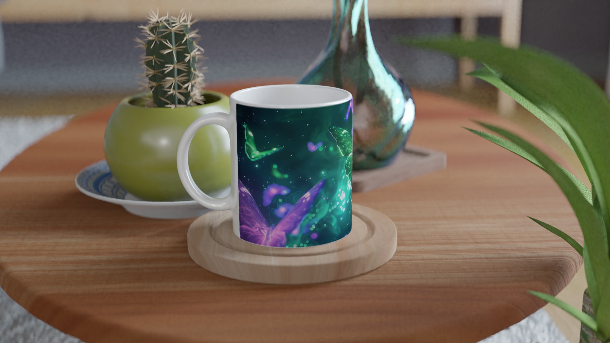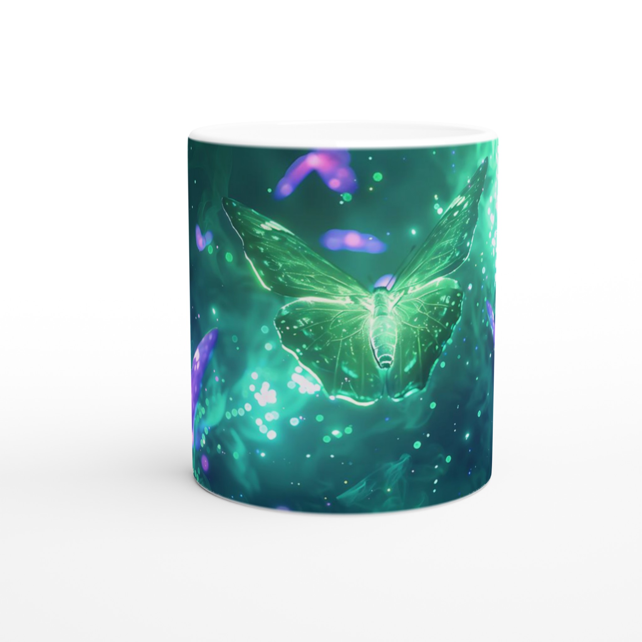 Stig in i en drömlik värld varje gång du tar en klunk med vår Keramiska Mugg – Fjärilarnas Magiska Värld. Med ett motiv som fångar den eteriska skönheten hos lysande fjärilar i en glödande fantasimiljö, förvandlar denna mugg varje fikastund till en magisk upplevelse. De vibrerande nyanserna av turkos och lila, förstärkta av skimrande ljuspunkter, ger en känsla av lugn och förundran. Den här stilrena keramiska muggen blir snabbt en vardagsfavorit. Perfekt för morgonkaffet, kvällens varma choklad eller när du bara vill njuta av en kopp te.