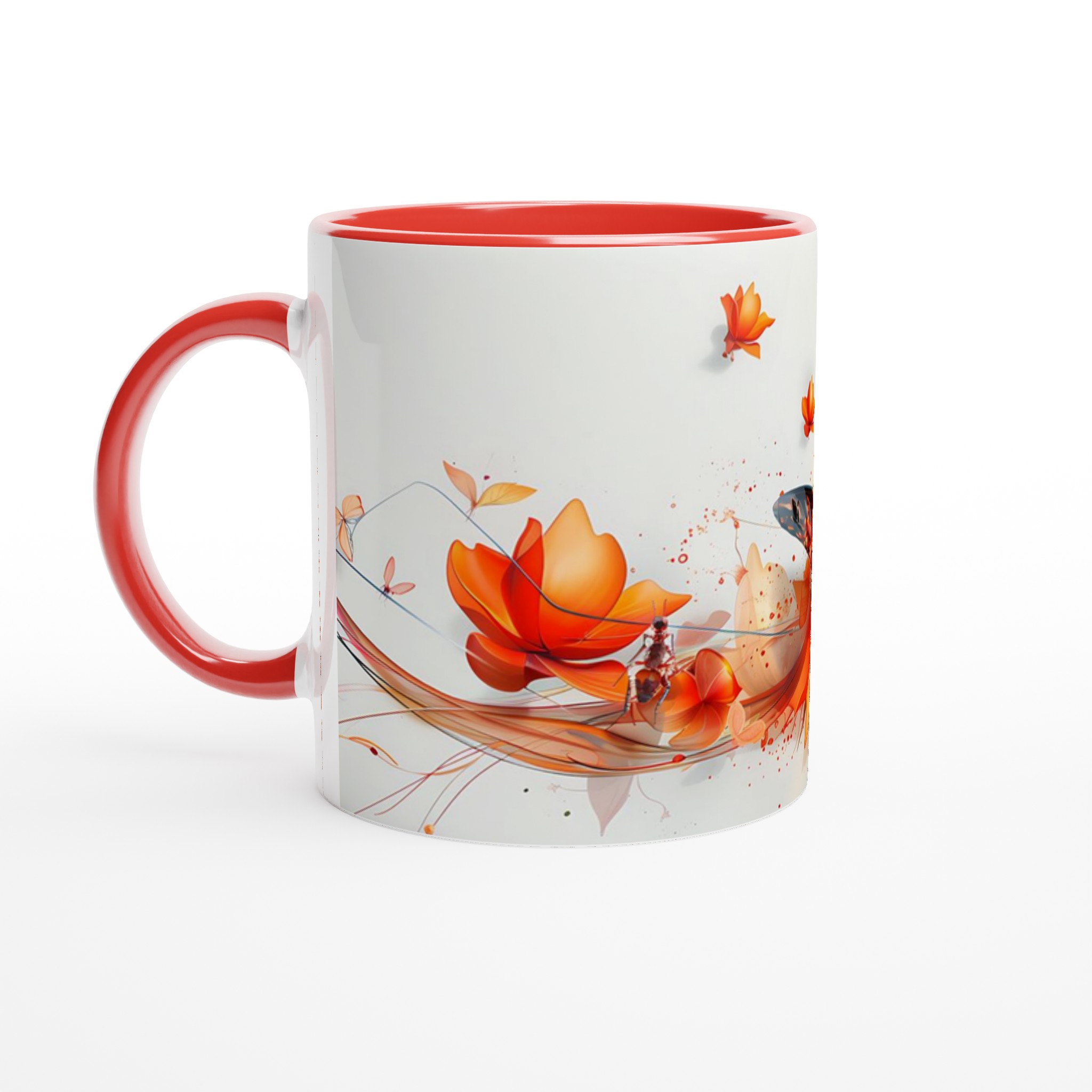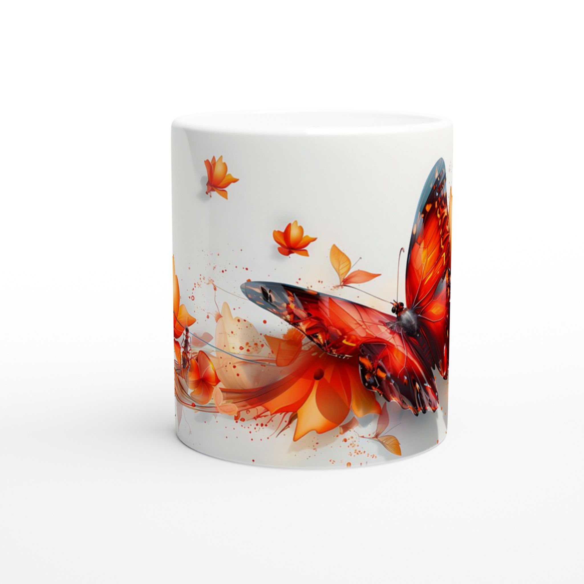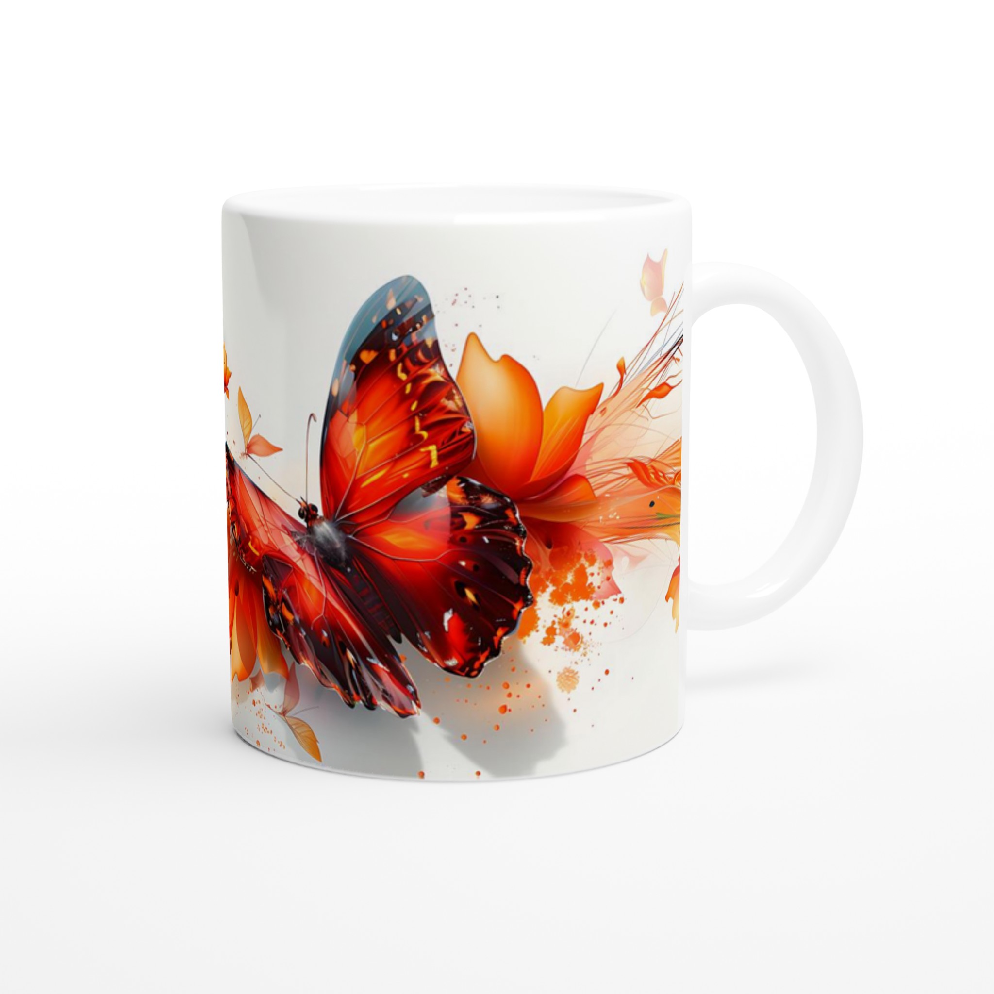 Låt dig förtrollas av ”Fjärilens Dans” – en keramisk mugg som fångar ögonblickets skönhet med dess vibrerande orange och röda fjärilsmotiv som svävar bland abstrakta blommor. Denna mugg blir snabbt en vardagsfavorit, perfekt för morgonkaffet, kvällens varma choklad eller när du bara vill njuta av en kopp te.