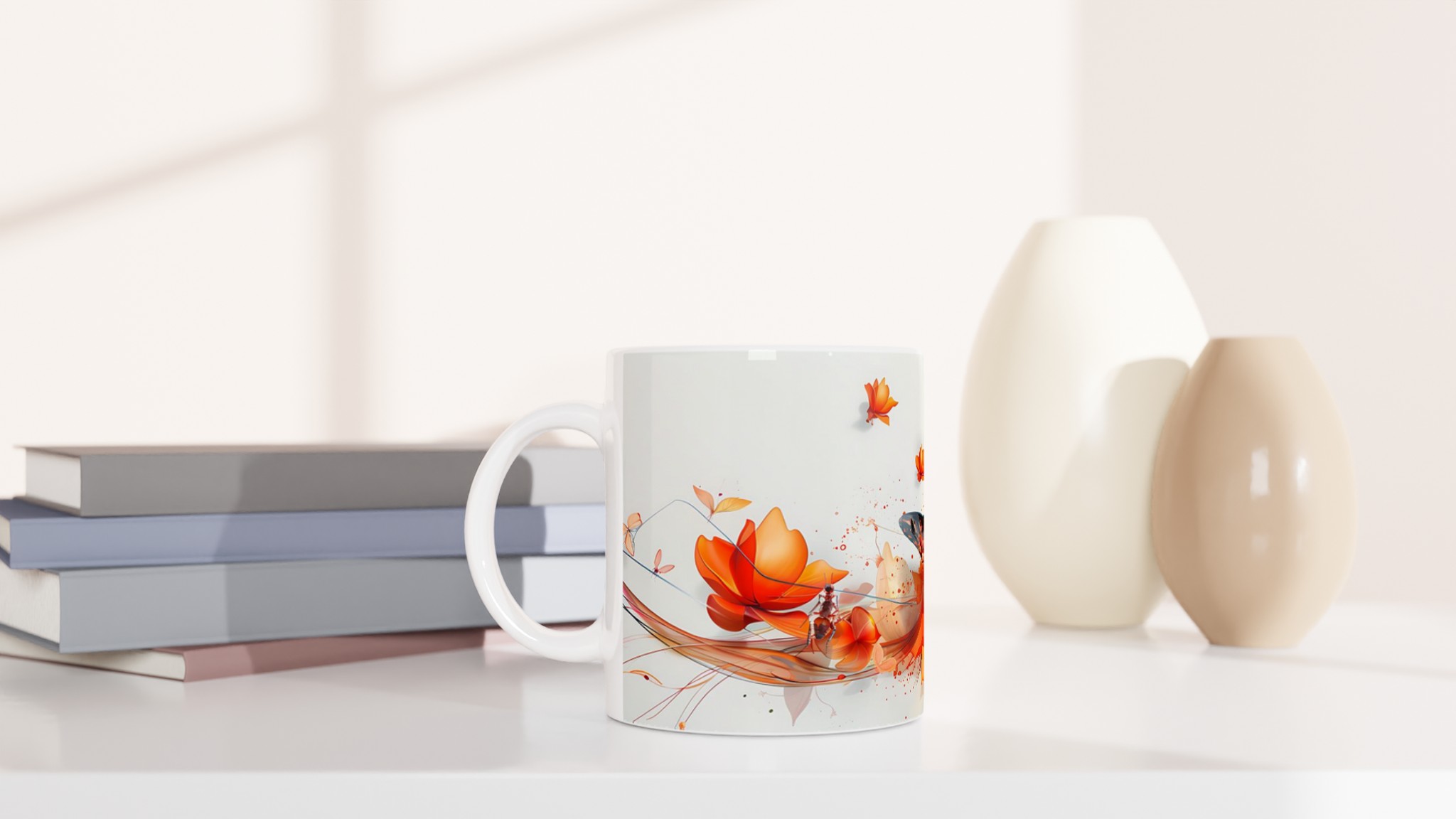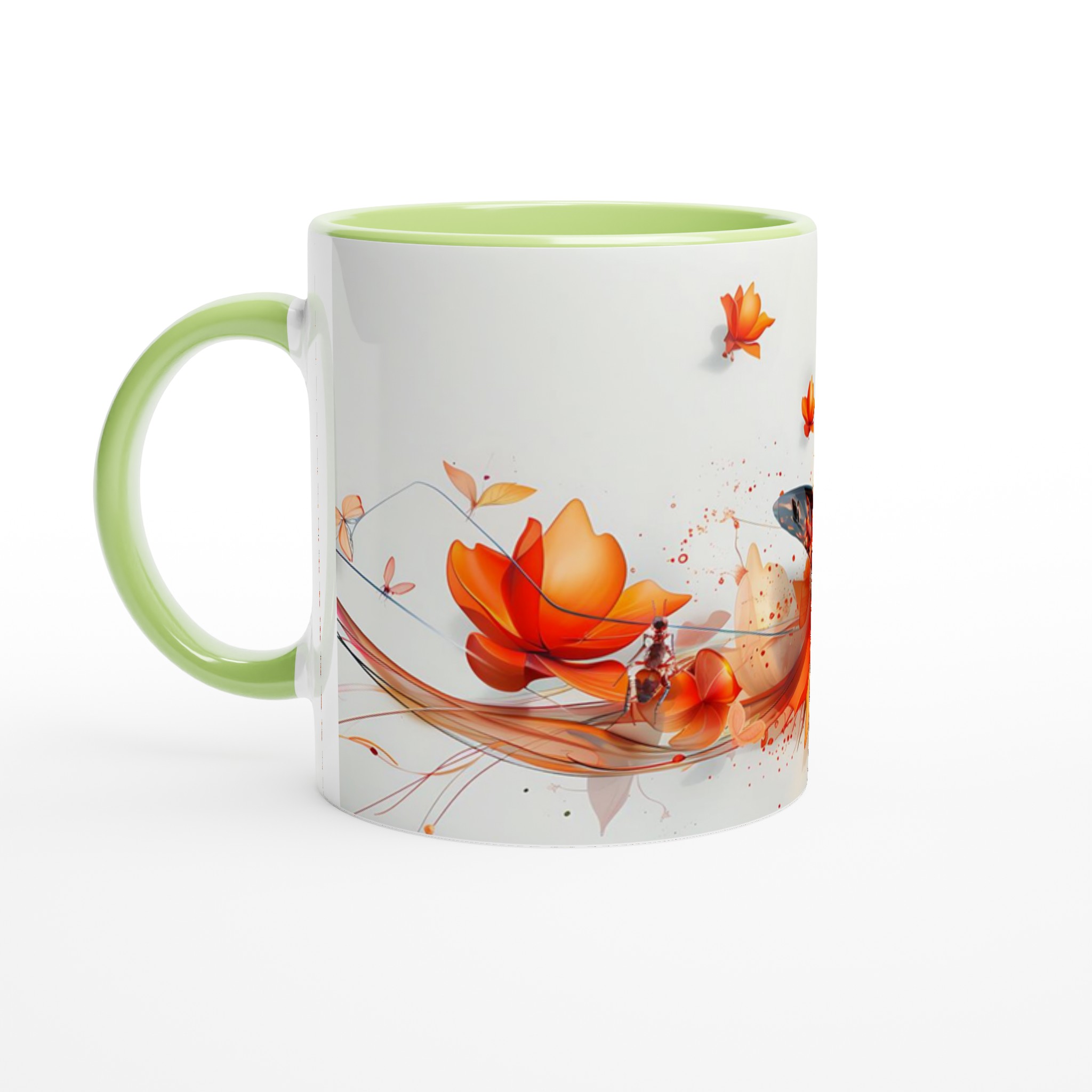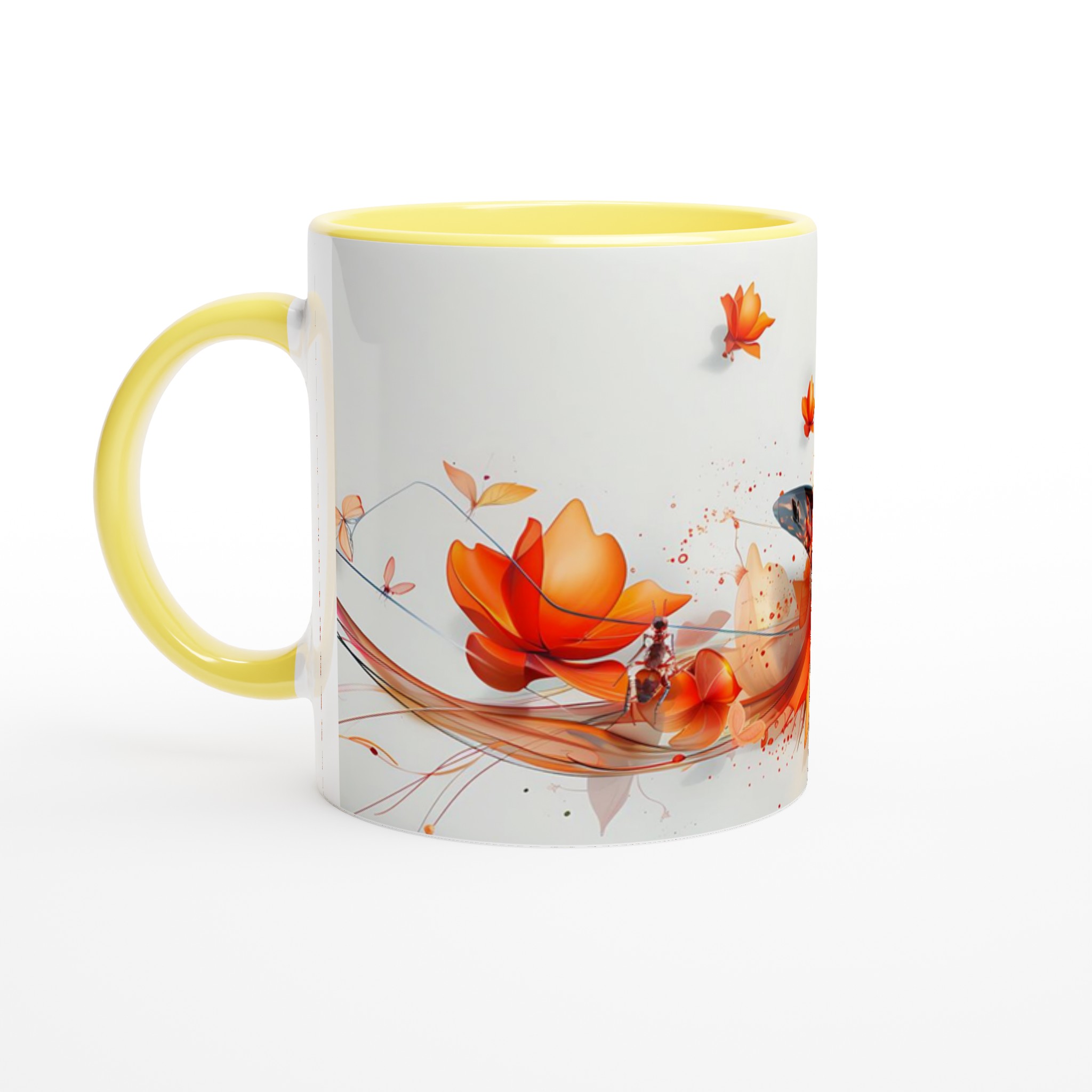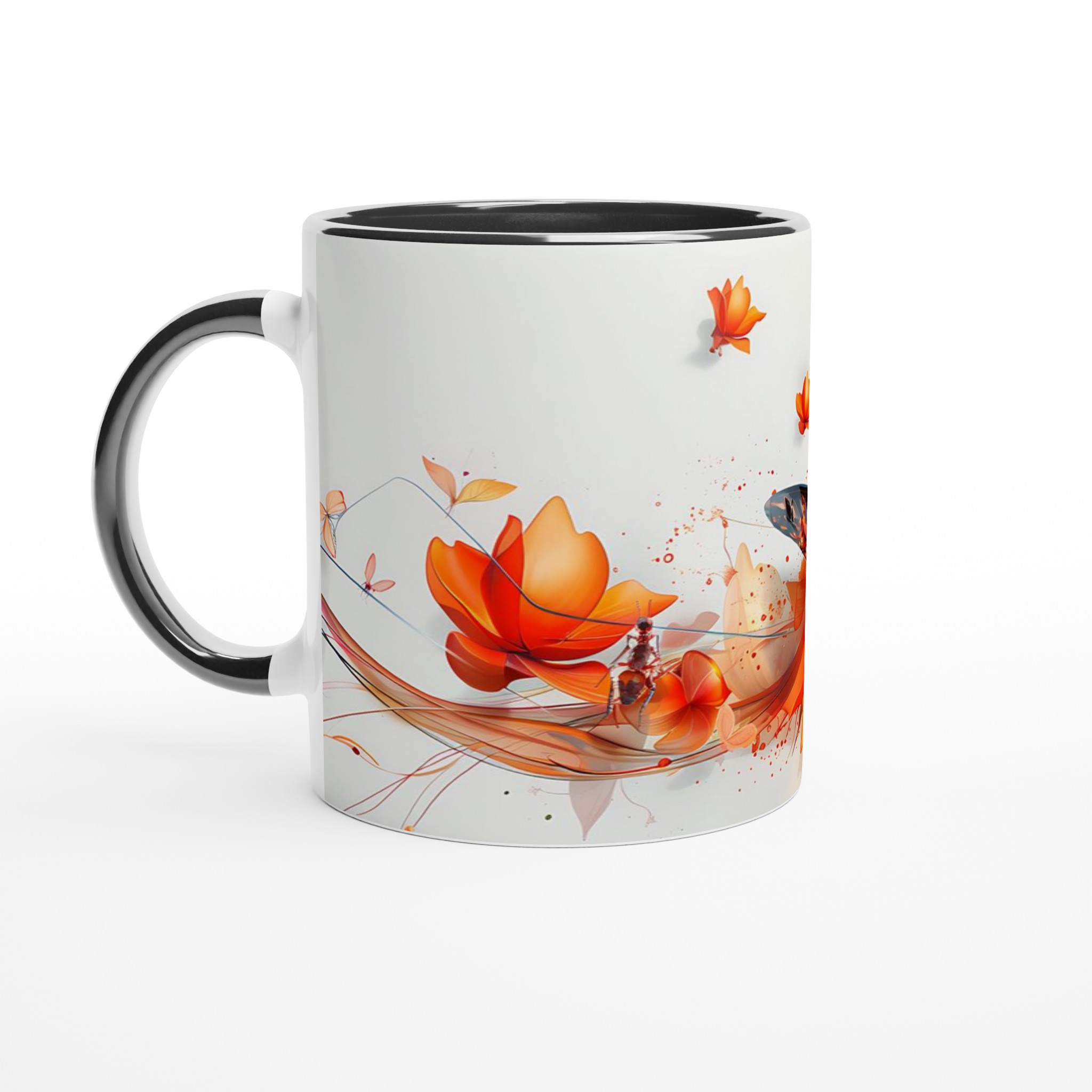 Låt dig förtrollas av ”Fjärilens Dans” – en keramisk mugg som fångar ögonblickets skönhet med dess vibrerande orange och röda fjärilsmotiv som svävar bland abstrakta blommor. Denna mugg blir snabbt en vardagsfavorit, perfekt för morgonkaffet, kvällens varma choklad eller när du bara vill njuta av en kopp te.