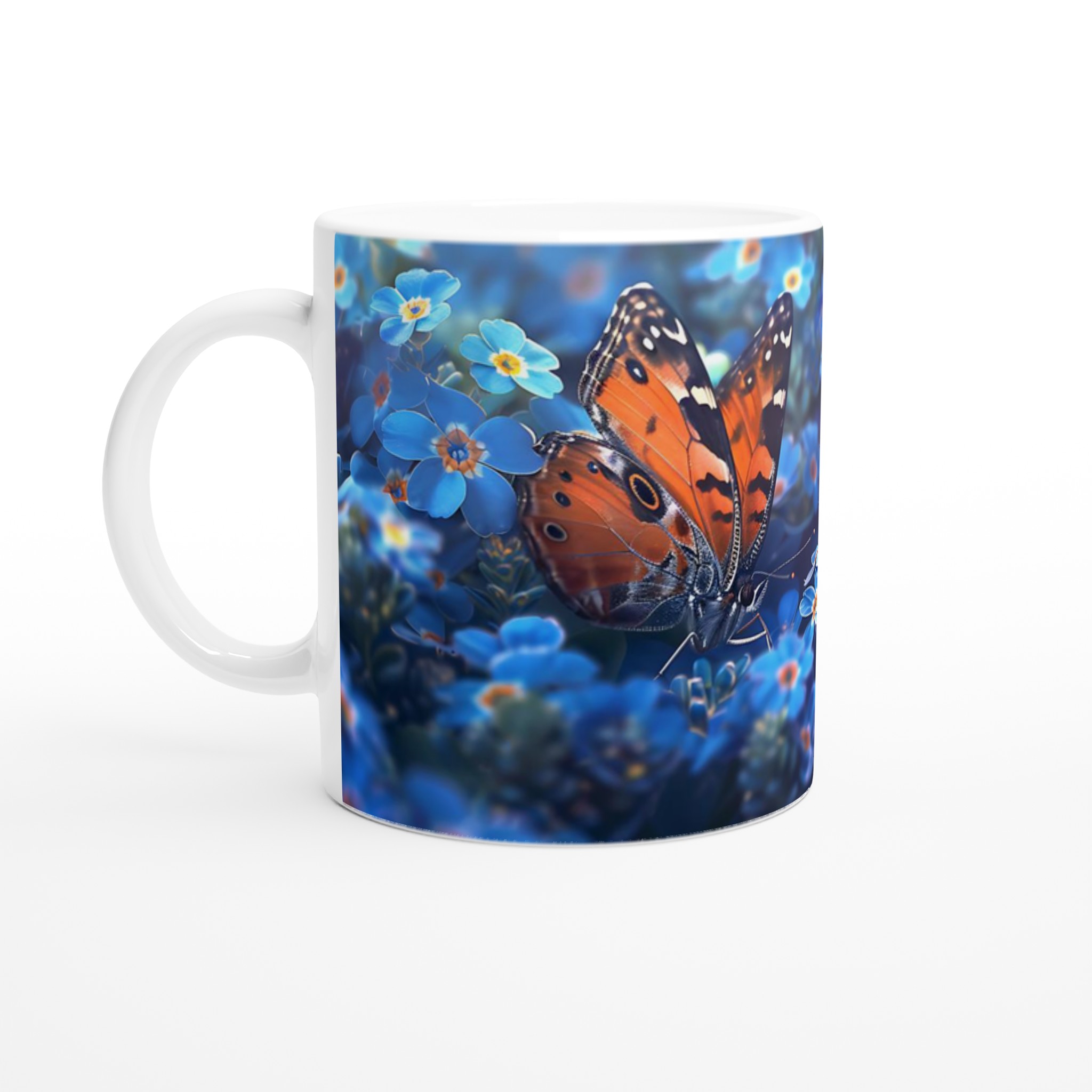 Inspirerad av lugnet från en fjärilsblå trädgård, fångar denna mugg essensen av fridfulla ögonblick. Den blanka vita ytan ger ett skarpt och levande tryck som verkligen sticker ut, oavsett om det är en personlig design, ett roligt citat eller en present till någon du tycker om.