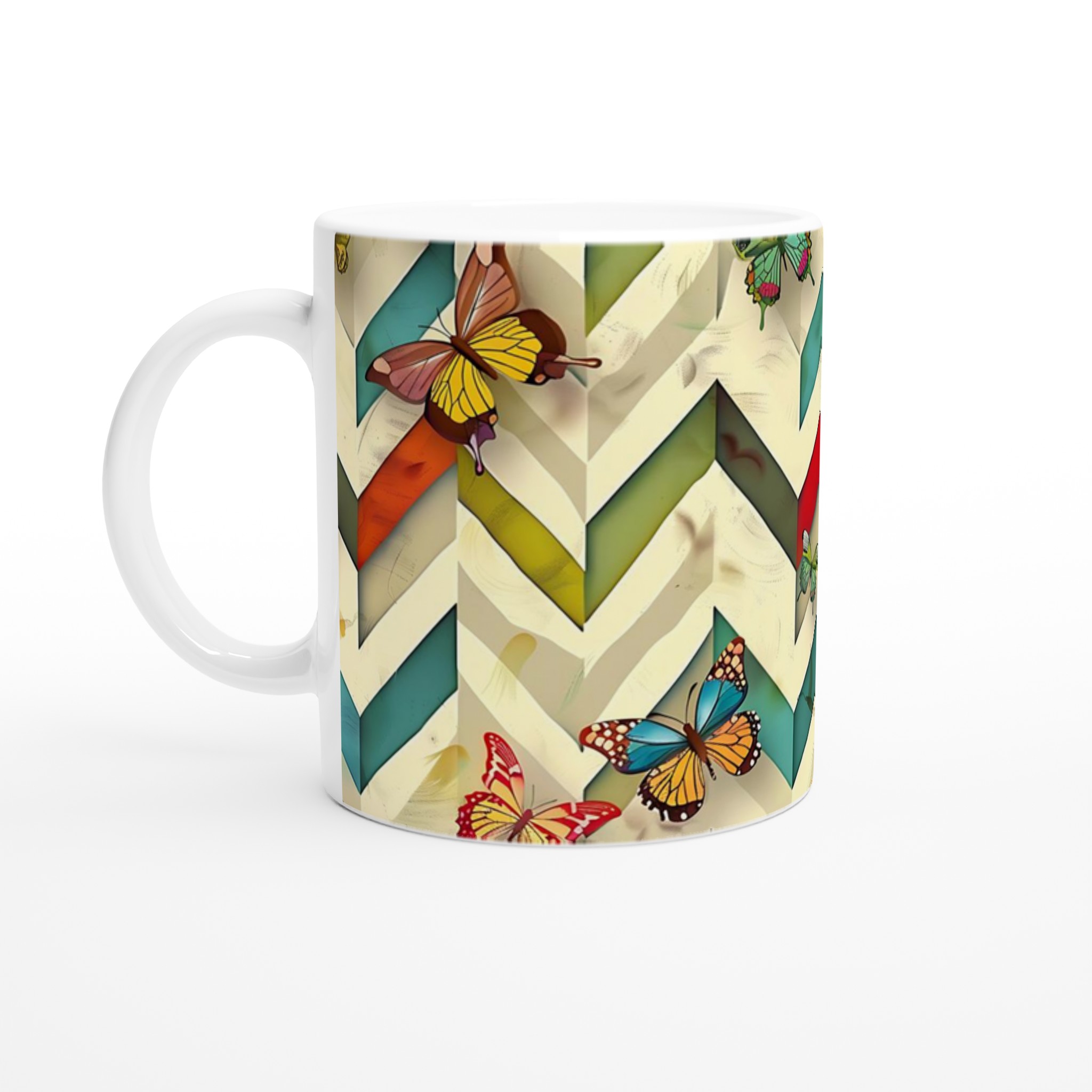 Inspirerad av naturens skönhet och den livfulla paletten av fjärilsvingar, ger den blanka ytan ett skarpt och levande tryck som verkligen sticker ut. Oavsett om det är en personlig design, ett roligt citat eller en present till någon du tycker om, kommer denna mugg att förmedla glädje och stil.