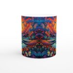 Vakna upp till en explosion av färger varje morgon med denna förtrollande keramiska mugg! Prydd med en livlig illustration av majestätiska fjärilar som svävar genom en drömlik djungel, fångar denna mugg essensen av fantasi och naturens skönhet. Den rika paletten av gult, orange, rött, lila och blått förvandlar varje sipp till en stunds avkoppling och inspiration.