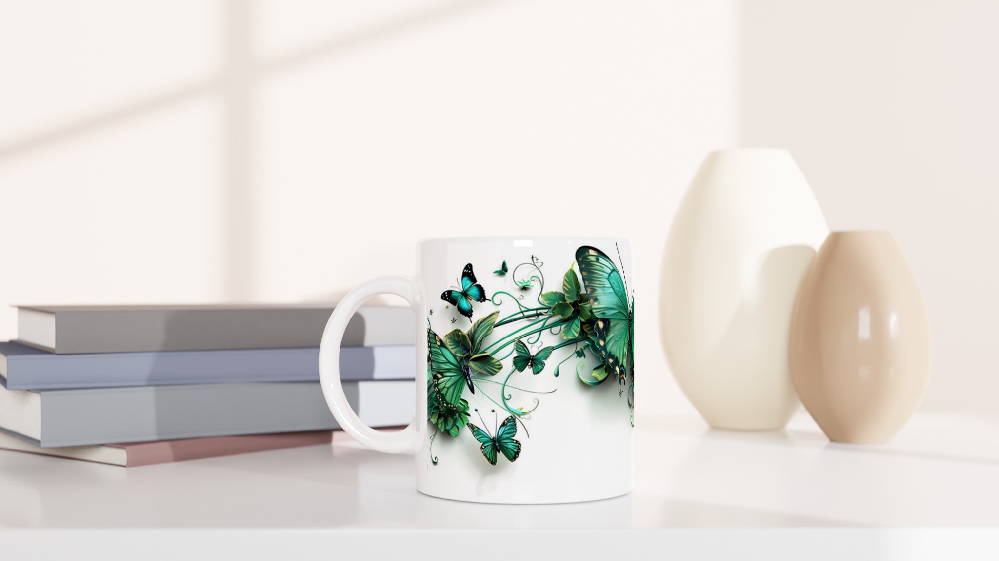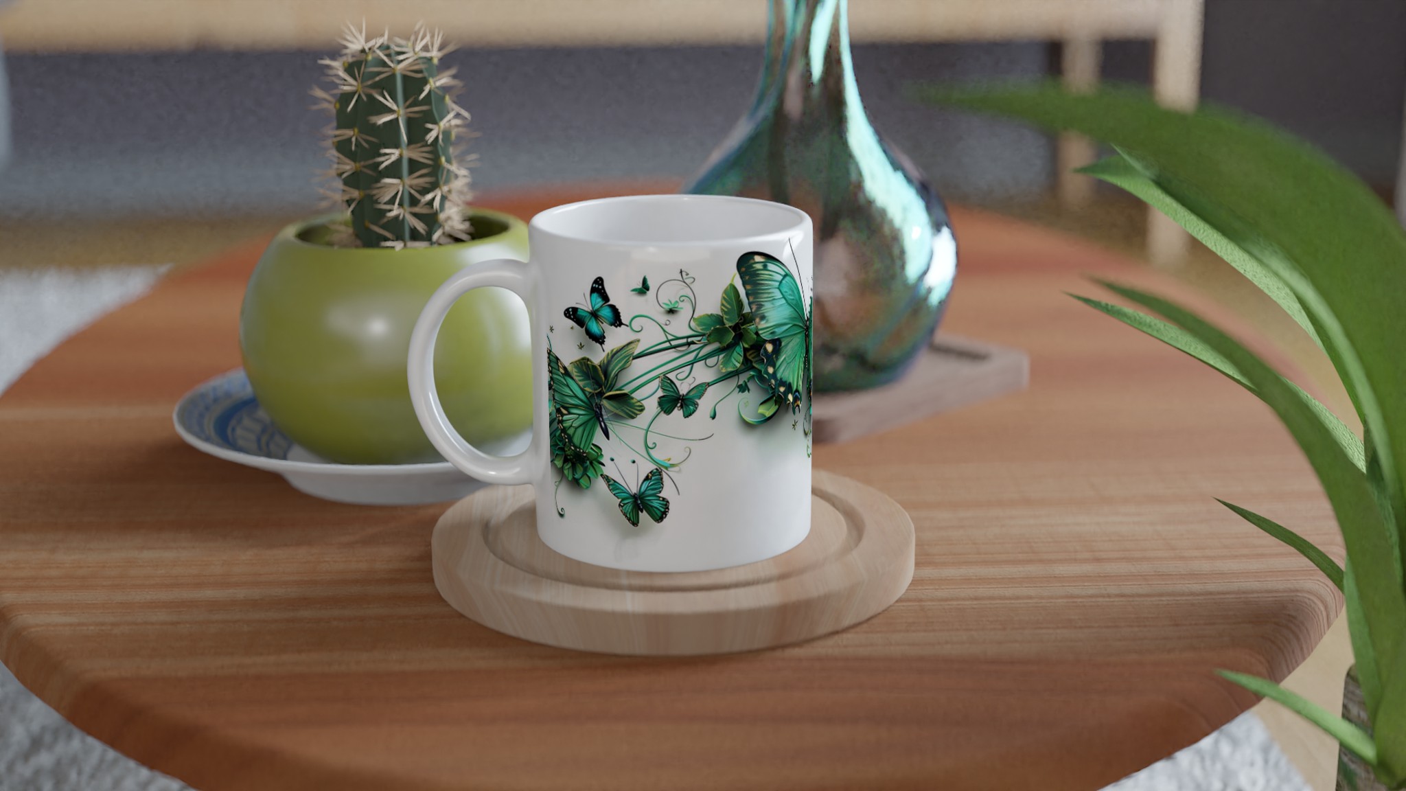 Fjärilsdröm – Grönskande Keramisk Mugg för Naturälskaren i ditt liv – Välj Din Färg!