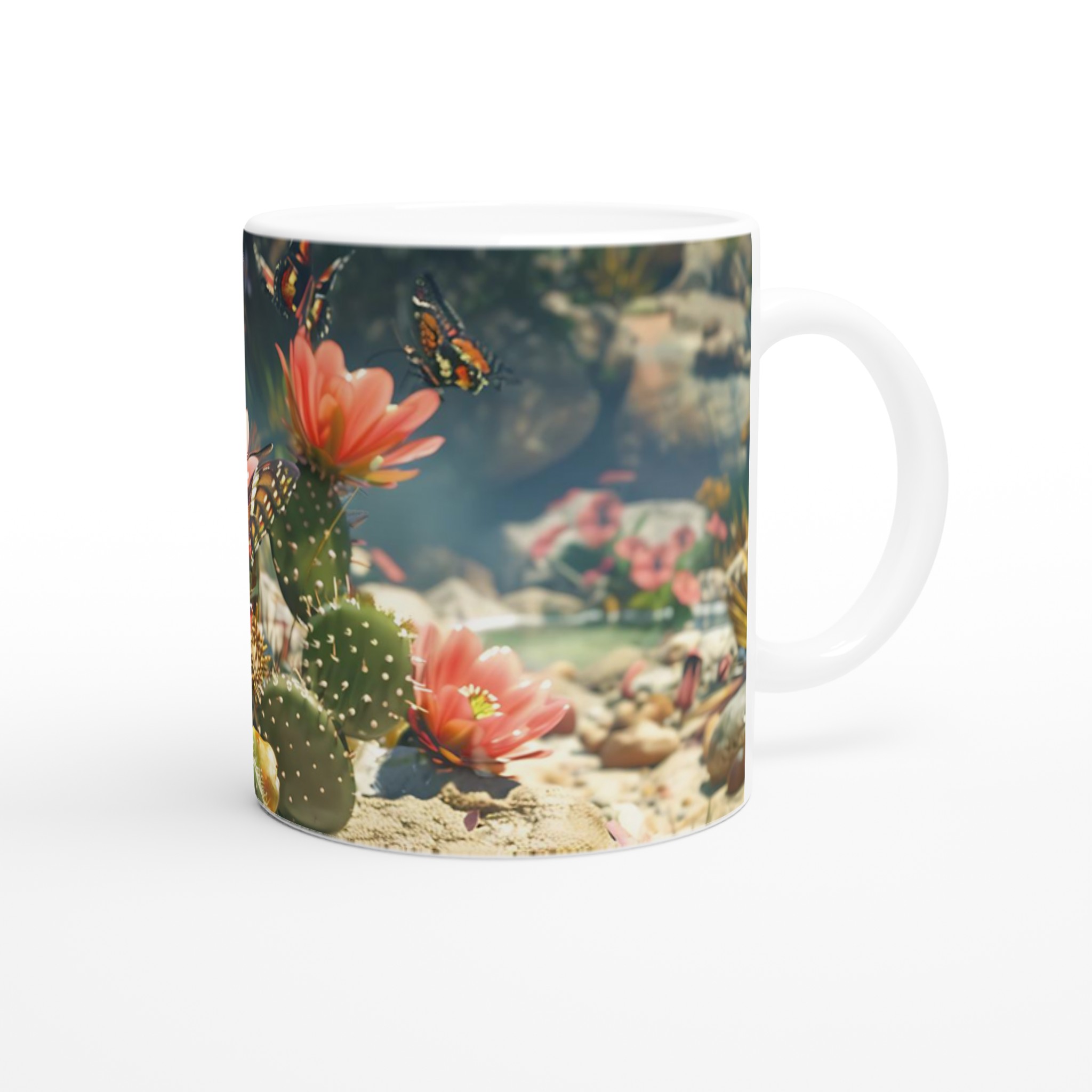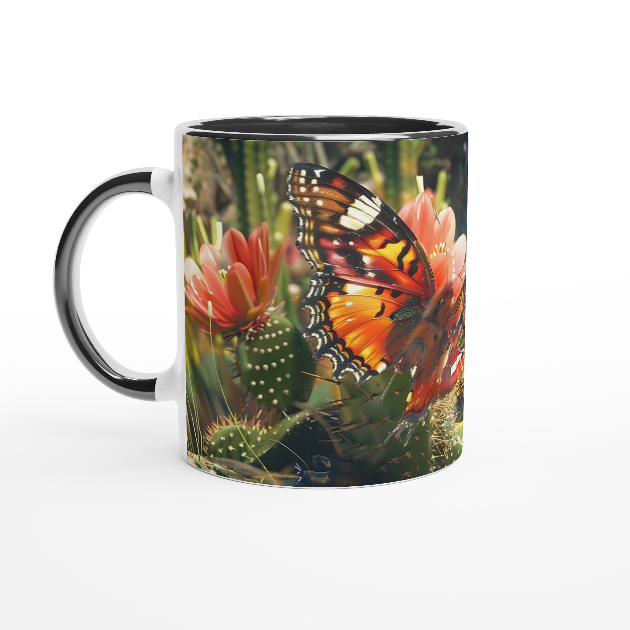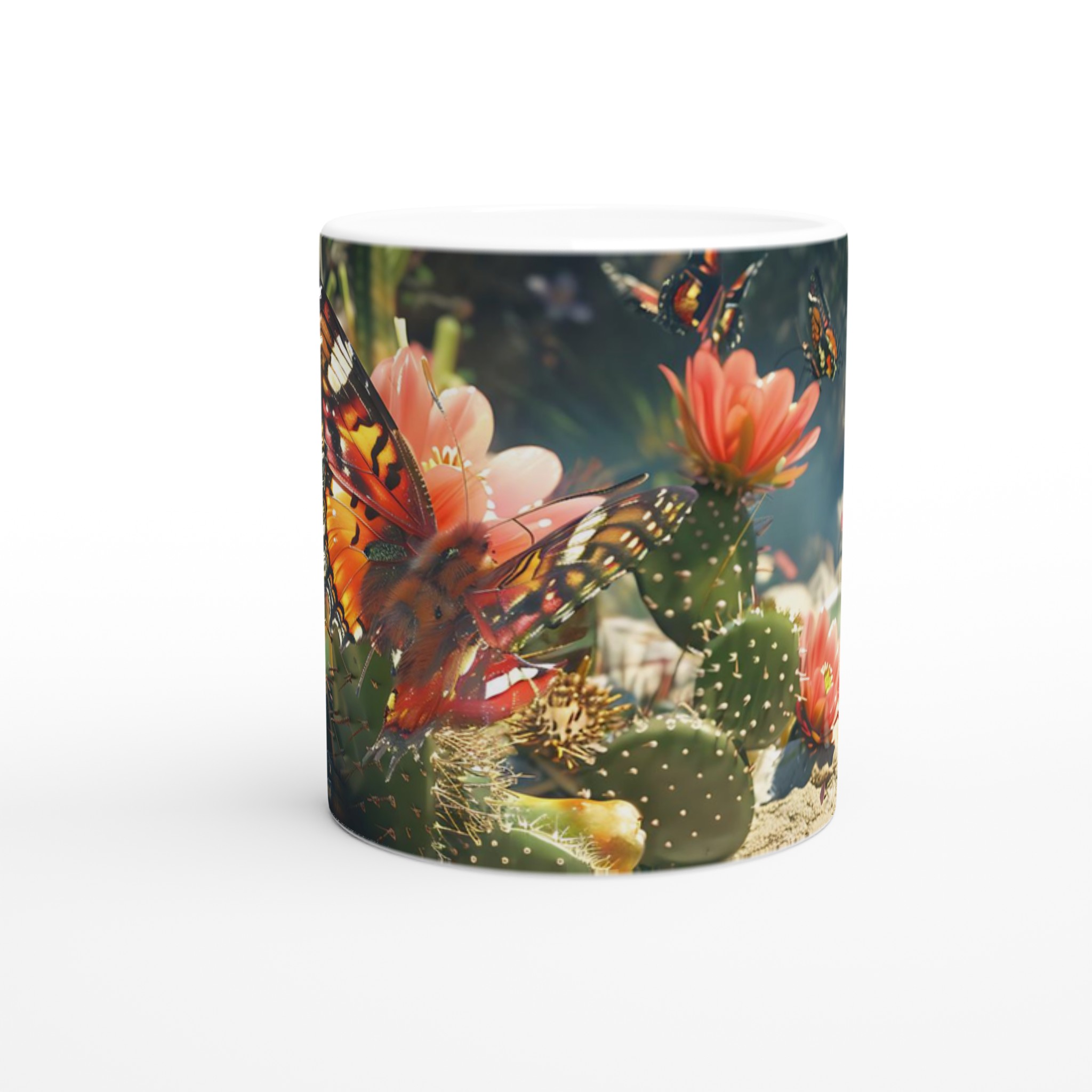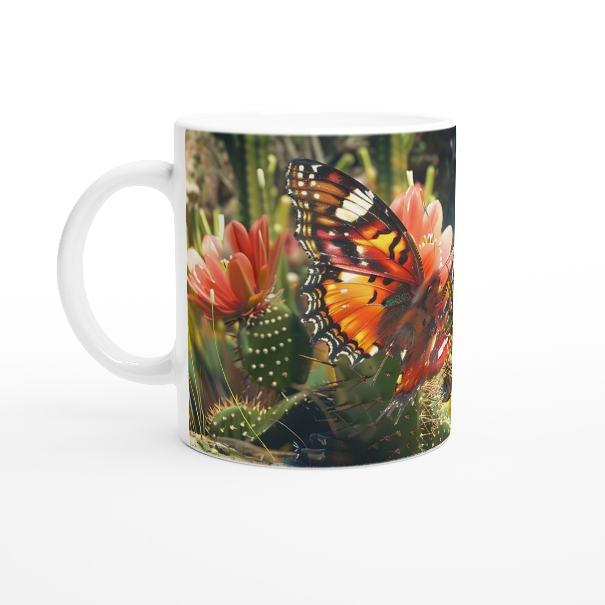 Fånga naturens skönhet varje gång du tar en klunk med vår ”Fjärilsdröm” keramiska mugg. Låt den levande bilden av en fjäril som vilar på en kaktusblomma transportera dig till en fridfull trädgård, oavsett om du njuter av morgonkaffet, kvällens varma choklad eller en lugn kopp te. Denna mugg förvandlar varje dryck till en liten stund av avkoppling och förundran.
