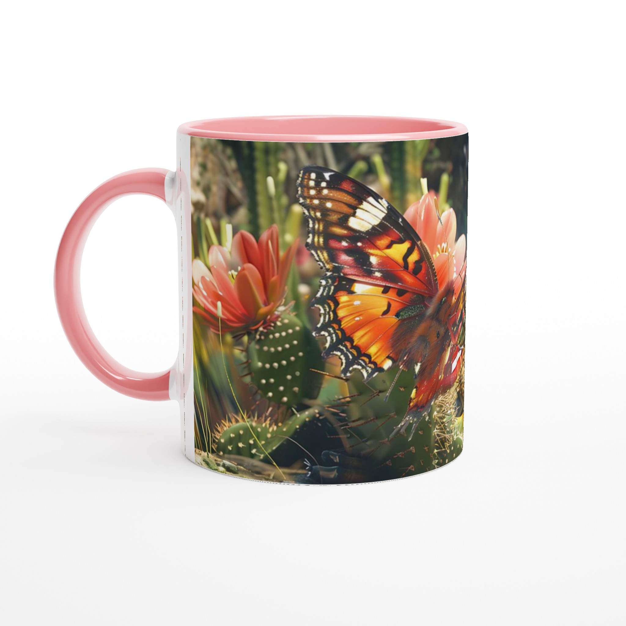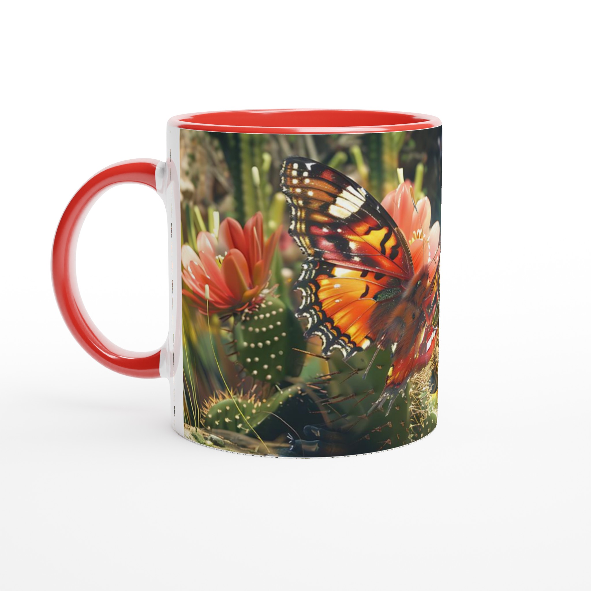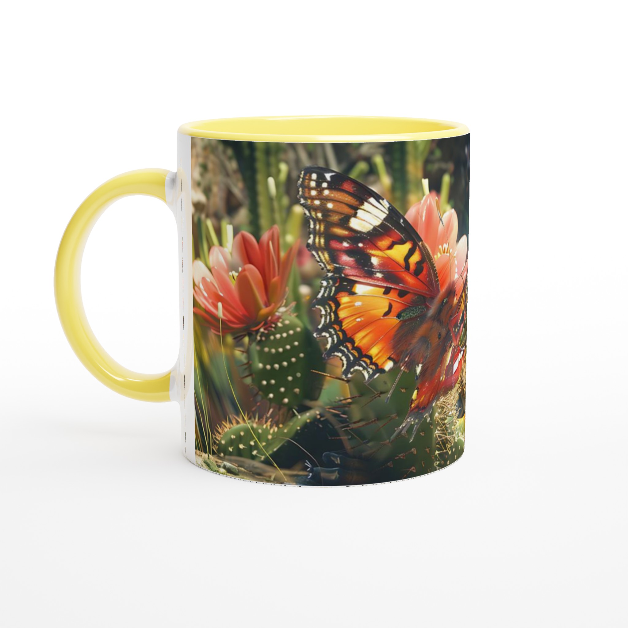 Fånga naturens skönhet varje gång du tar en klunk med vår ”Fjärilsdröm” keramiska mugg. Låt den levande bilden av en fjäril som vilar på en kaktusblomma transportera dig till en fridfull trädgård, oavsett om du njuter av morgonkaffet, kvällens varma choklad eller en lugn kopp te. Denna mugg förvandlar varje dryck till en liten stund av avkoppling och förundran.