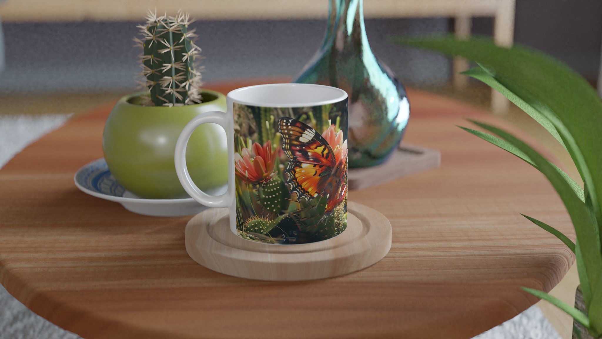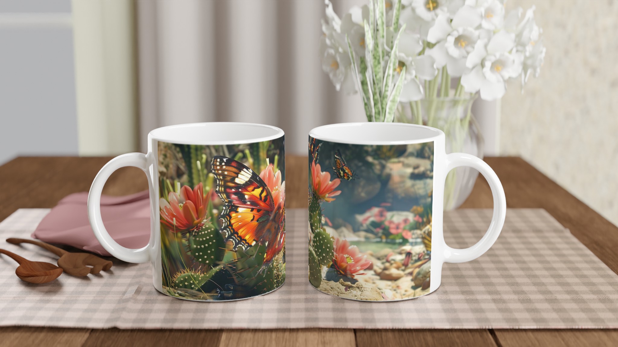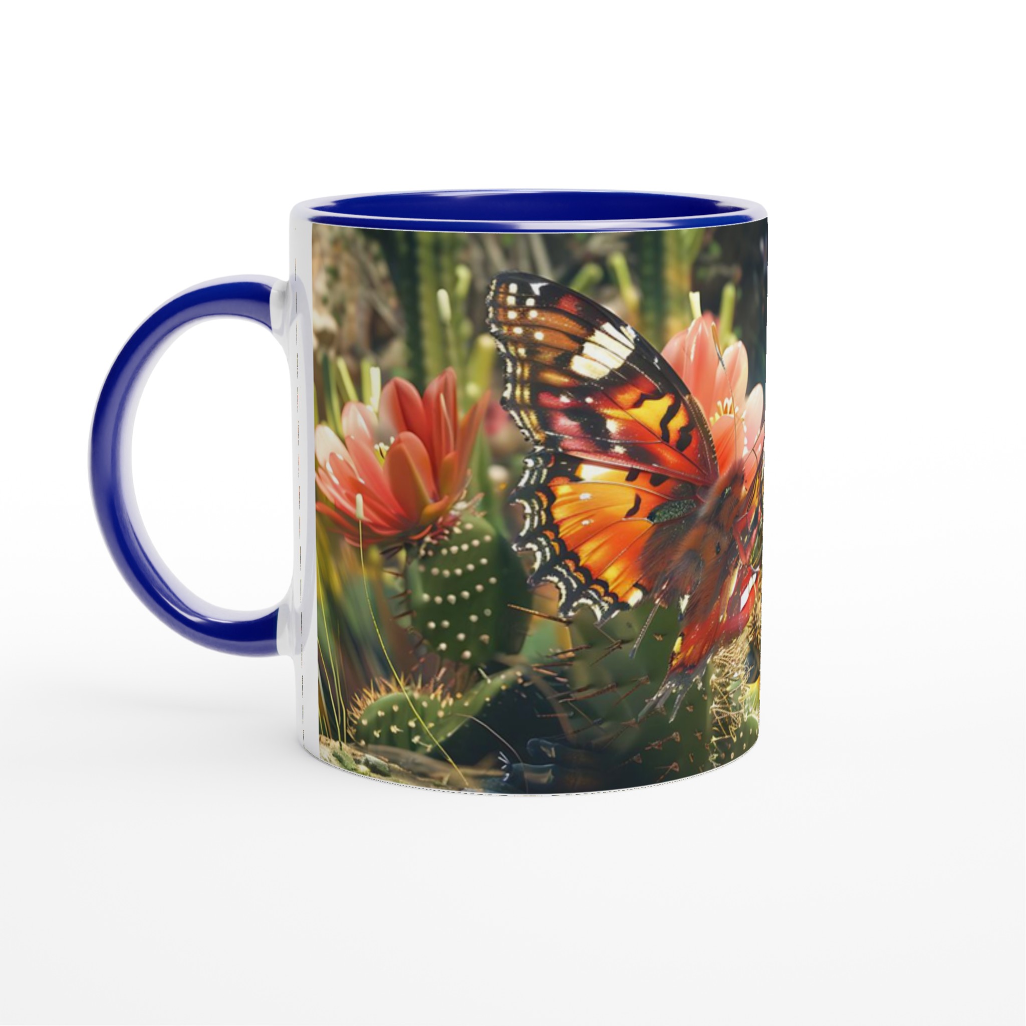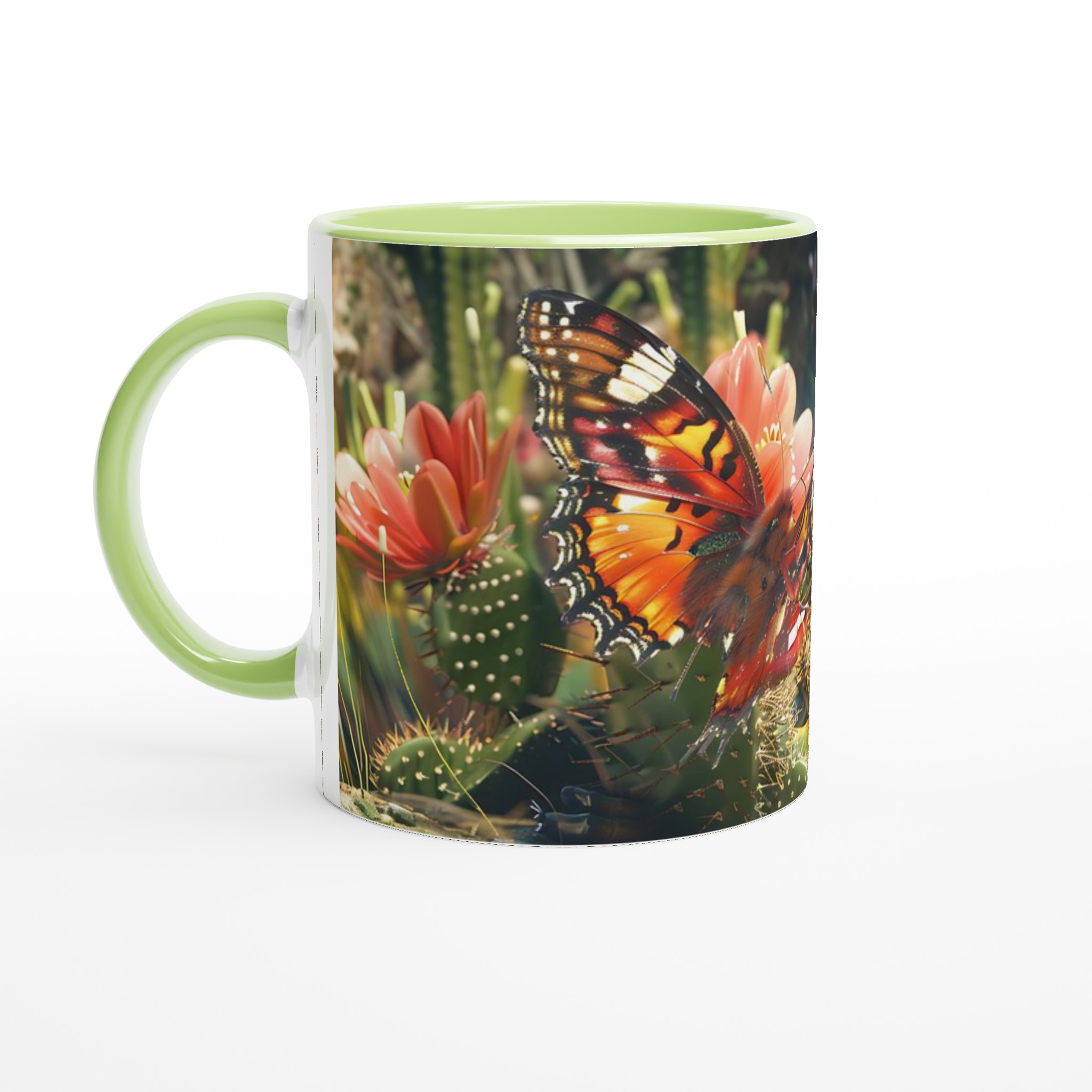Fånga naturens skönhet varje gång du tar en klunk med vår ”Fjärilsdröm” keramiska mugg. Låt den levande bilden av en fjäril som vilar på en kaktusblomma transportera dig till en fridfull trädgård, oavsett om du njuter av morgonkaffet, kvällens varma choklad eller en lugn kopp te. Denna mugg förvandlar varje dryck till en liten stund av avkoppling och förundran.