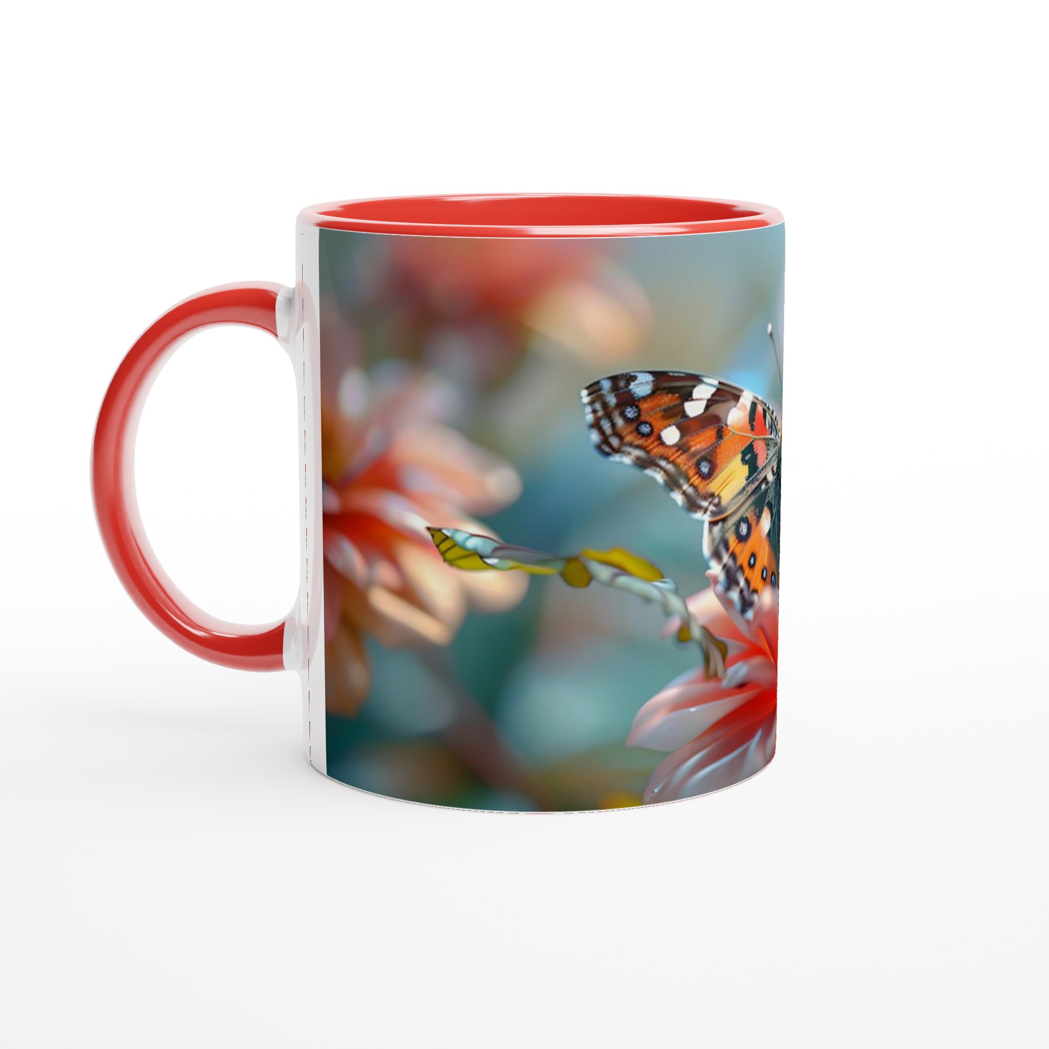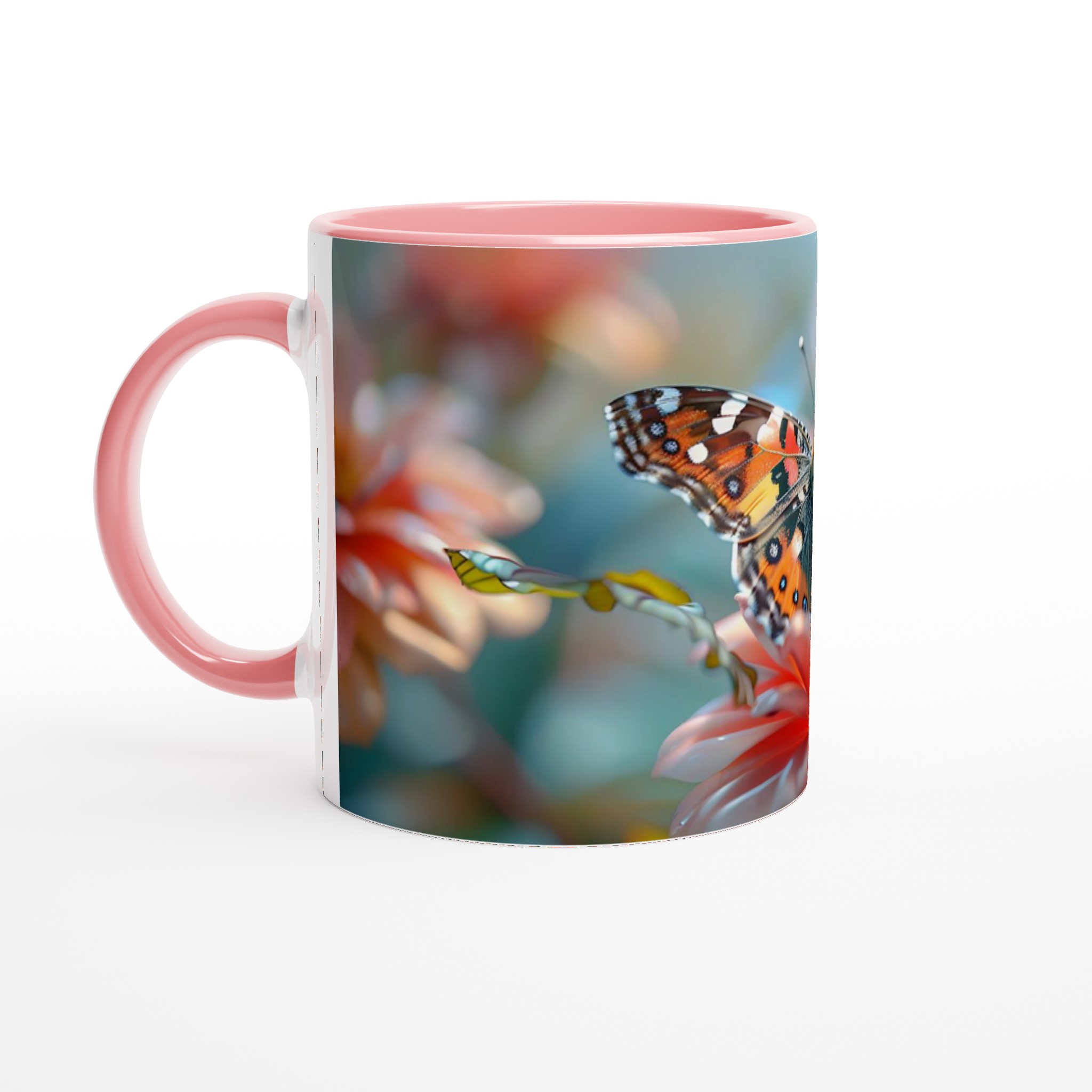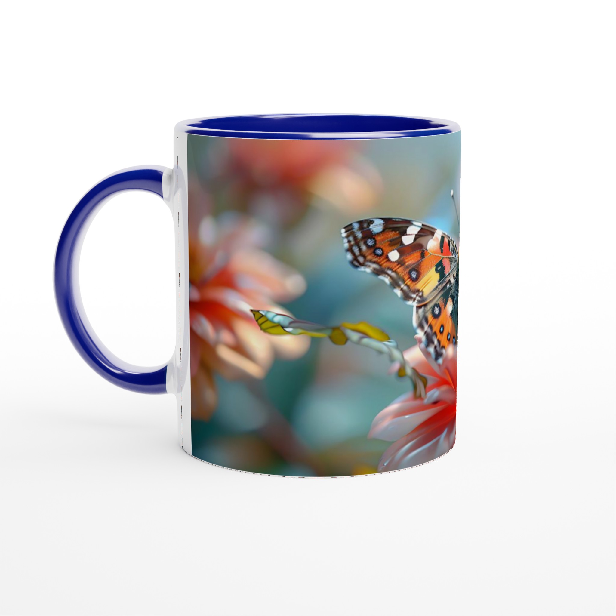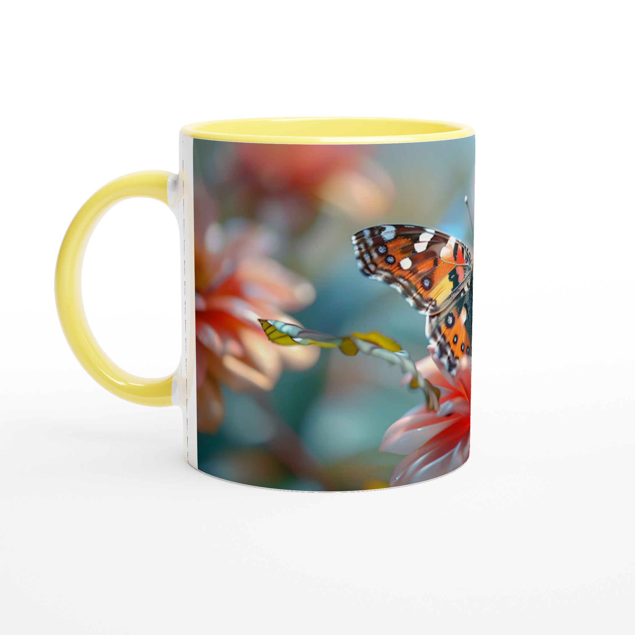 Vakna till skönheten med varje klunk ur denna Keramiska mugg. Inspirerad av fjärilens graciösa dans på blommorna, förvandlar denna mugg din fikastund till en lugn stund av naturglädje. Den här stilrena keramiska muggen blir snabbt en vardagsfavorit. Perfekt för morgonkaffet, kvällens varma choklad eller när du bara vill njuta av en kopp te. Den blanka vita ytan gör att trycken framhävs med klara och levande färger, som håller sig fina även efter många turer i mikron och diskmaskinen.