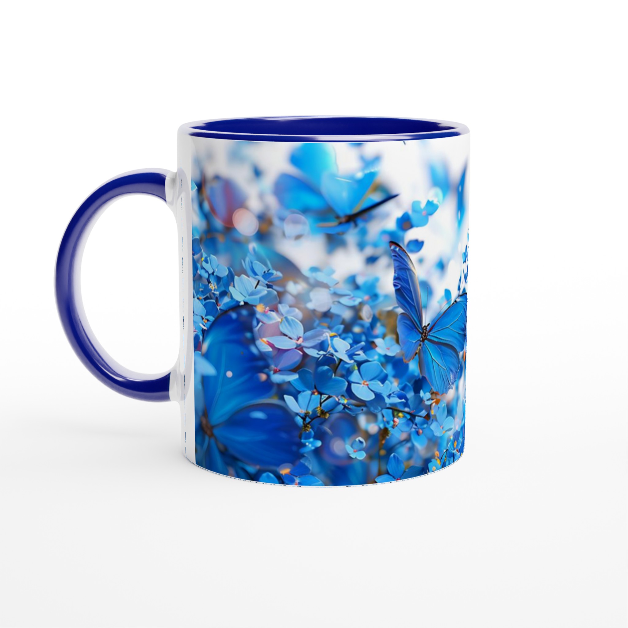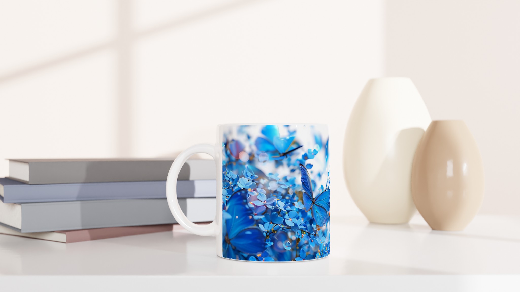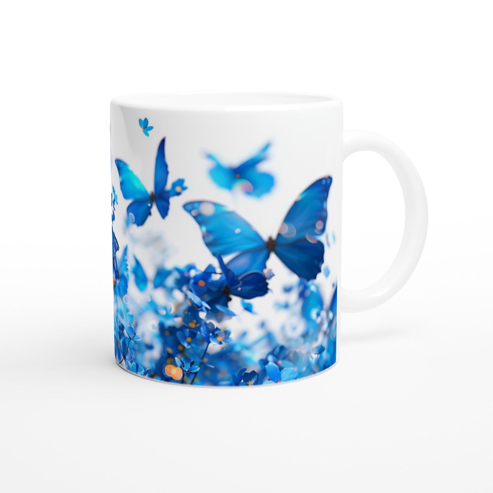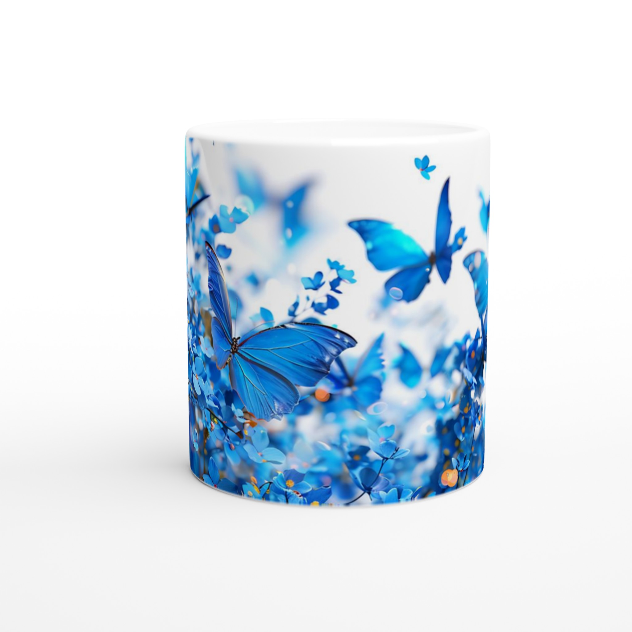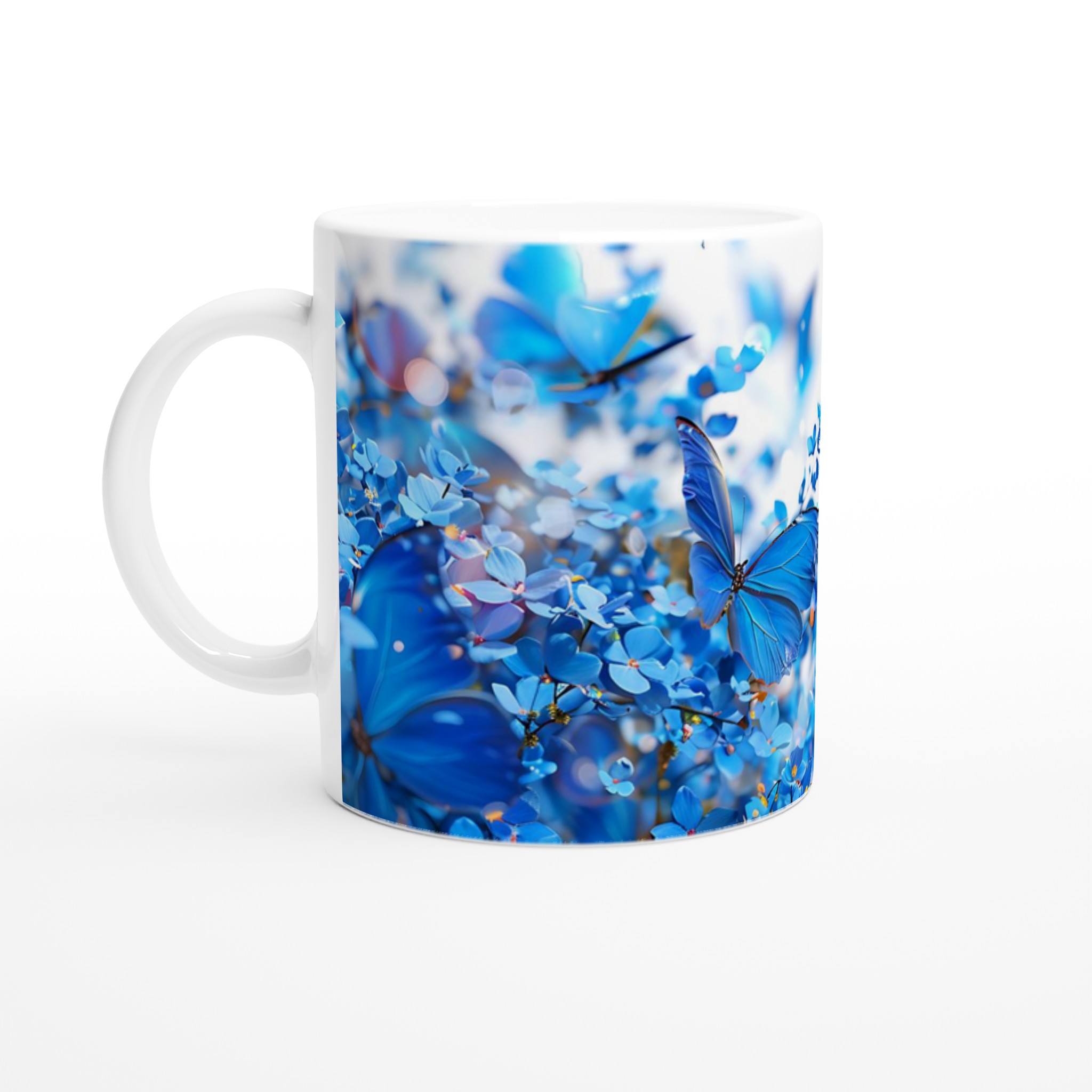 Fånga känslan av en svärm av livfulla blå fjärilar som dansar bland blommor med denna förtrollande keramiska mugg. Varje morgon blir lite ljusare, varje fikarast en flykt till en drömlik trädgård. Denna mugg blir snabbt en favorit, perfekt för morgonkaffet, kvällens varma choklad eller när du bara vill njuta av en kopp te.